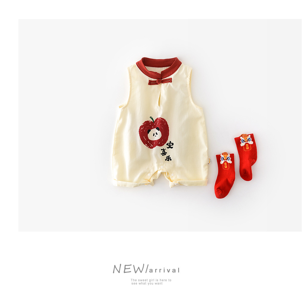 25 여름 새로운 중국 스타일 핑 기쁨 등반 착용 아기 유아 만화 한 버튼 수직 칼라 백 패션 의류 52201스토어 가기