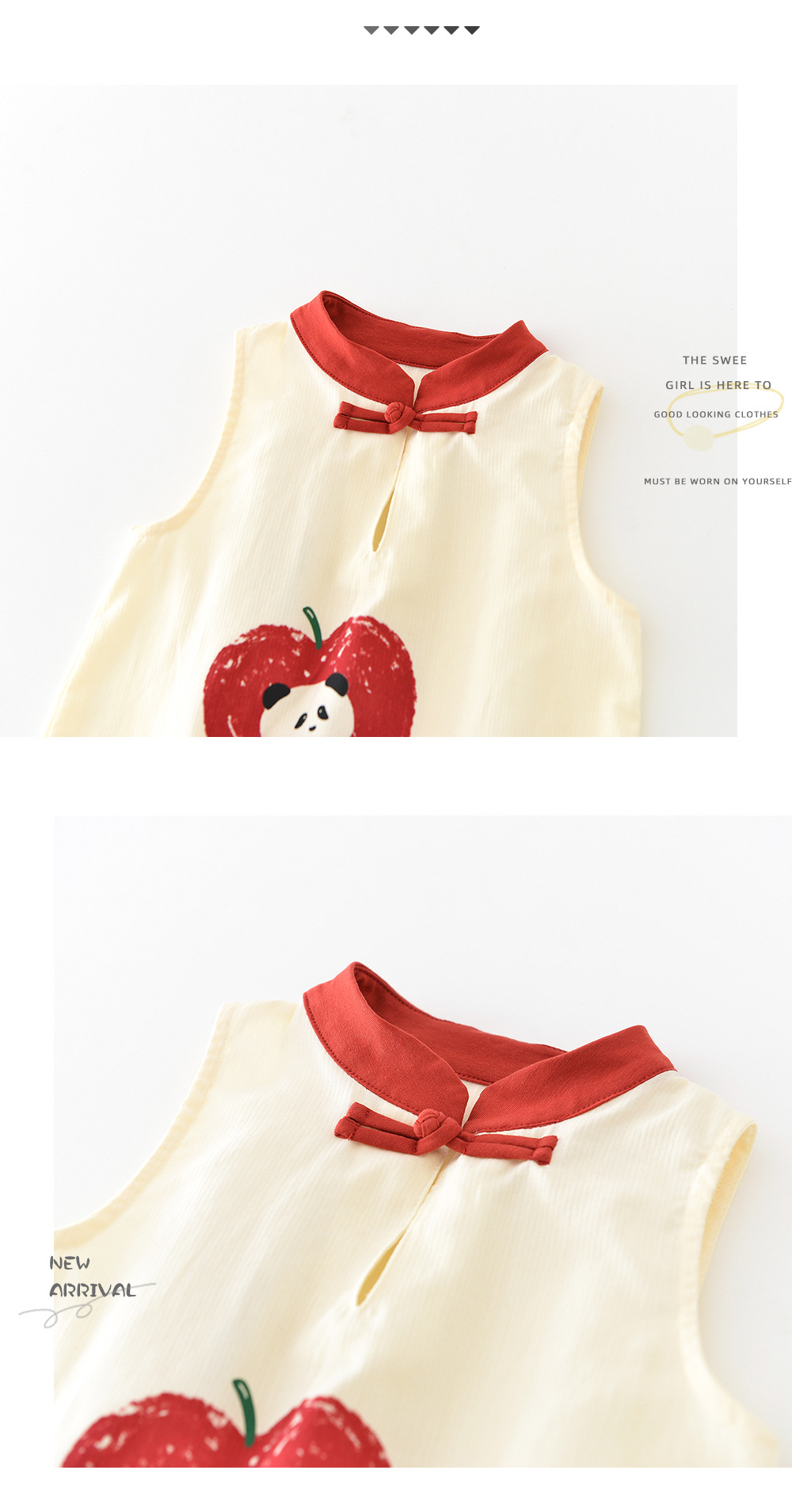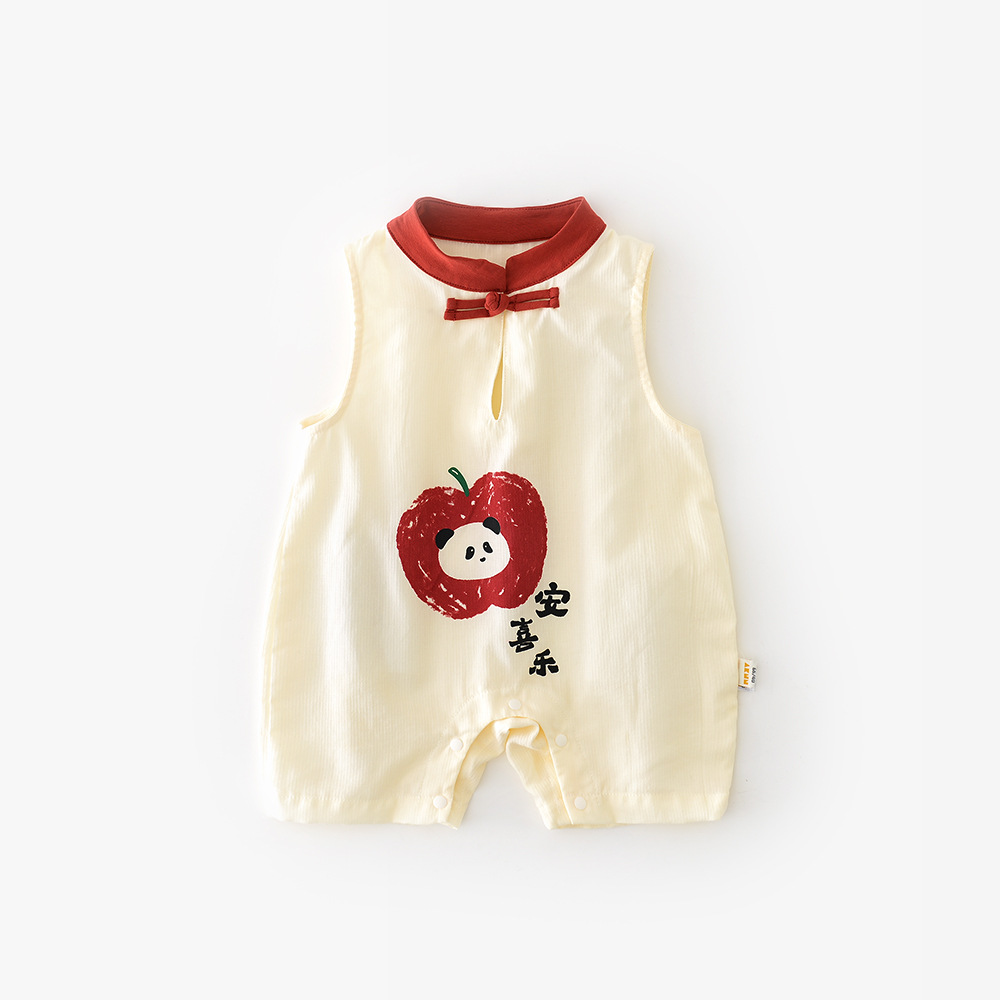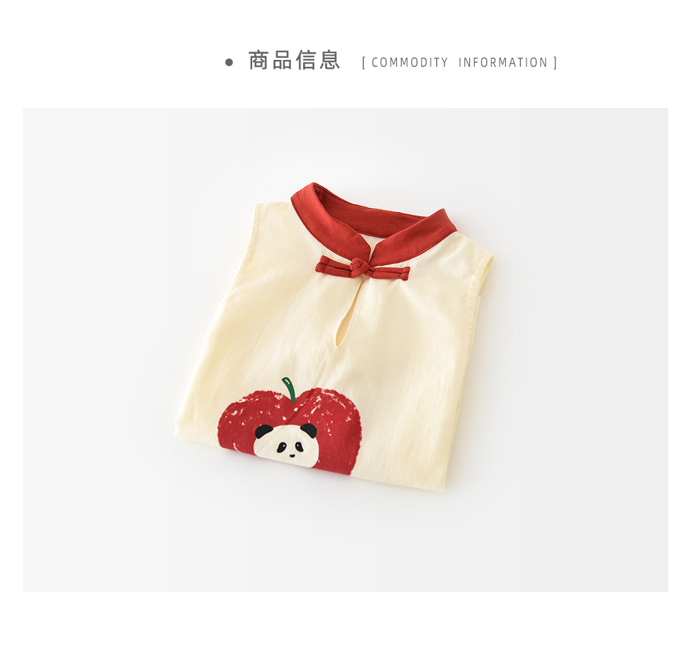 25 여름 새로운 중국 스타일 핑 기쁨 등반 착용 아기 유아 만화 한 버튼 수직 칼라 백 패션 의류 52201