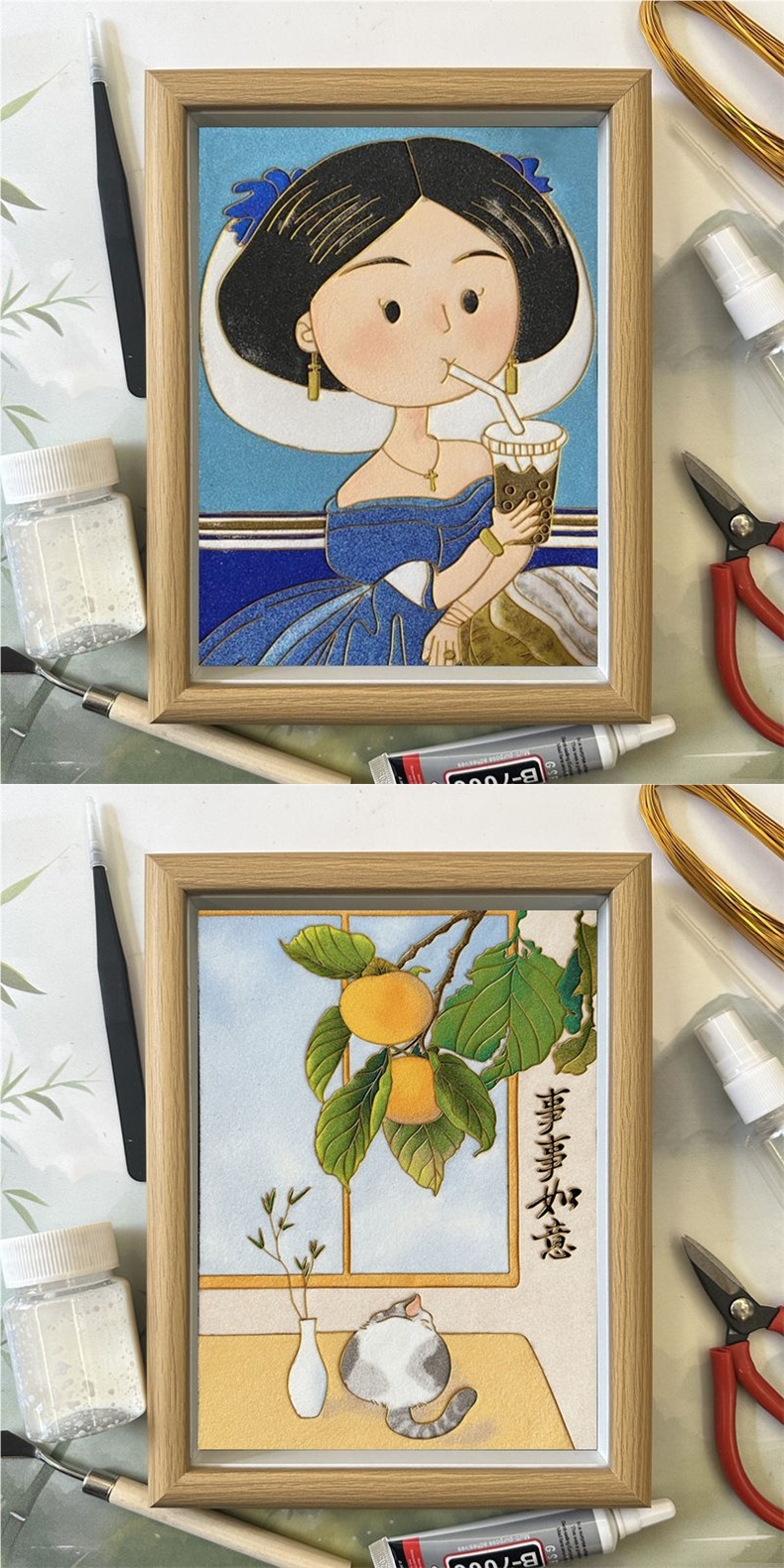 초보자를 위한 간단한 칠보 칠보 에나멜 그림 DIY 재료 패키지 무형 문화 유산 수제 선물 중공 사진 프레임 그림스토어 가기