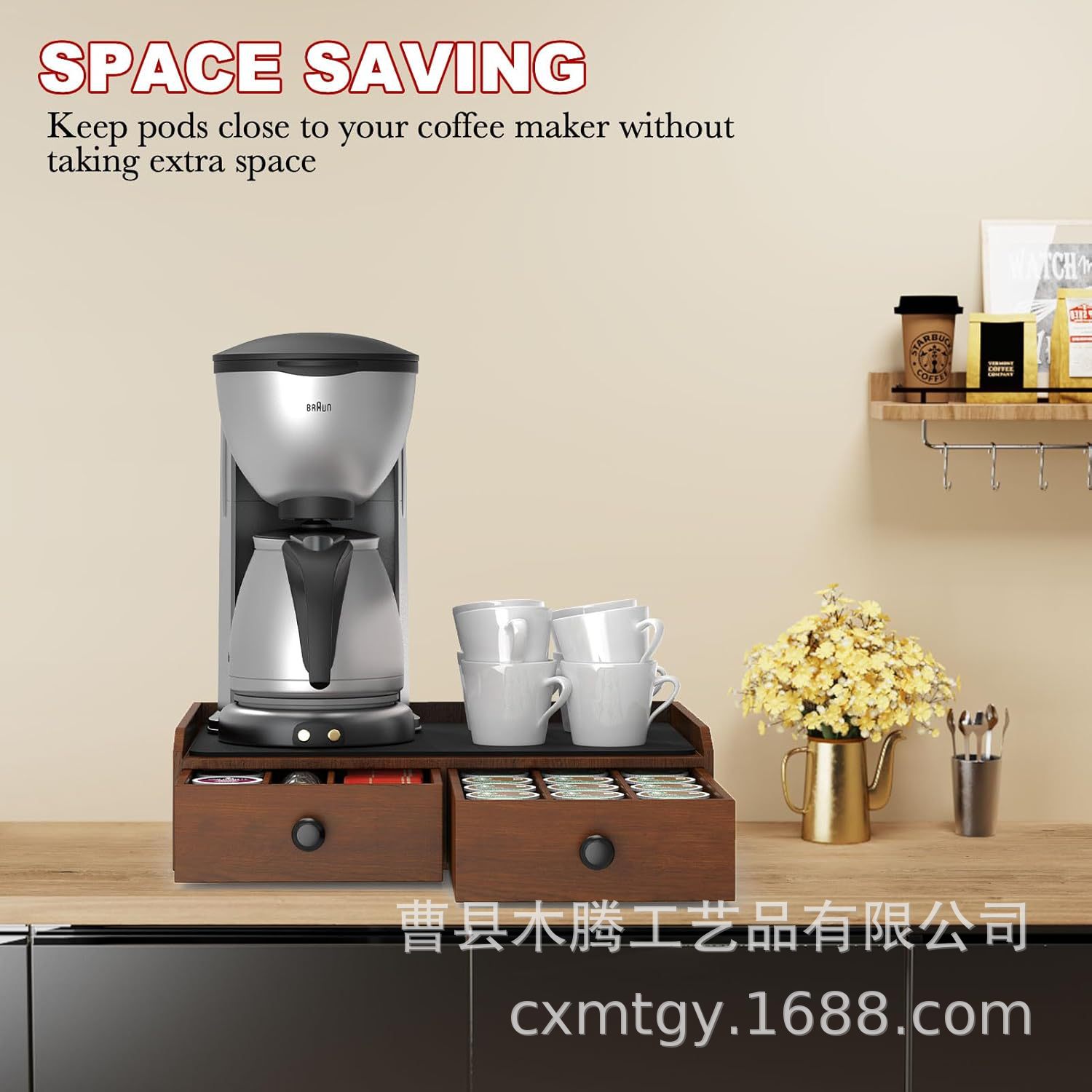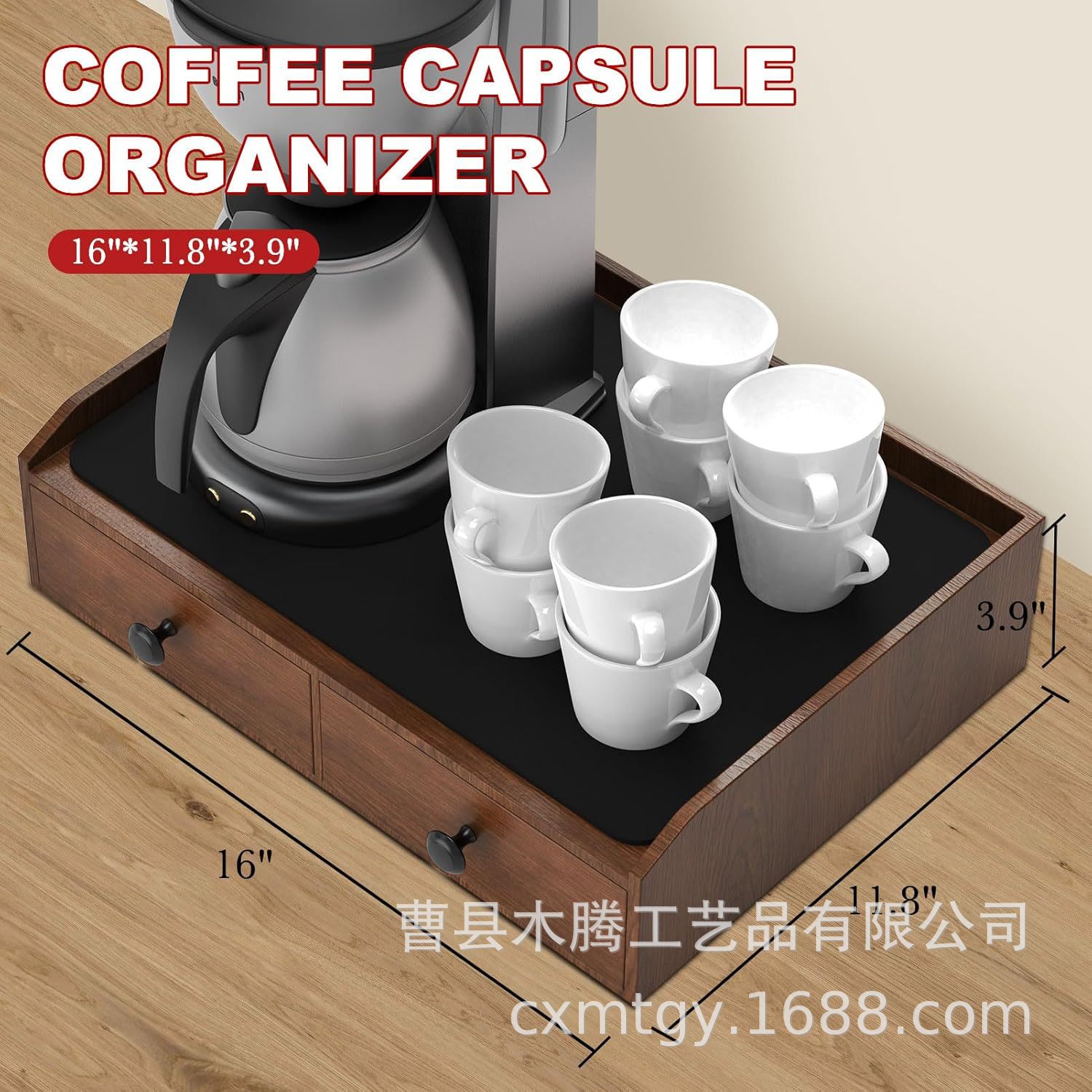 나무 커피 캡슐 보관 상자 티백 차 세트 보관 랙 서랍 커피 머신 홀더가있는 구획스토어 가기
