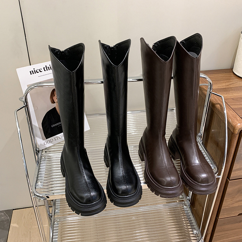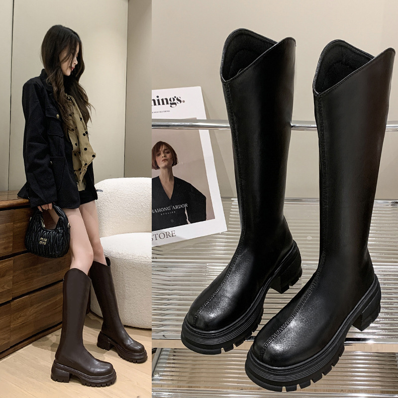 여성용 롱부츠 2025 신상 겨울 하이부츠, 두꺼운 밑창 나이트부츠, 키 작은 사람, 무릎 위 부츠, 두꺼운 다리 도매스토어 가기