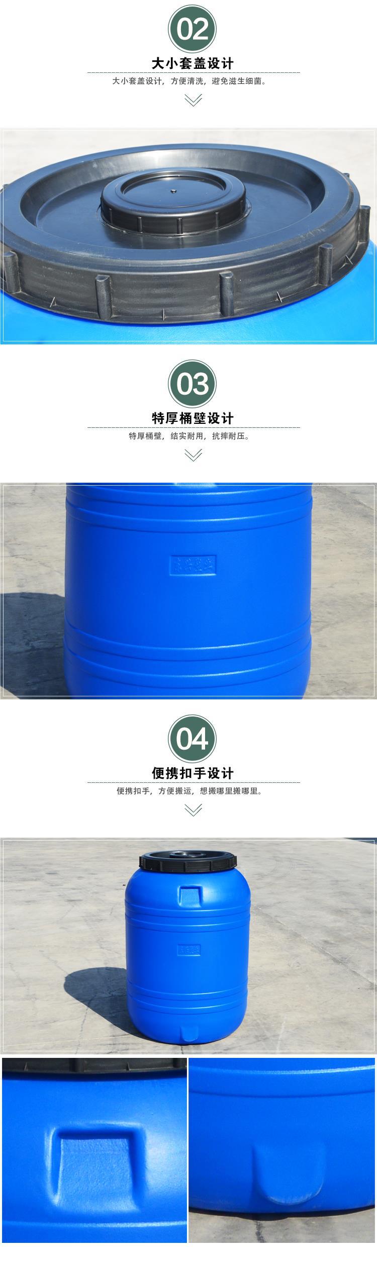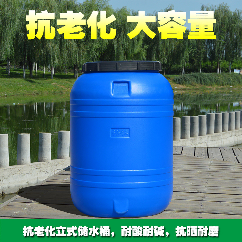 파란색 안티 에이징 대용량 플라스틱 물 저장 통 뚜껑 갇힌 물 저장 대형 물 탱크 수직 원형 효소 버킷 화학 양동이
