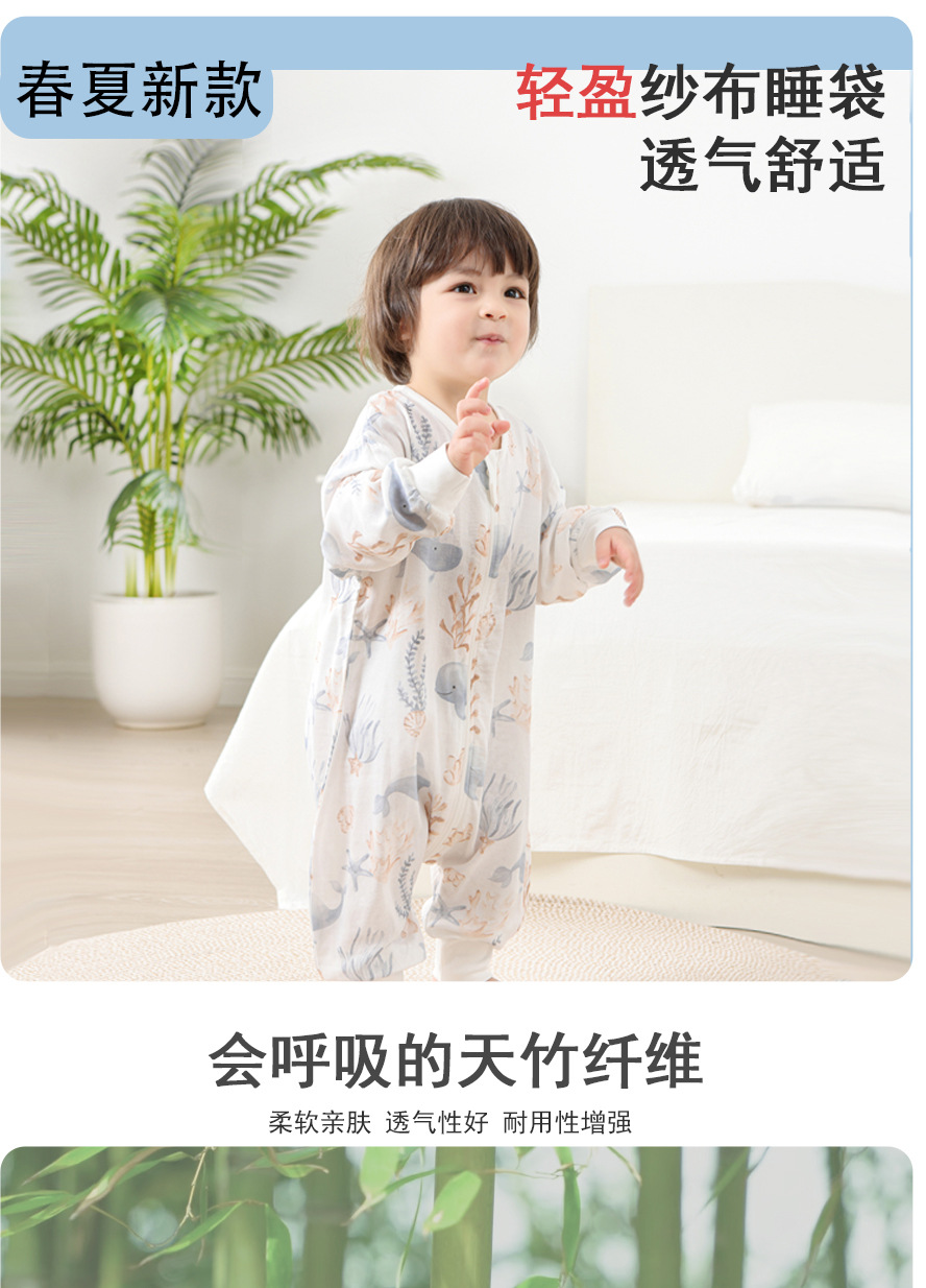어린이 거즈 스플릿 레그 슬리핑 백 아기 여름 클래스 A 바디 의류 유아용 킥 방지 슬리퍼 베이비 슬리핑 백