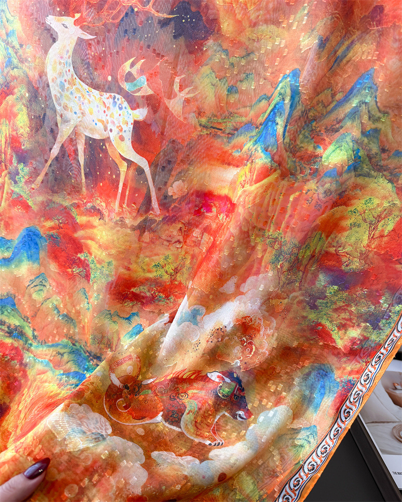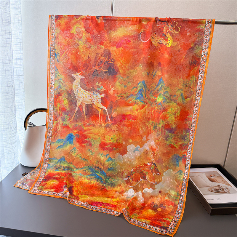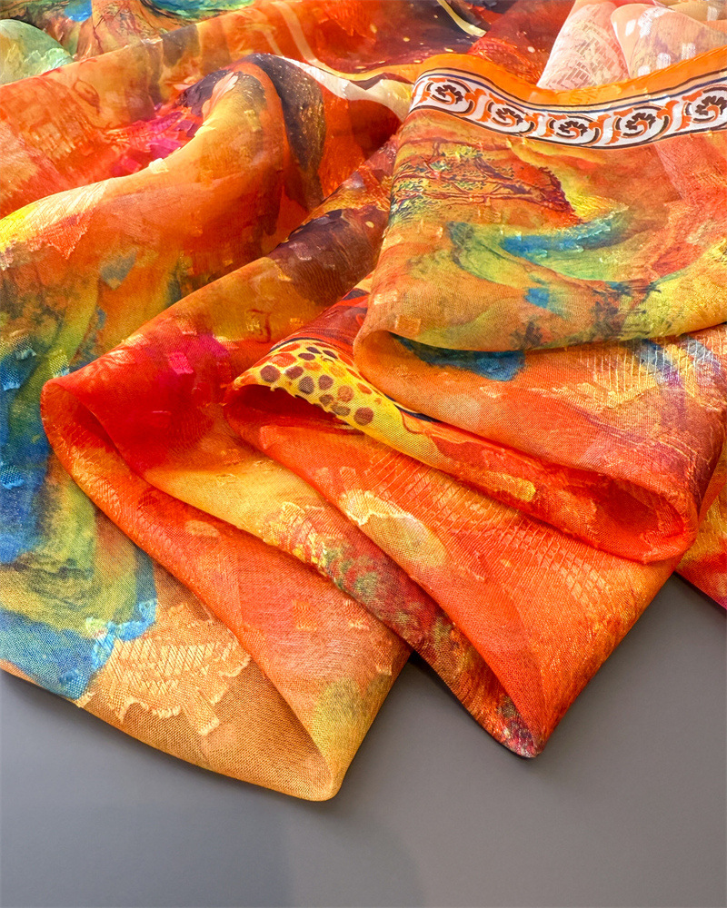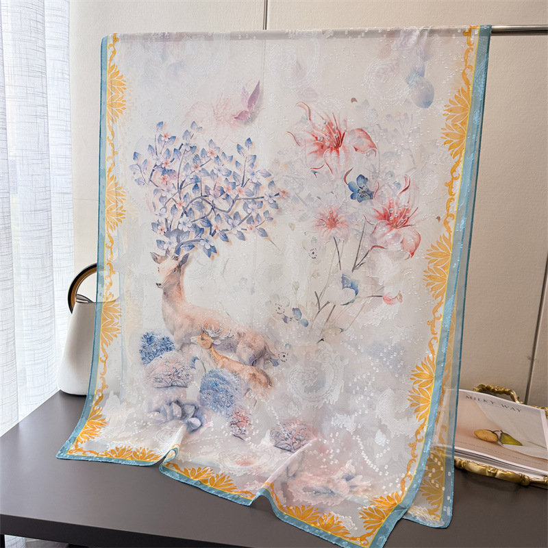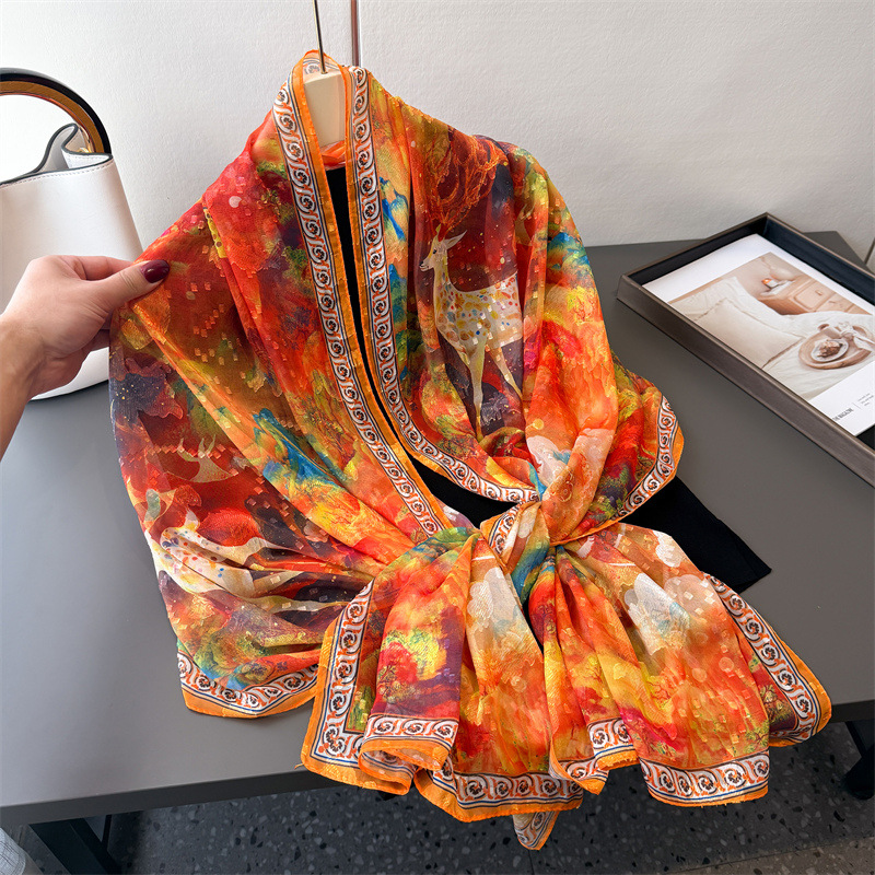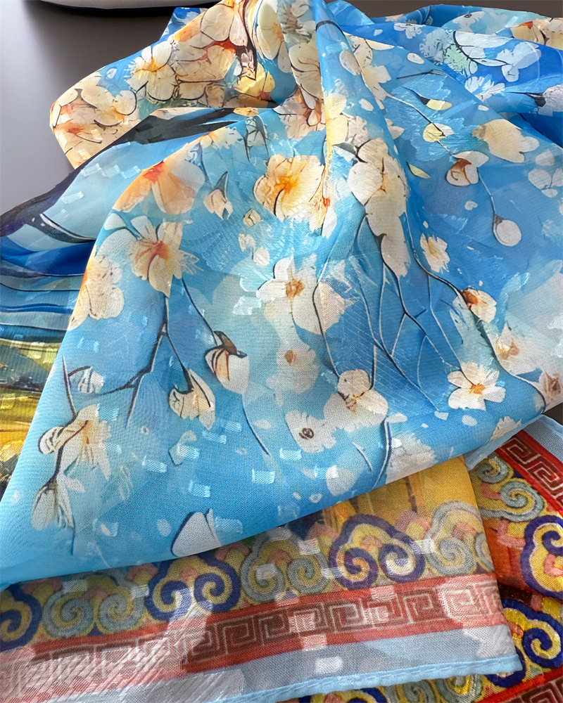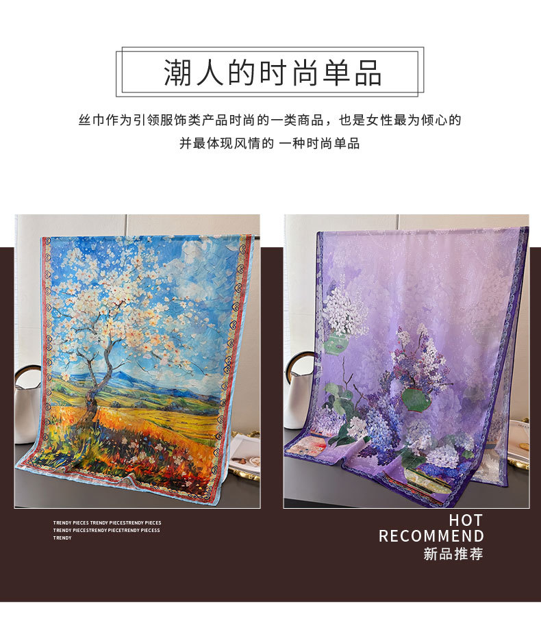 Qi Lu 페인트 인쇄 컷 꽃 봄과 여름 실크 스카프 대형 롱 스카프 고급 관광 목도리 선스크린 여성용 스카프스토어 가기