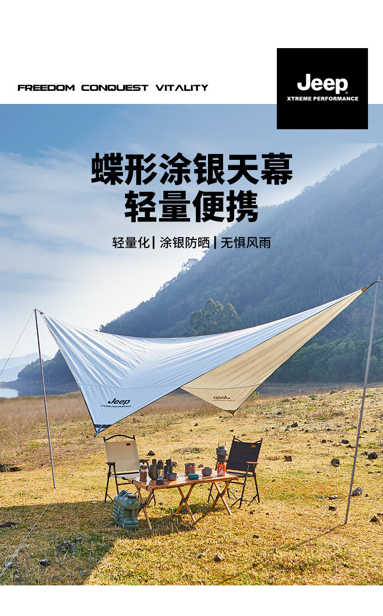 지프 지프 여름 야외 캠핑 방비 실버 코팅 캐노피 텐트 태양 보호 차양 캠핑 휴대용 차양