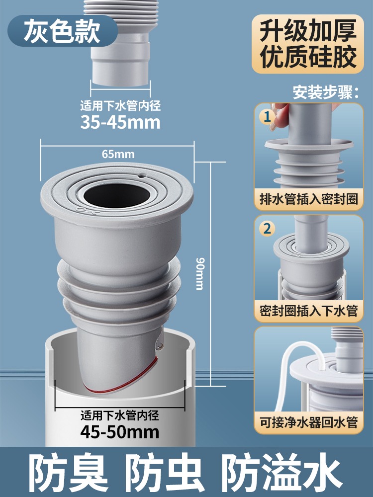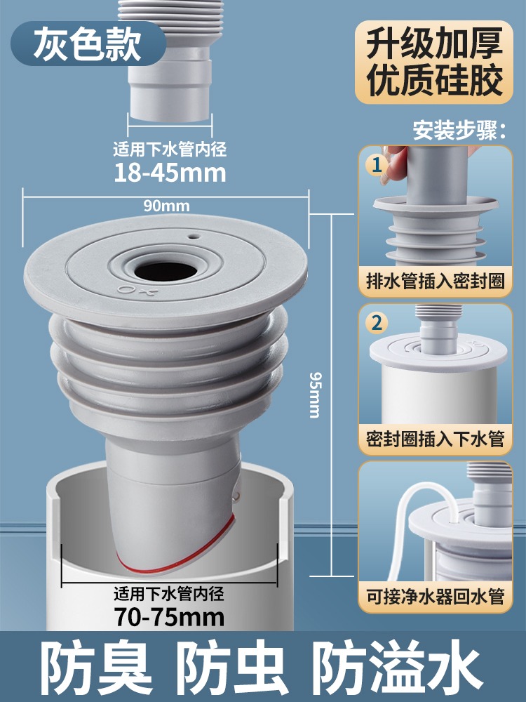 독일 세탁기 하수도 씰 링 배수 파이프 탈취 플러그 실리콘 밀봉 커버 냄새 방지 주방 막힘스토어 가기