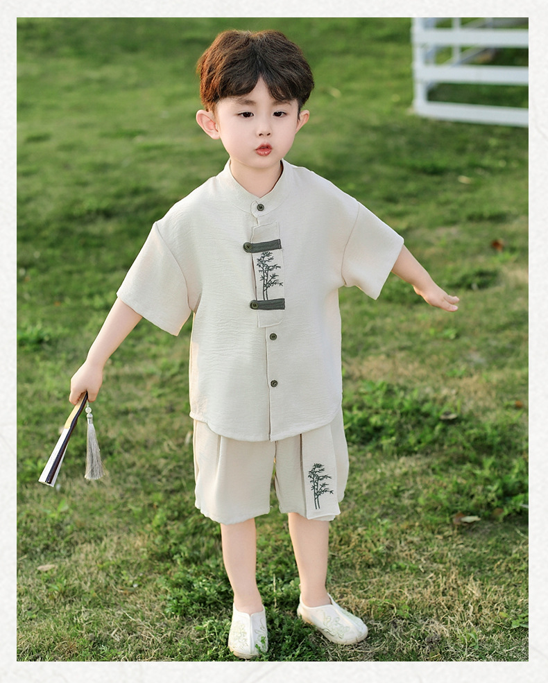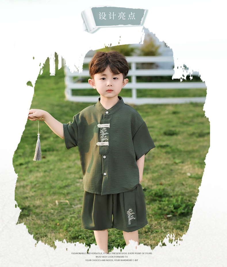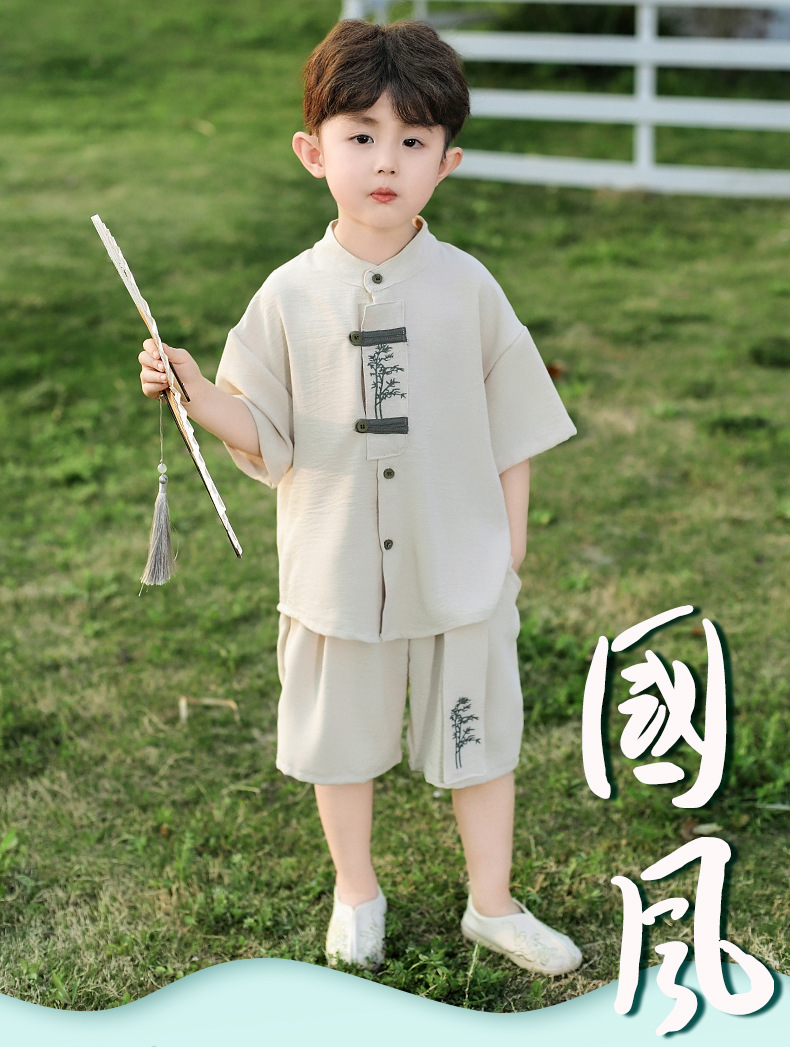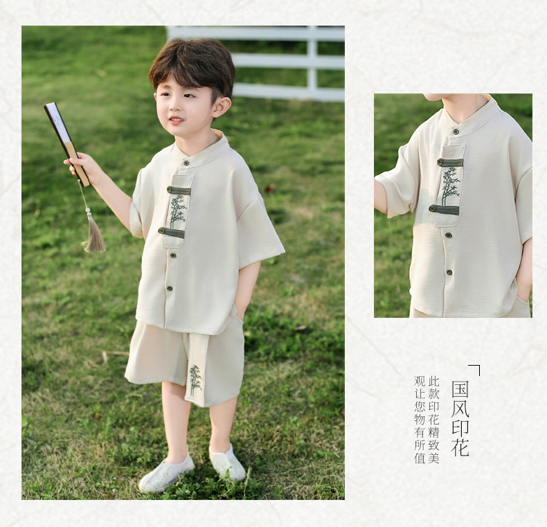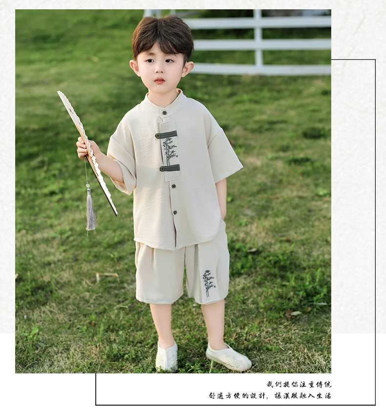 소년 여름 한푸 탕 세트 세트 슈퍼 요정 하이 엔드 아기 반팔 고대 한푸 중국 스타일 국가 스타일 잘 생긴 옷