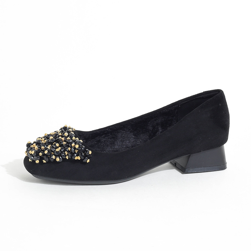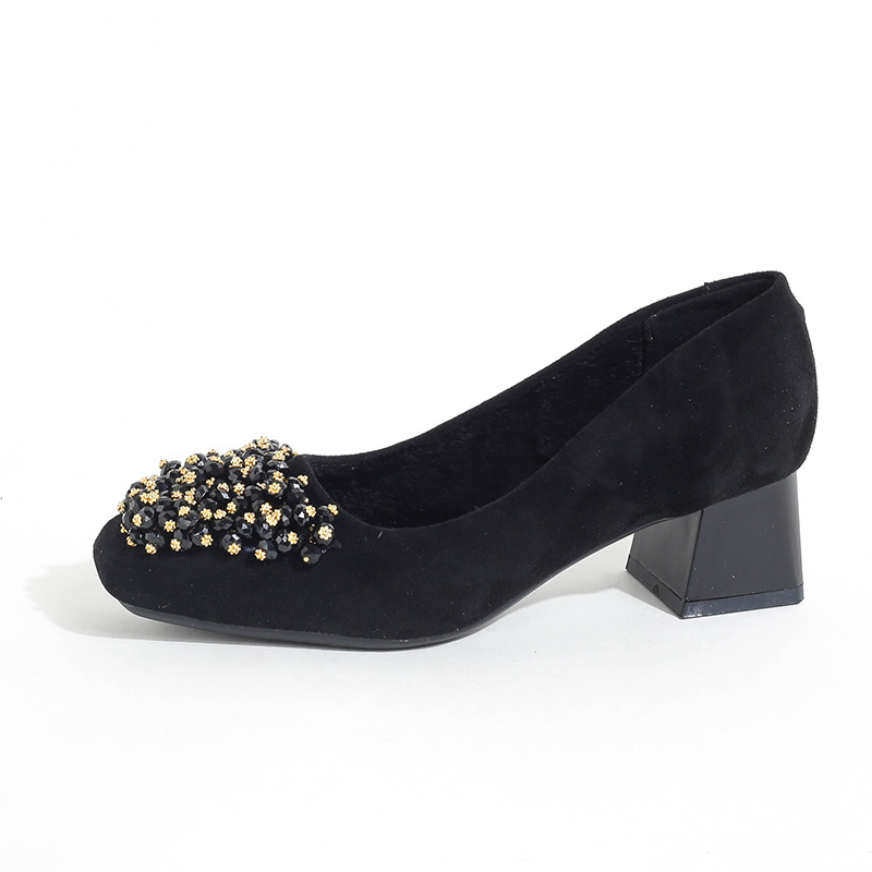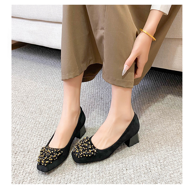 스퀘어 헤드 블랙 작업 신발 여성 신발 부드러운 바닥 오래 서 피곤하지 않은 전문 작업 편안한 하이힐 두꺼운 뒤꿈치 신발 54/60