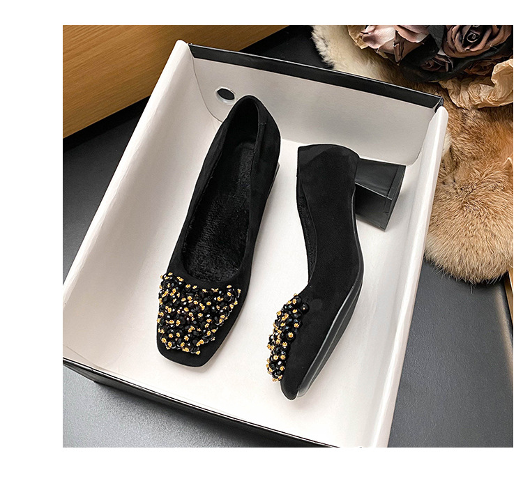 스퀘어 헤드 블랙 작업 신발 여성 신발 부드러운 바닥 오래 서 피곤하지 않은 전문 작업 편안한 하이힐 두꺼운 뒤꿈치 신발 54/60스토어 가기