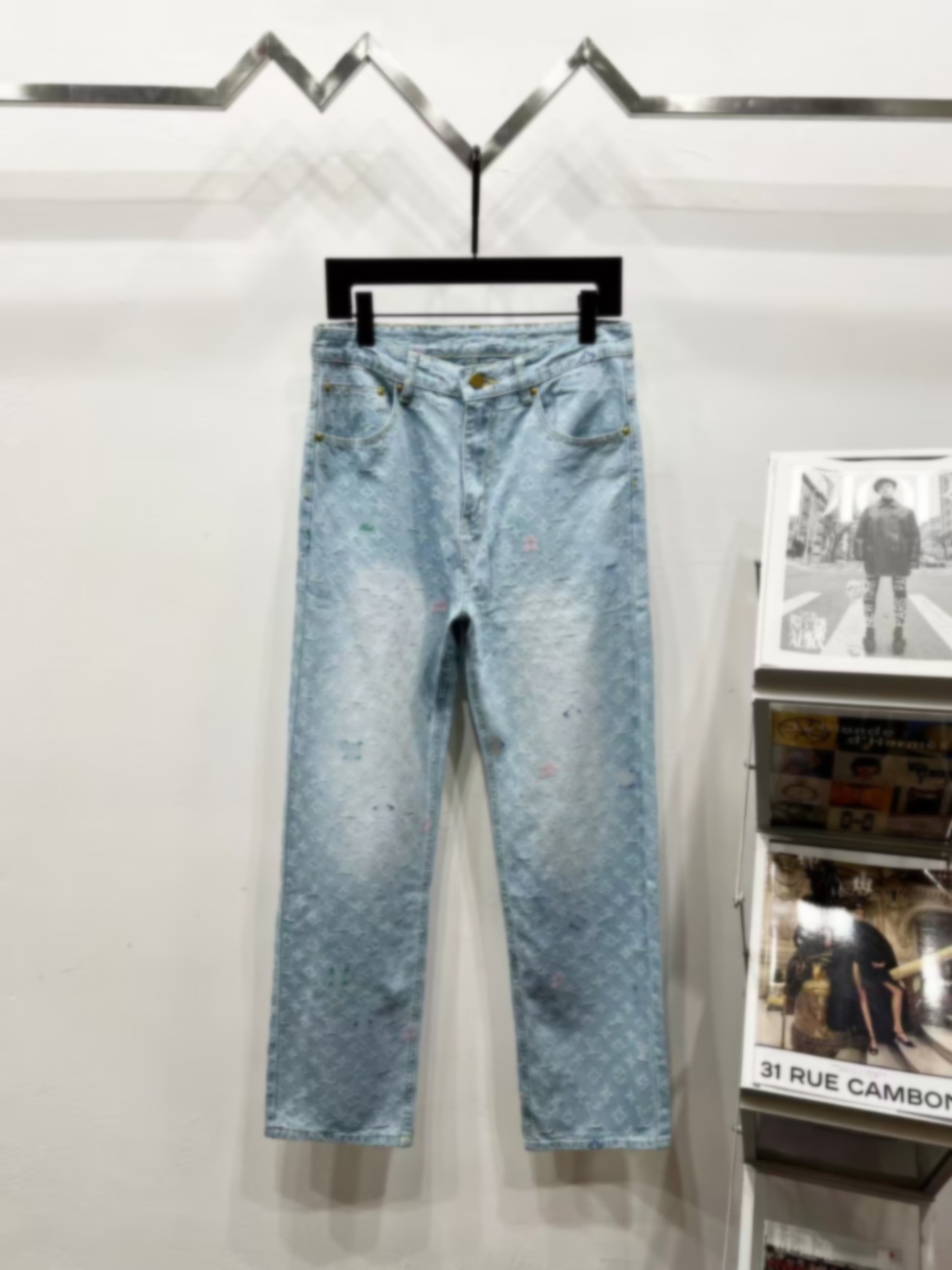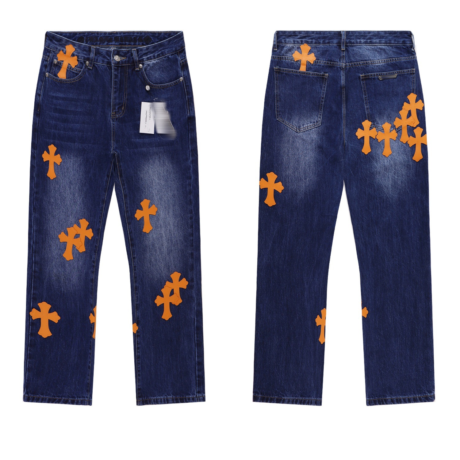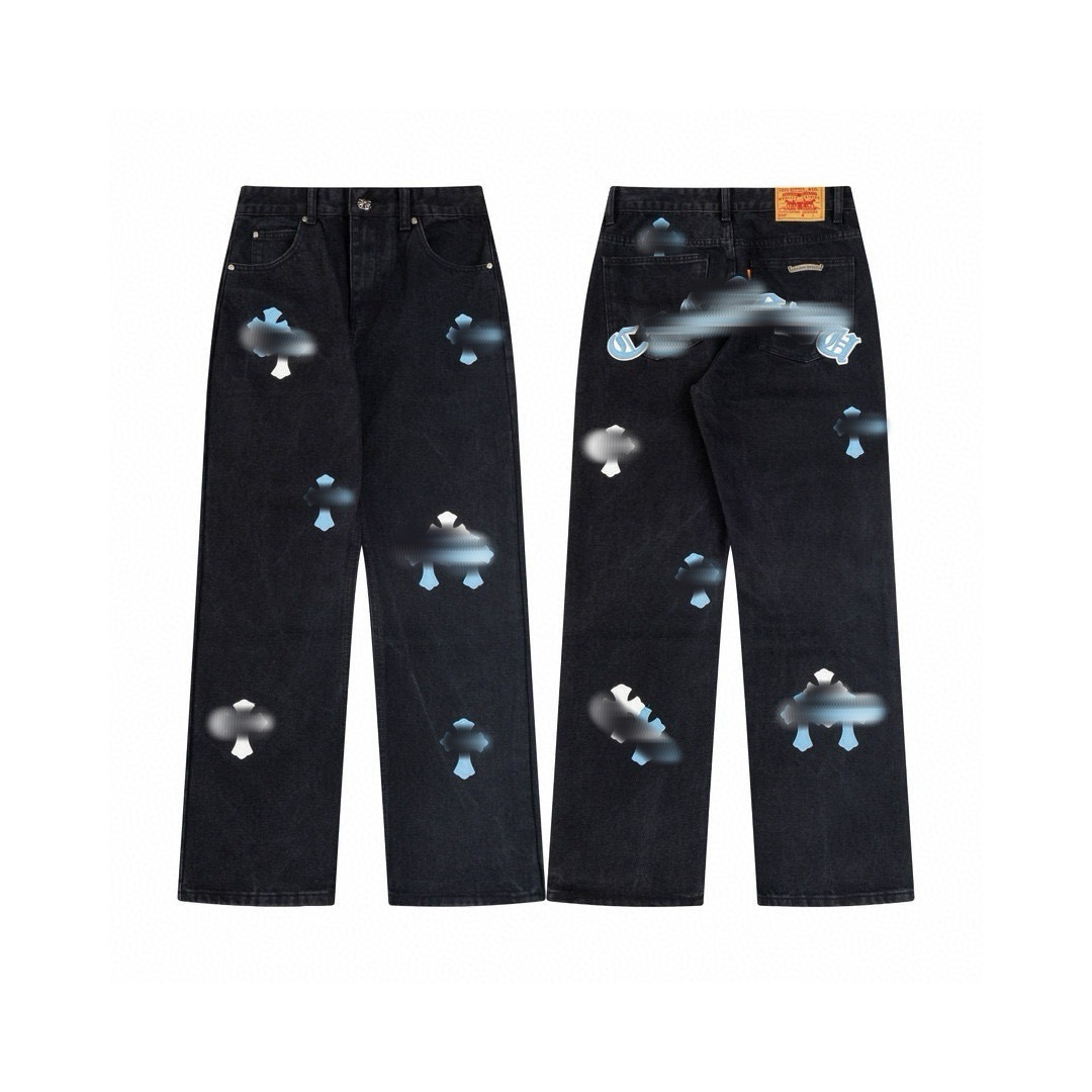 GD 대외 무역 도매 트렌디 브랜드 레트로 올드 스플래시 잉크 청바지 남성용 하이 스트리트 스트레이트 와이드 레그 바지스토어 가기