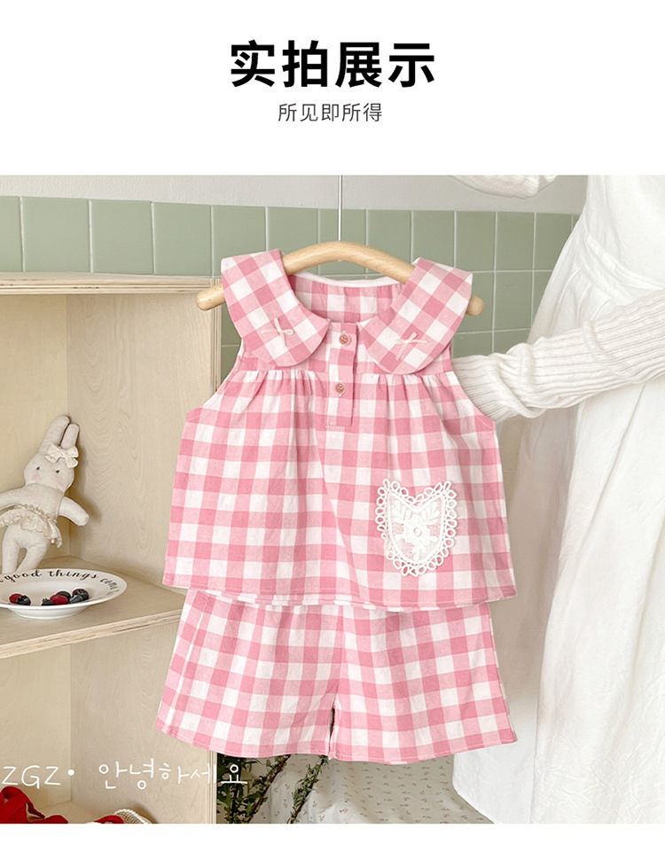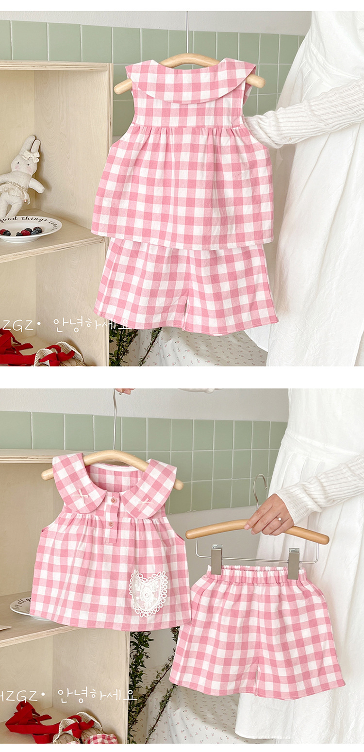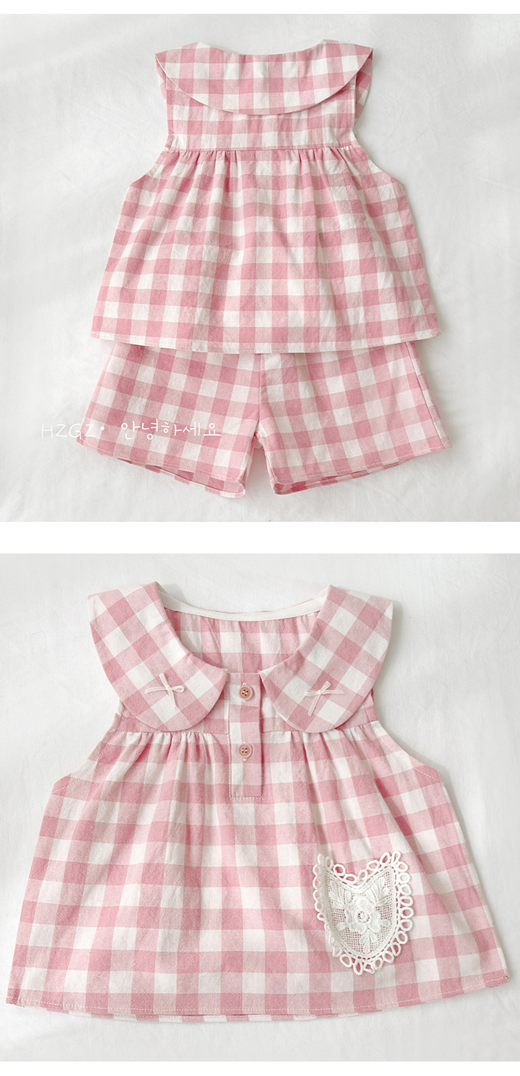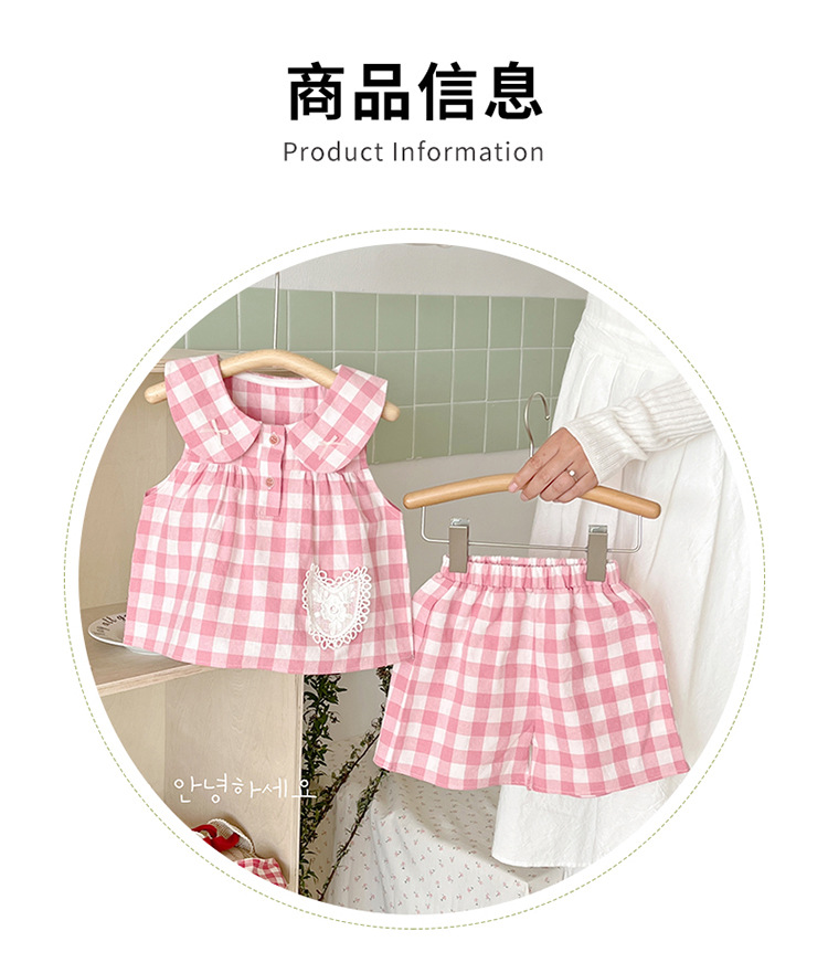 여자 여름 세트 새로운 민소매 인형 칼라 탑 스타일 캐주얼 바지 아기 면 여름 투피스 세트스토어 가기