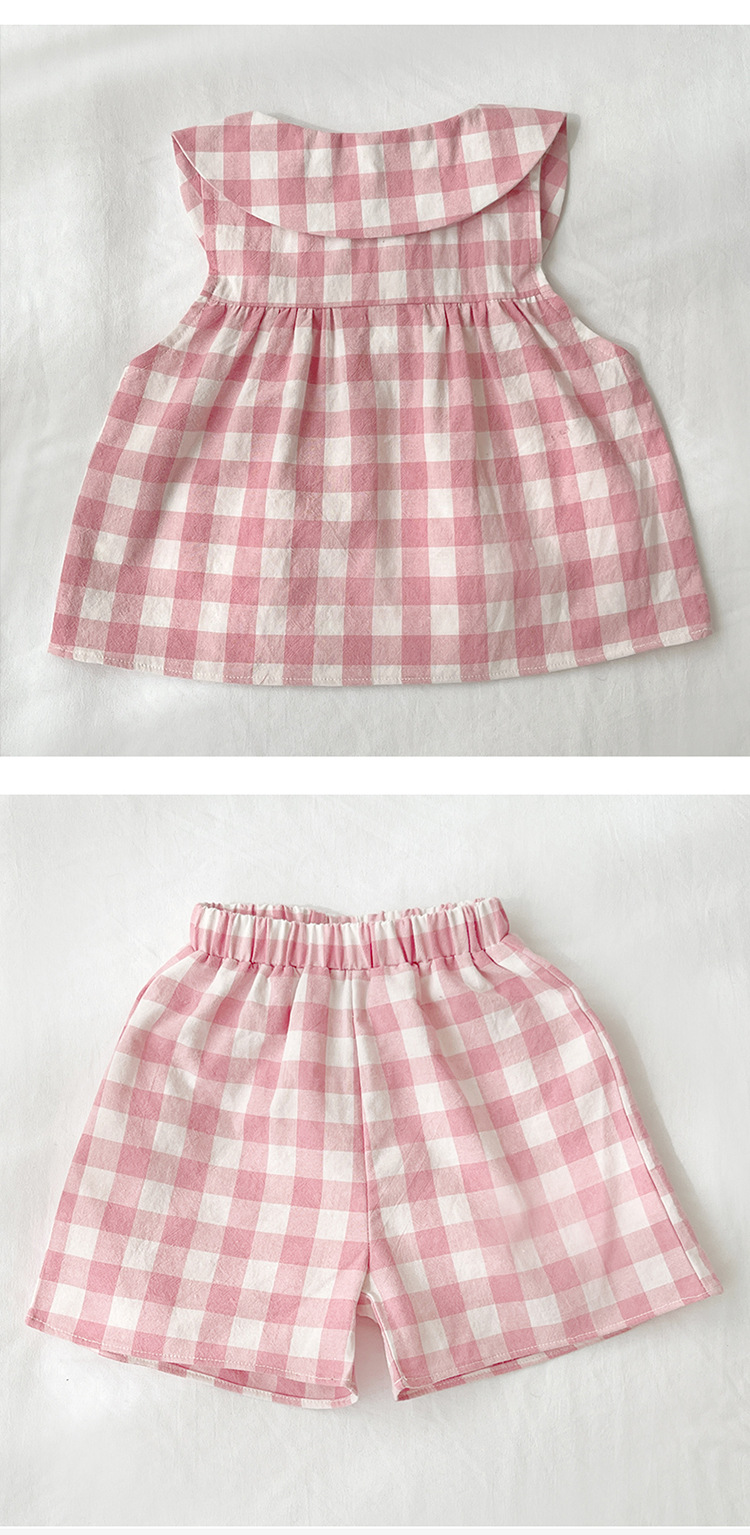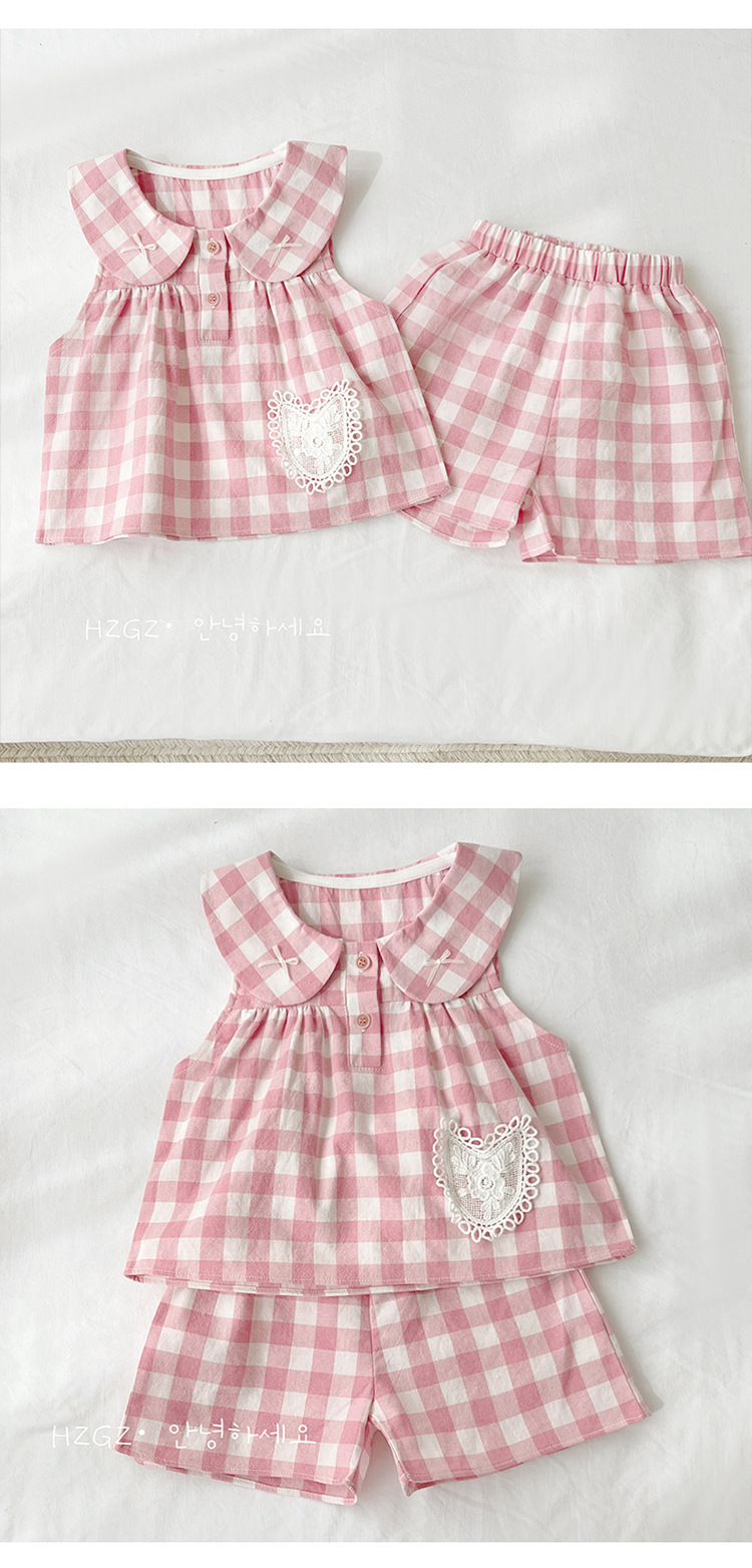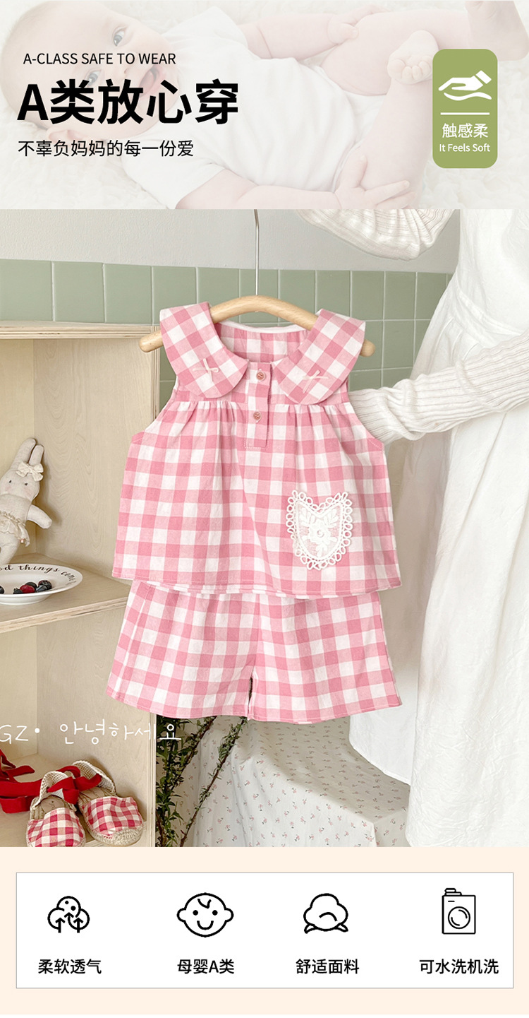 여자 여름 세트 새로운 민소매 인형 칼라 탑 스타일 캐주얼 바지 아기 면 여름 투피스 세트스토어 가기