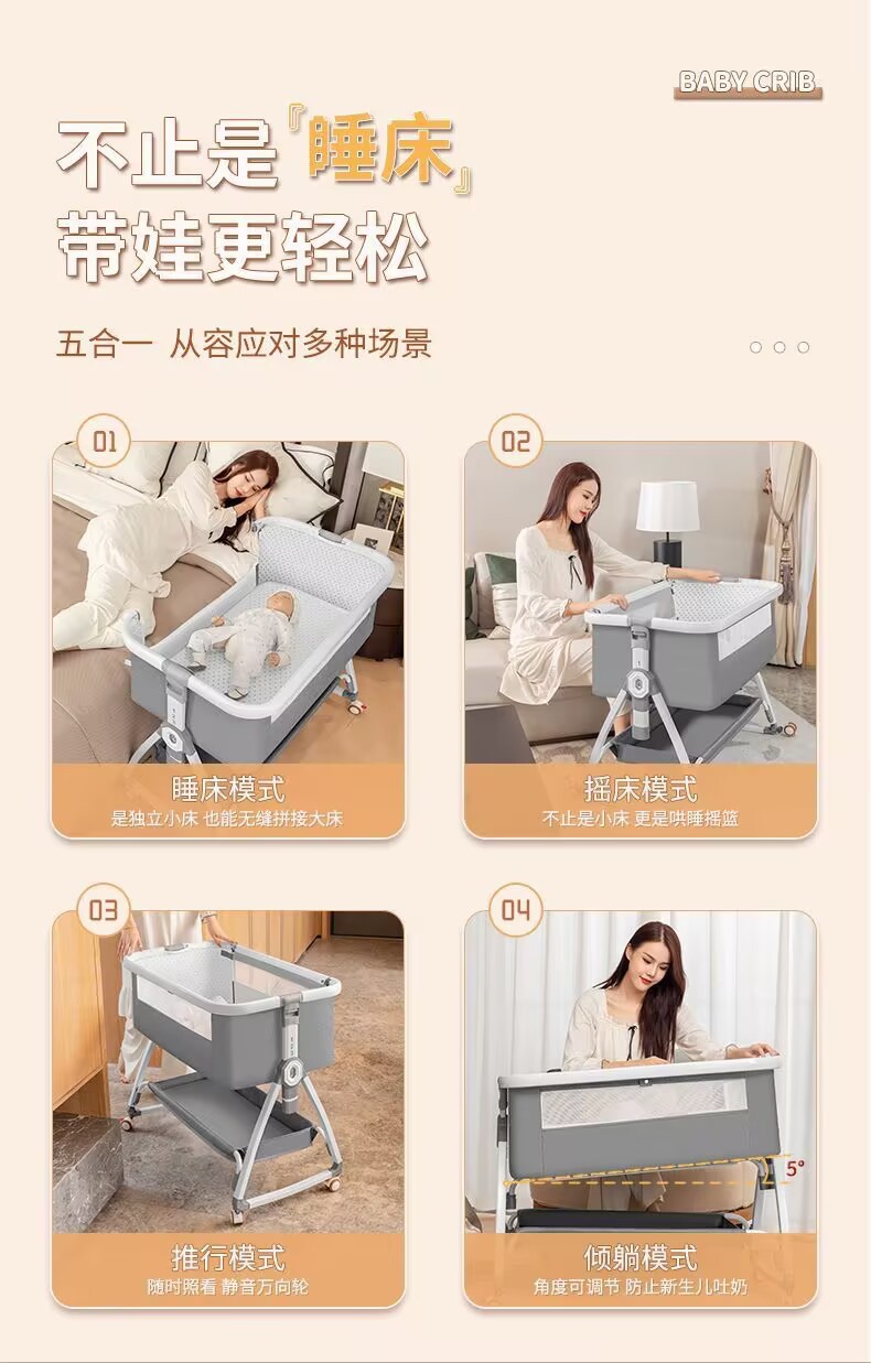 휴대용 이동식 침대 접이식 높이 조정 큰 침대 아기 요람 침대 Bb 침대 반대로 우유 오버 플로우