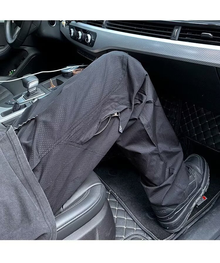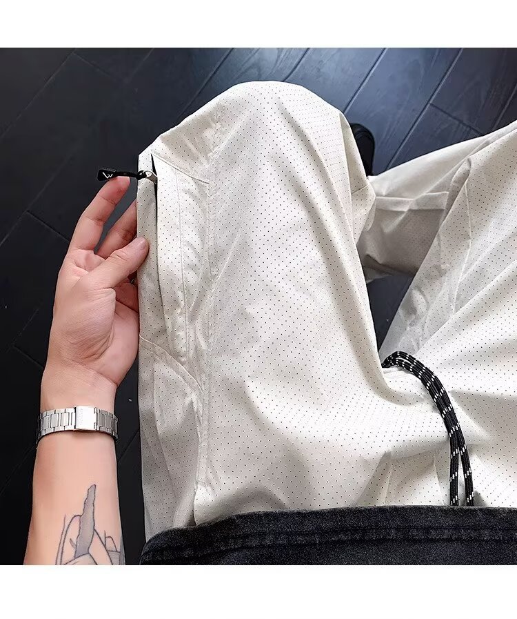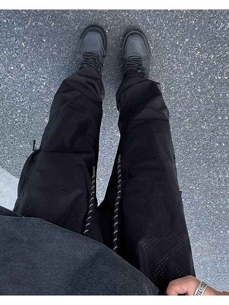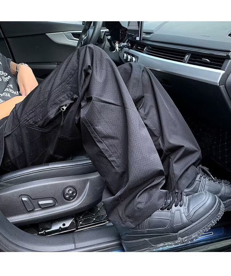 여름용 남성용 고급 속건성 충전 바지, 얇은 메쉬 통기성 구멍, 멋스럽고 다재다능한 스트레이트 스포츠 캐주얼 바지스토어 가기