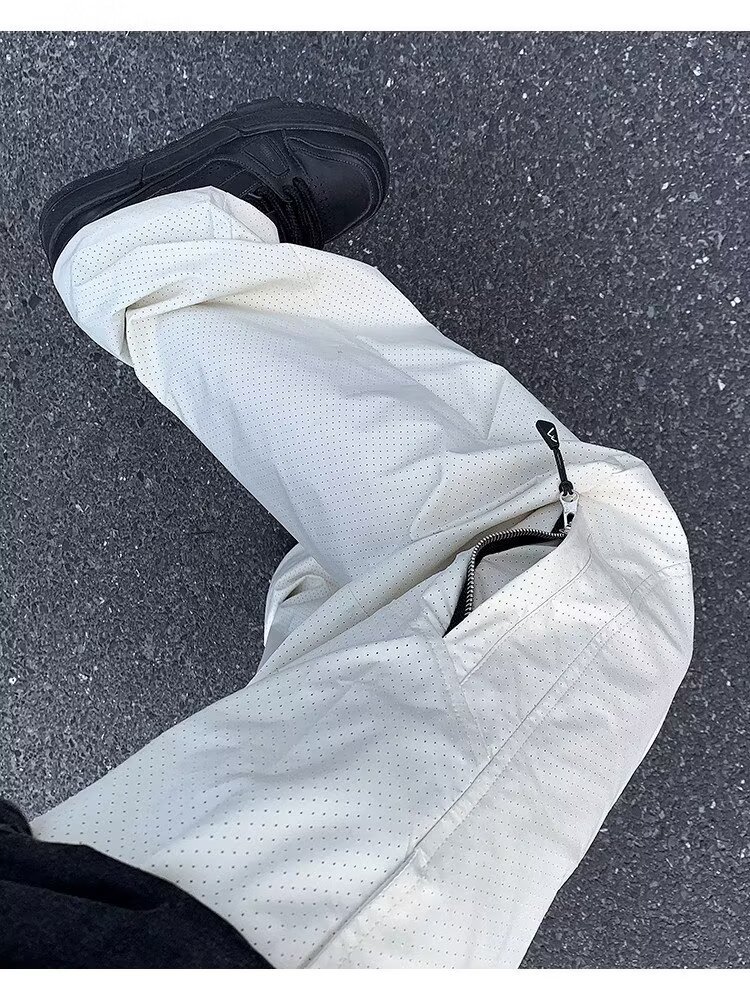 여름용 남성용 고급 속건성 충전 바지, 얇은 메쉬 통기성 구멍, 멋스럽고 다재다능한 스트레이트 스포츠 캐주얼 바지