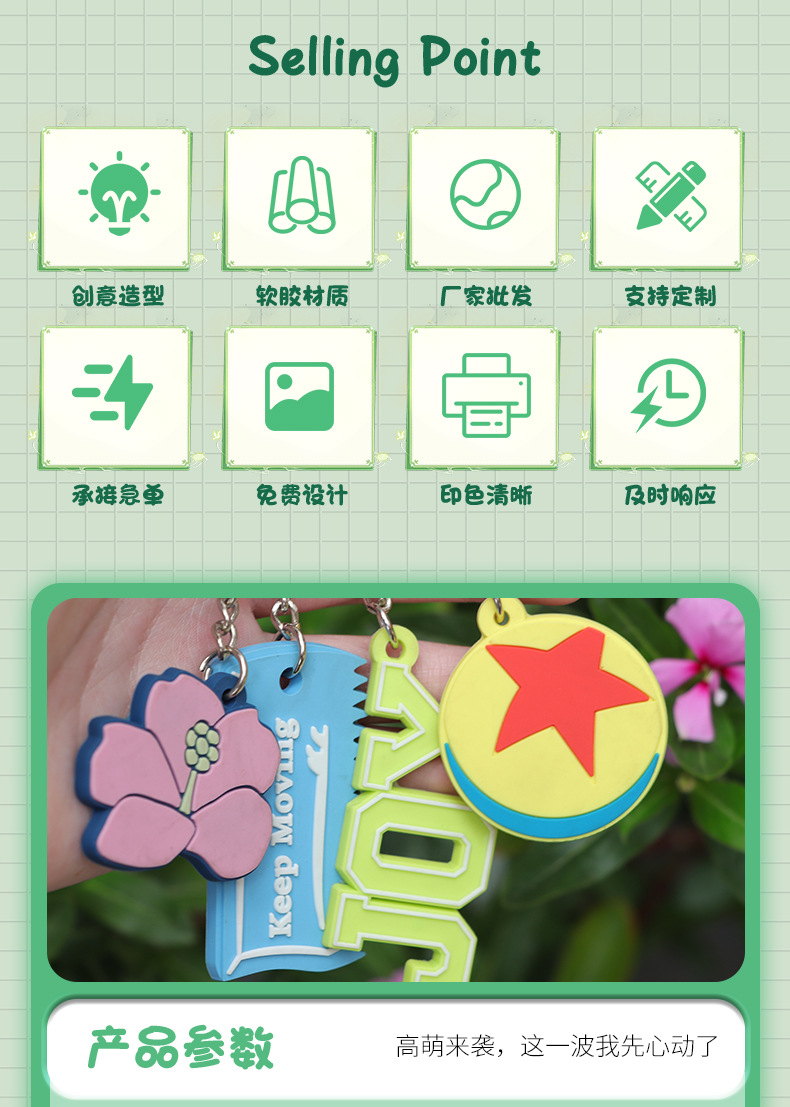 만화 창조적 인 PVC 부드러운 고무 키 체인 사용자 정의 고무 키 체인 펜던트 가방 실리콘 펜던트 프로모션 선물스토어 가기