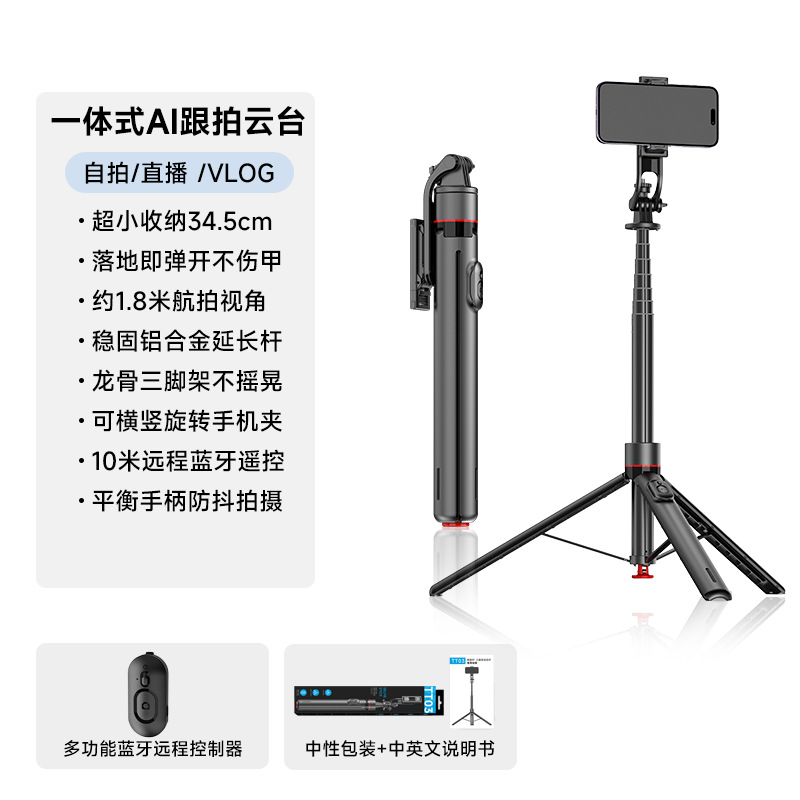 • 【TT01- 1.77m 】일체형 알루미늄 합금 폴 + 접지 즉시 개방형 삼각대 + 블루투스 리모컨 + 360°회전축