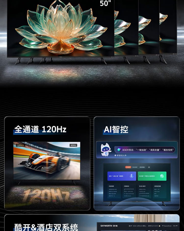 스카이워스 4K 울트라 클리어 TV 회의 호텔 55E392H 65E392H 75E392H 55/65/ 75inch