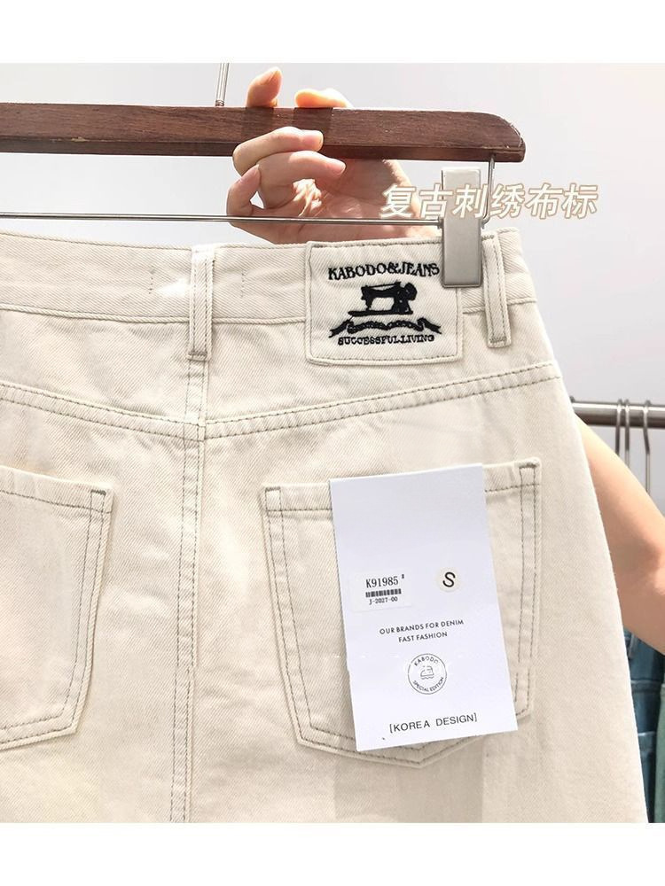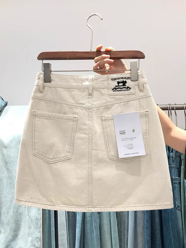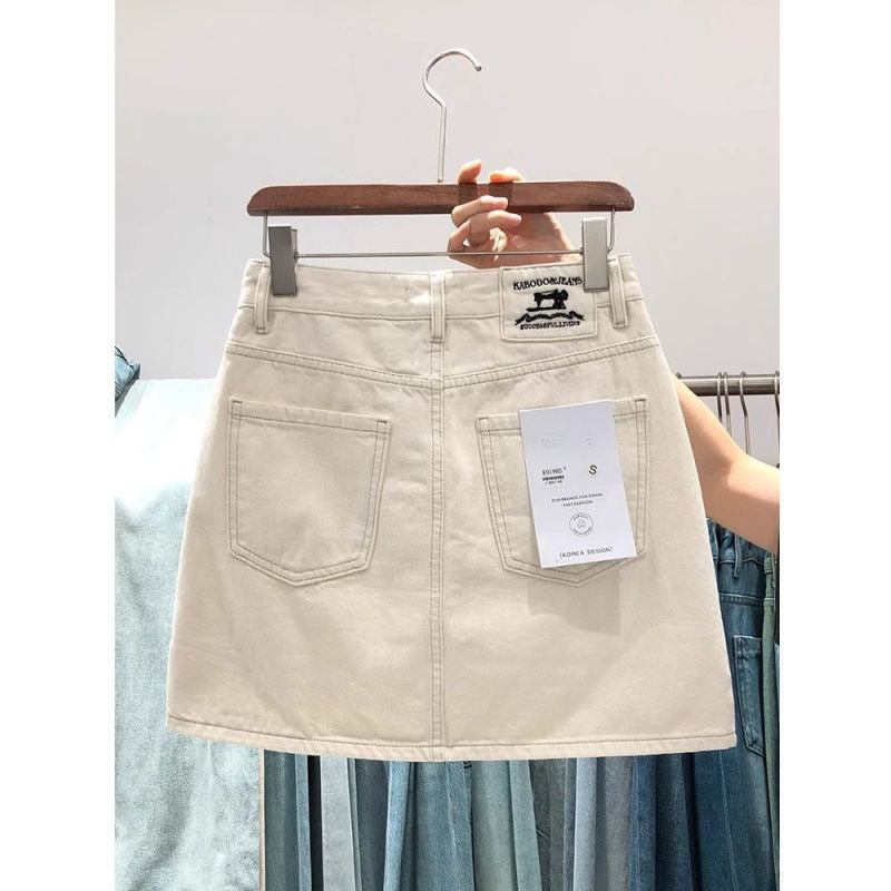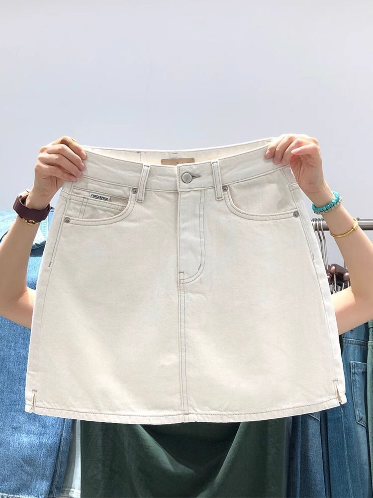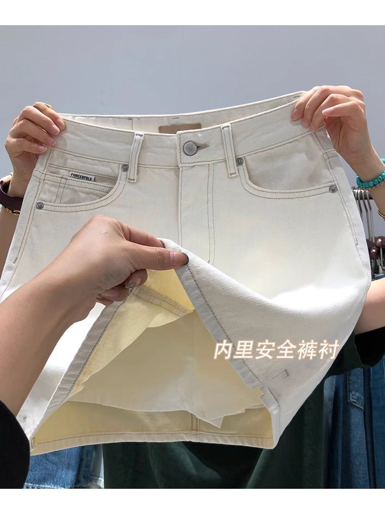 2025 년 여름 새로운 도착 스커트 유럽 높은 허리 슬리밍 화이트 A 라인 스커트 트렌디 플러스 사이즈 레트로 데님 스커트스토어 가기