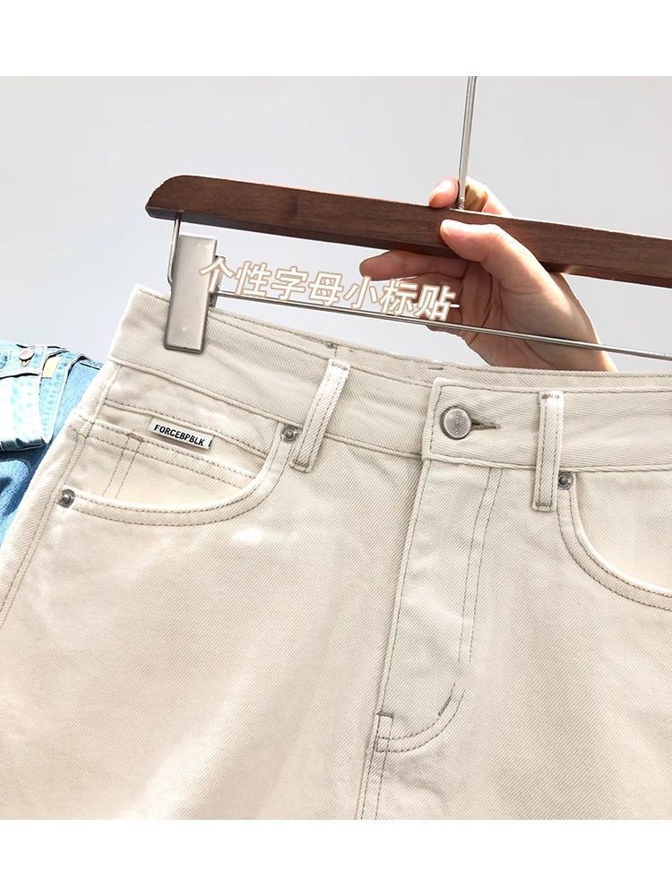 2025 년 여름 새로운 도착 스커트 유럽 높은 허리 슬리밍 화이트 A 라인 스커트 트렌디 플러스 사이즈 레트로 데님 스커트