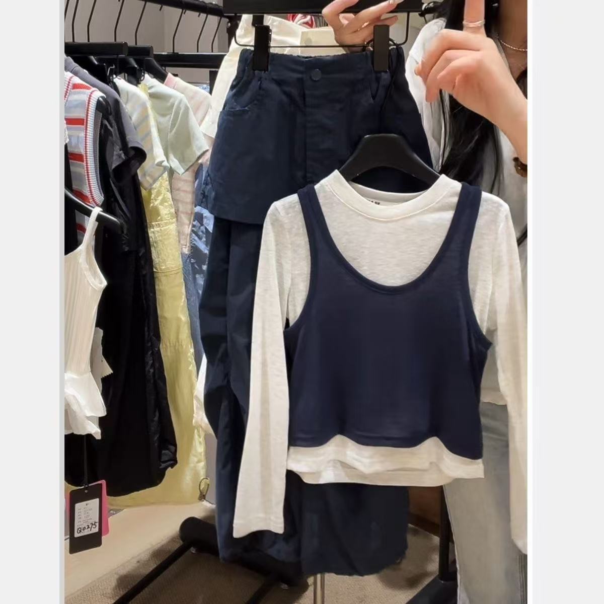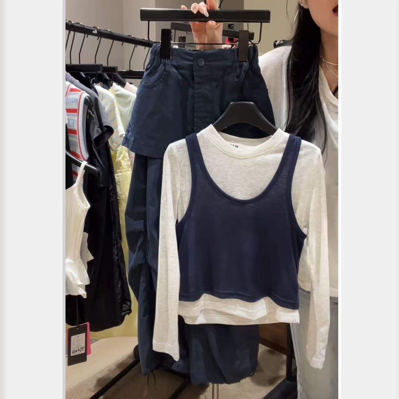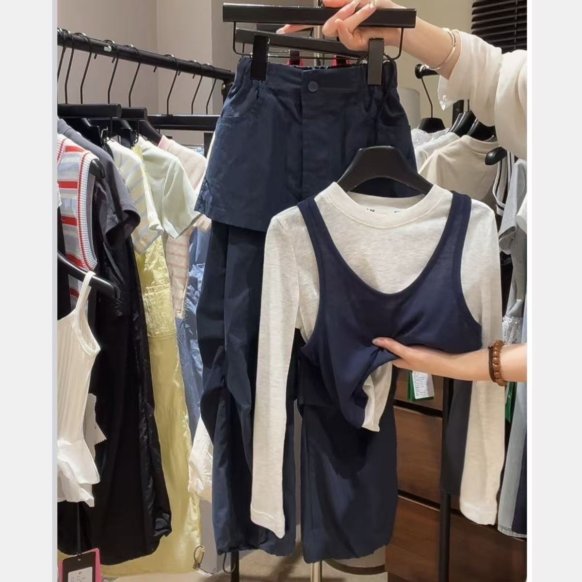 • 네이비 조끼 리얼 투피스 세트 + 네이비 엉덩이 커튼 캐주얼 팬츠