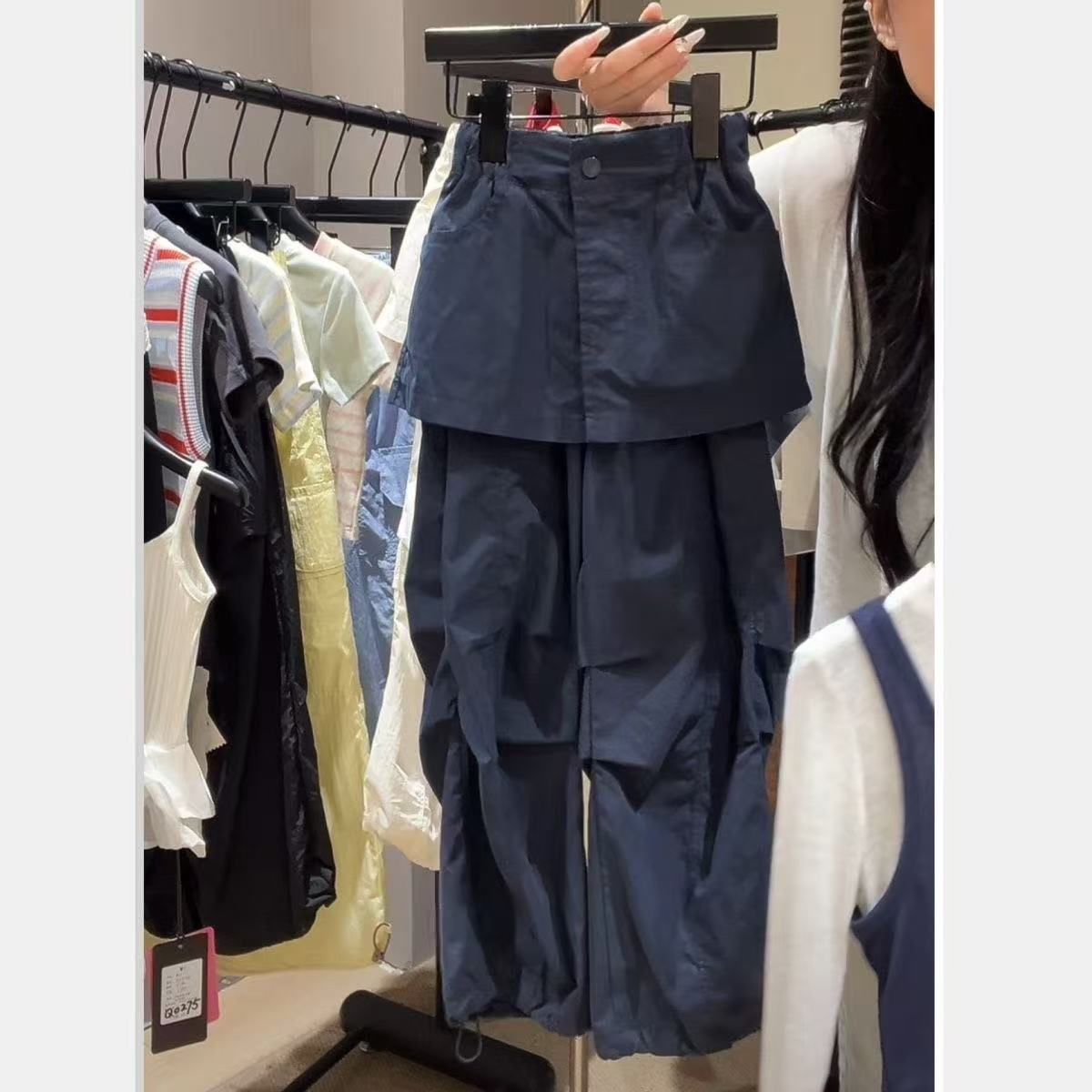 • 네이비 블루 엉덩이 커튼 캐주얼 팬츠