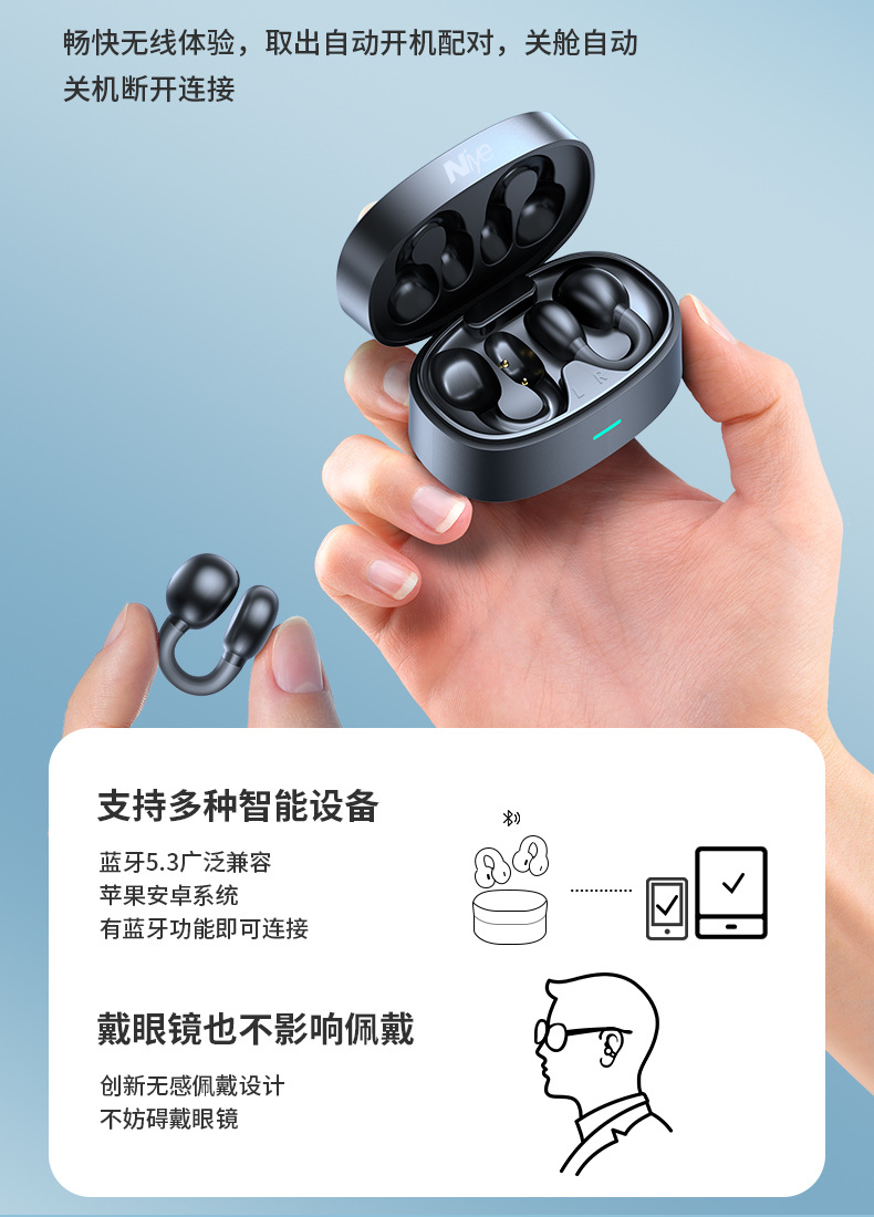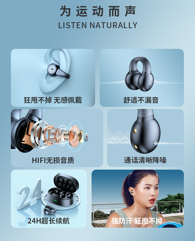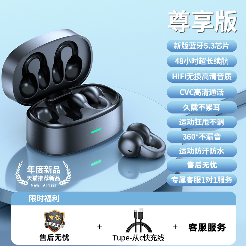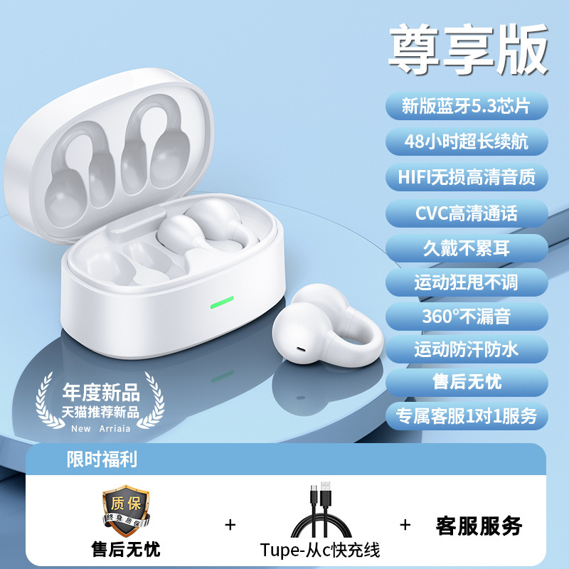 2025 새로운 블루투스 헤드셋 무선 스포츠 귀 클립 소음 감소 높은 음질 하이 퀄리티 긴 배터리 수명없이 실행