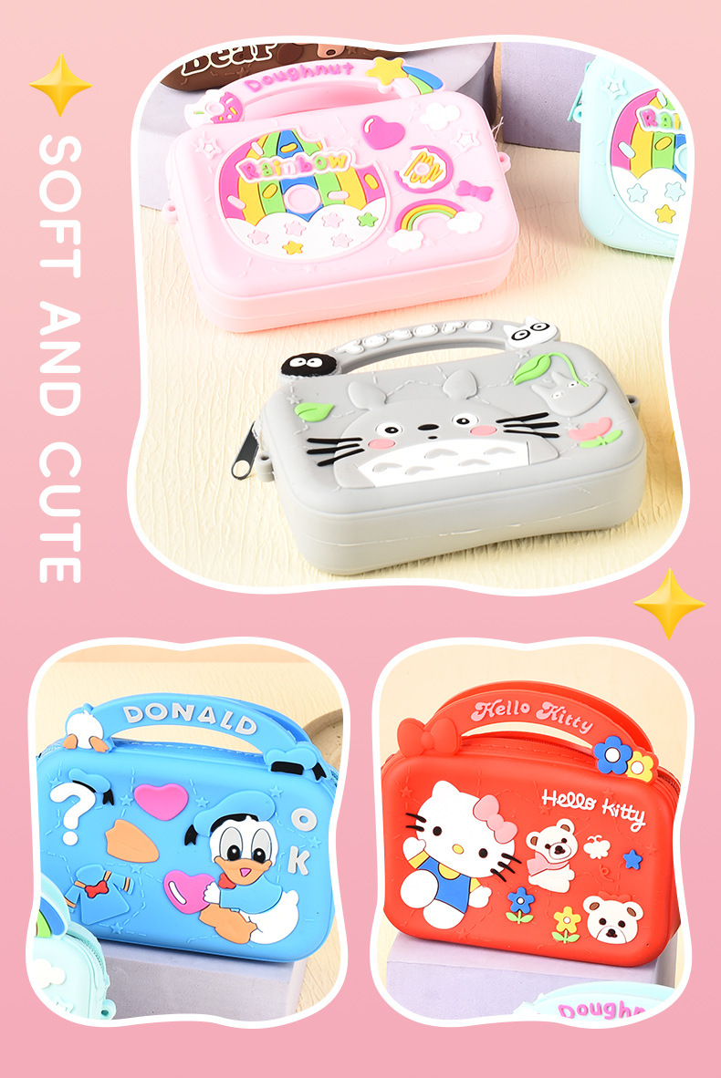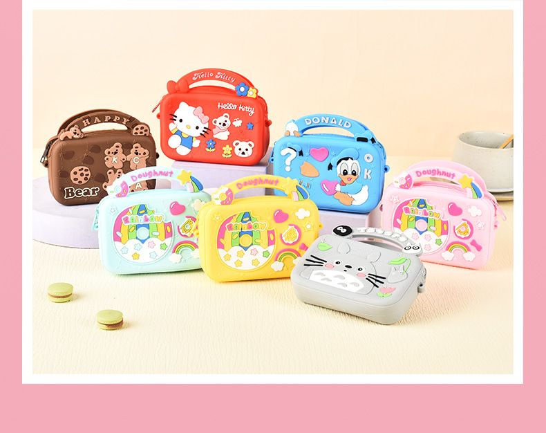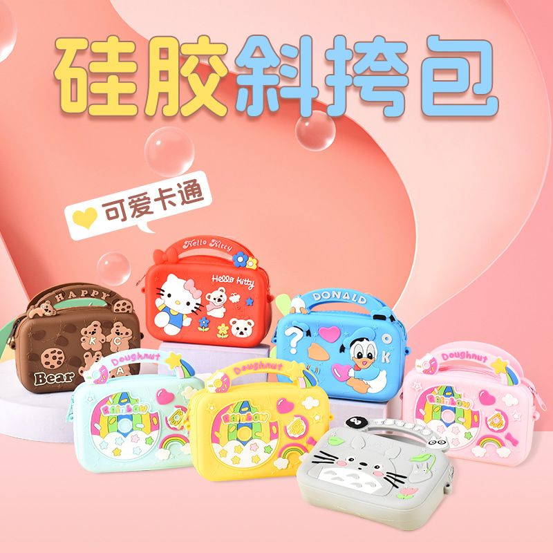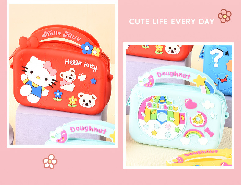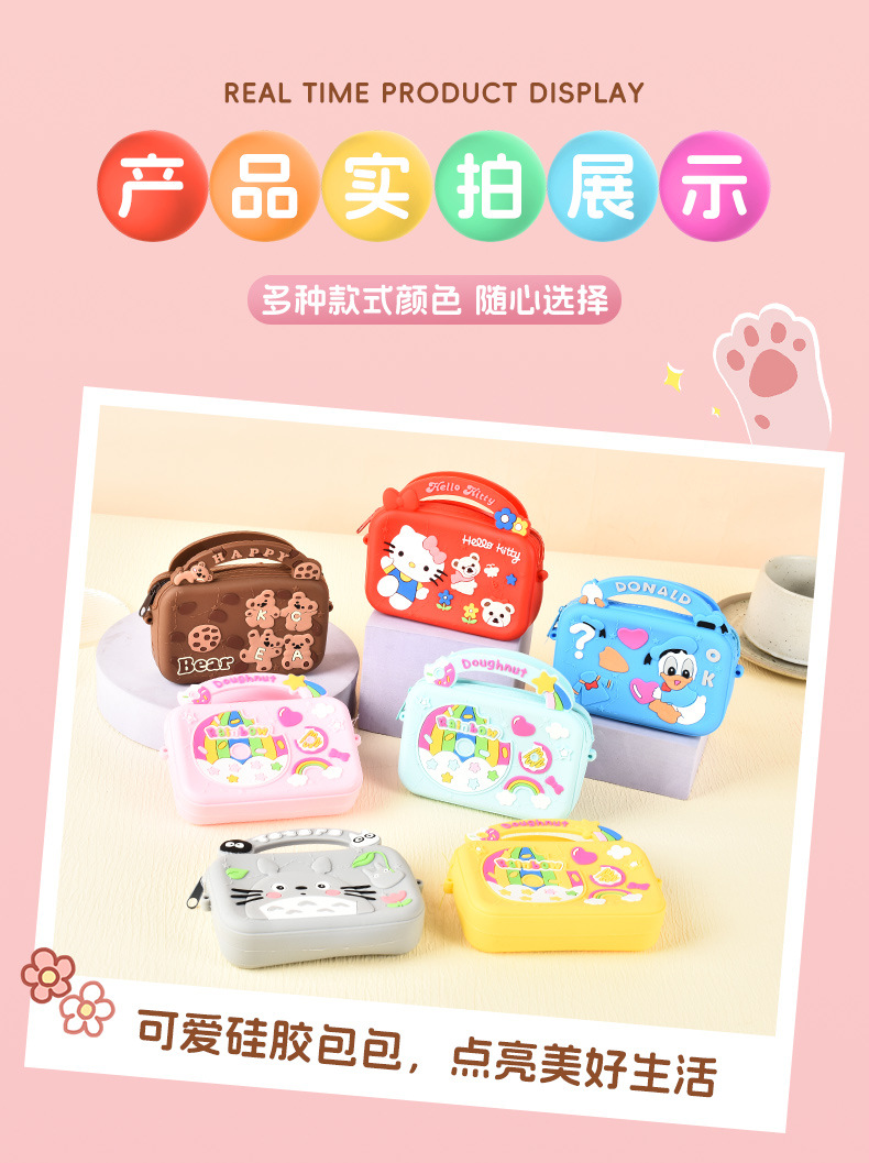 스팟 만화 실리콘 핸드백 헬로 키티 어린이 미니 크로스 바디 백 실리콘 동전 지갑 헤드폰 보관 가방