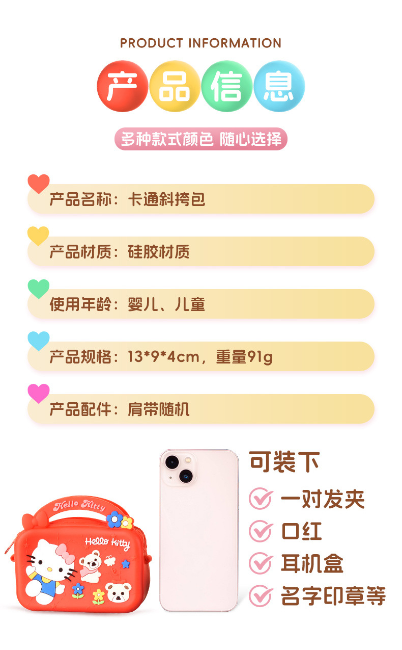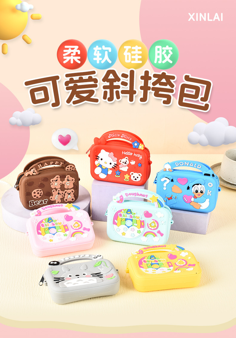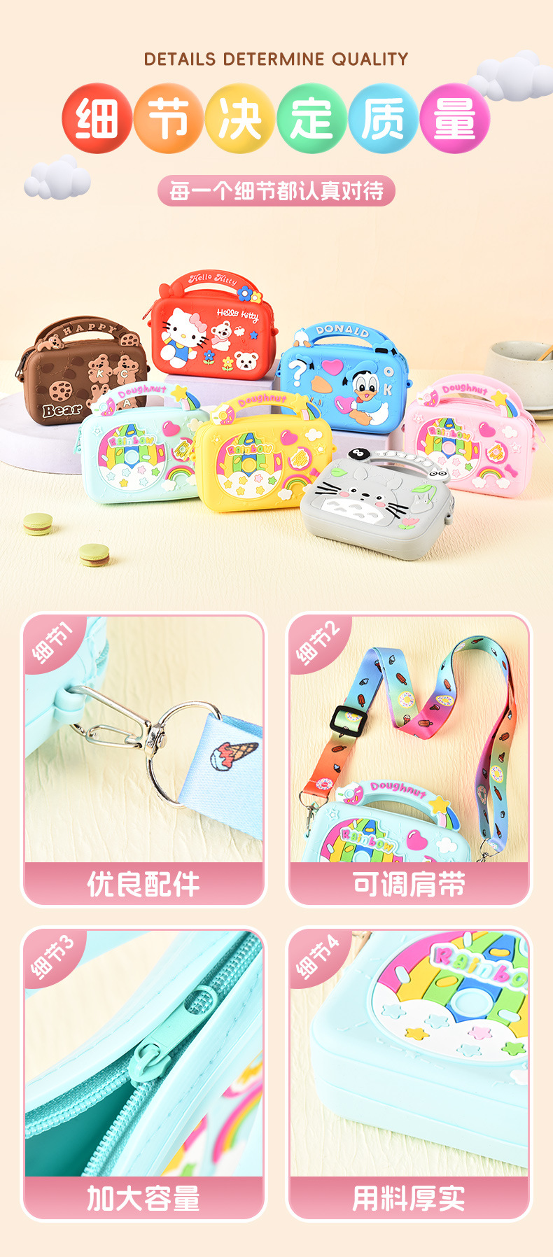스팟 만화 실리콘 핸드백 헬로 키티 어린이 미니 크로스 바디 백 실리콘 동전 지갑 헤드폰 보관 가방