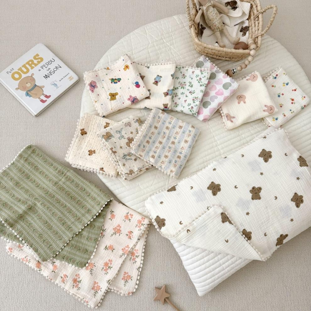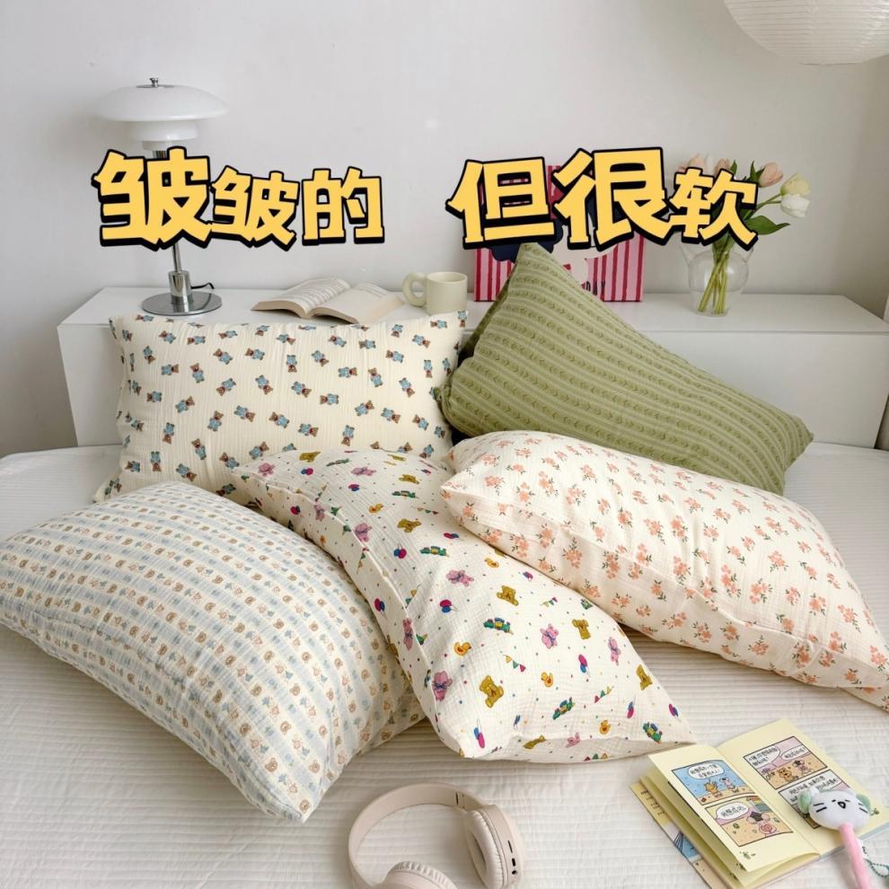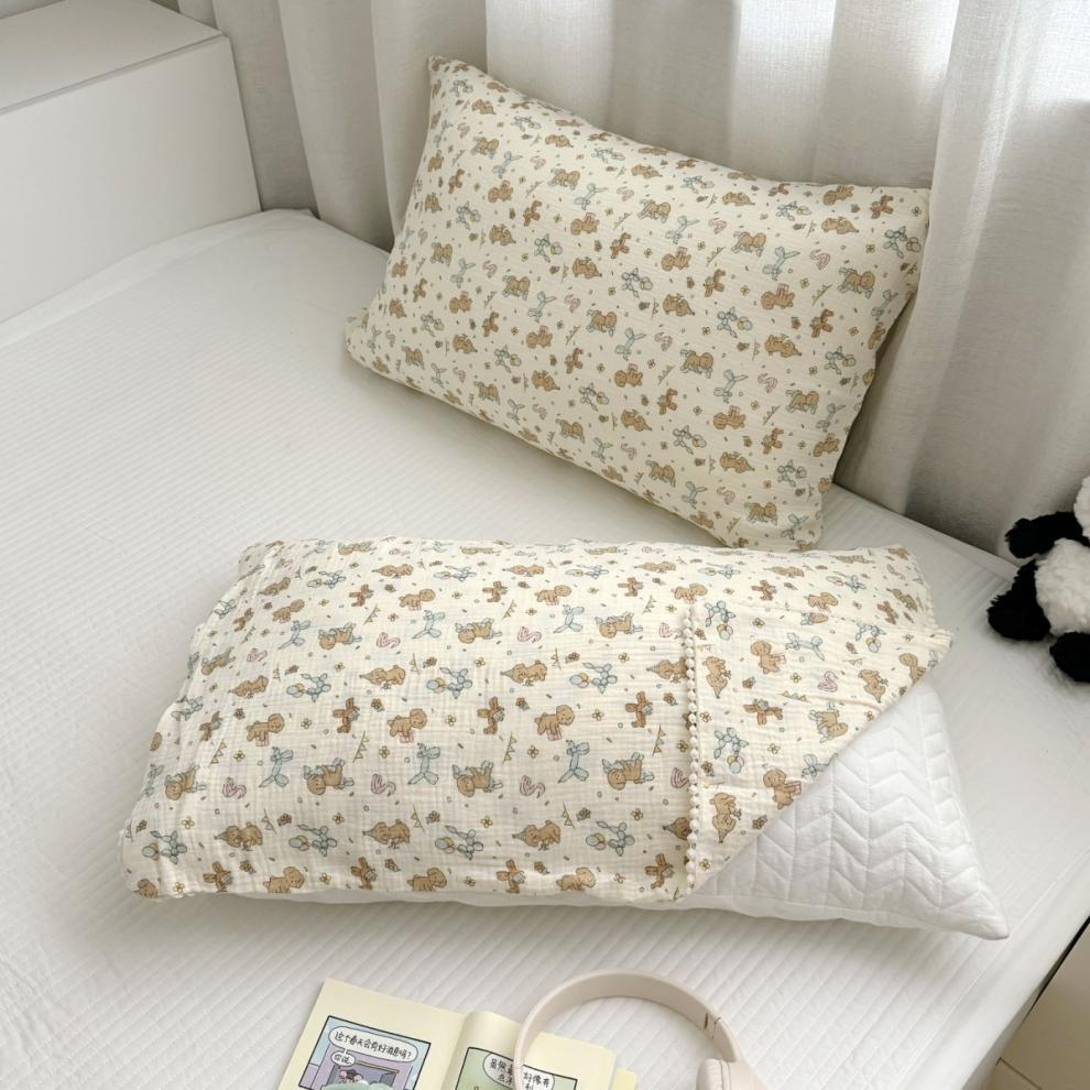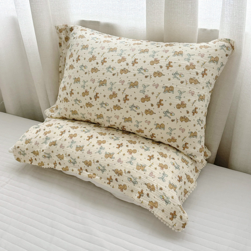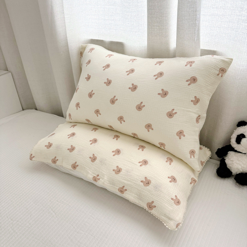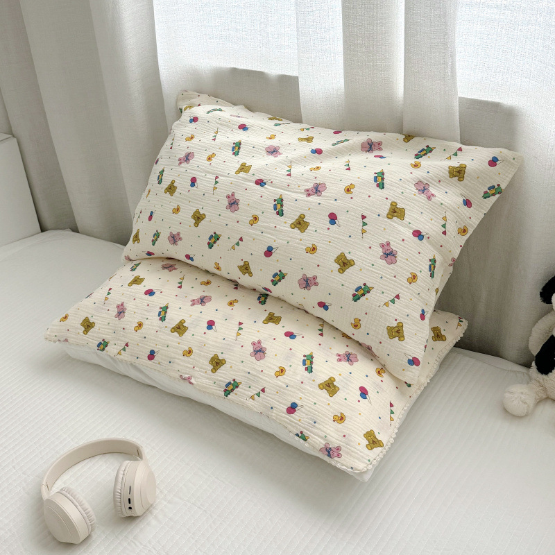 全棉双层皱皱纱母婴A类枕套枕巾儿童成长双层纱枕套小花边枕巾
