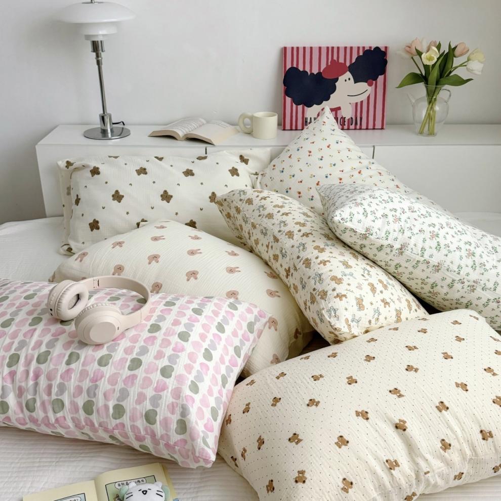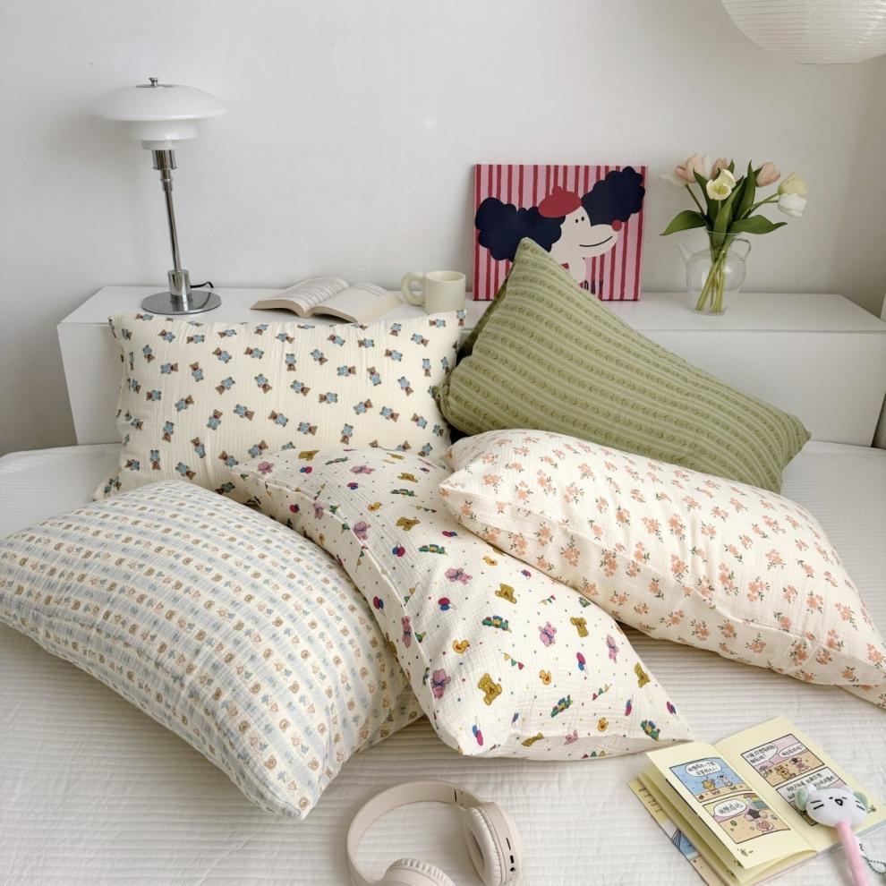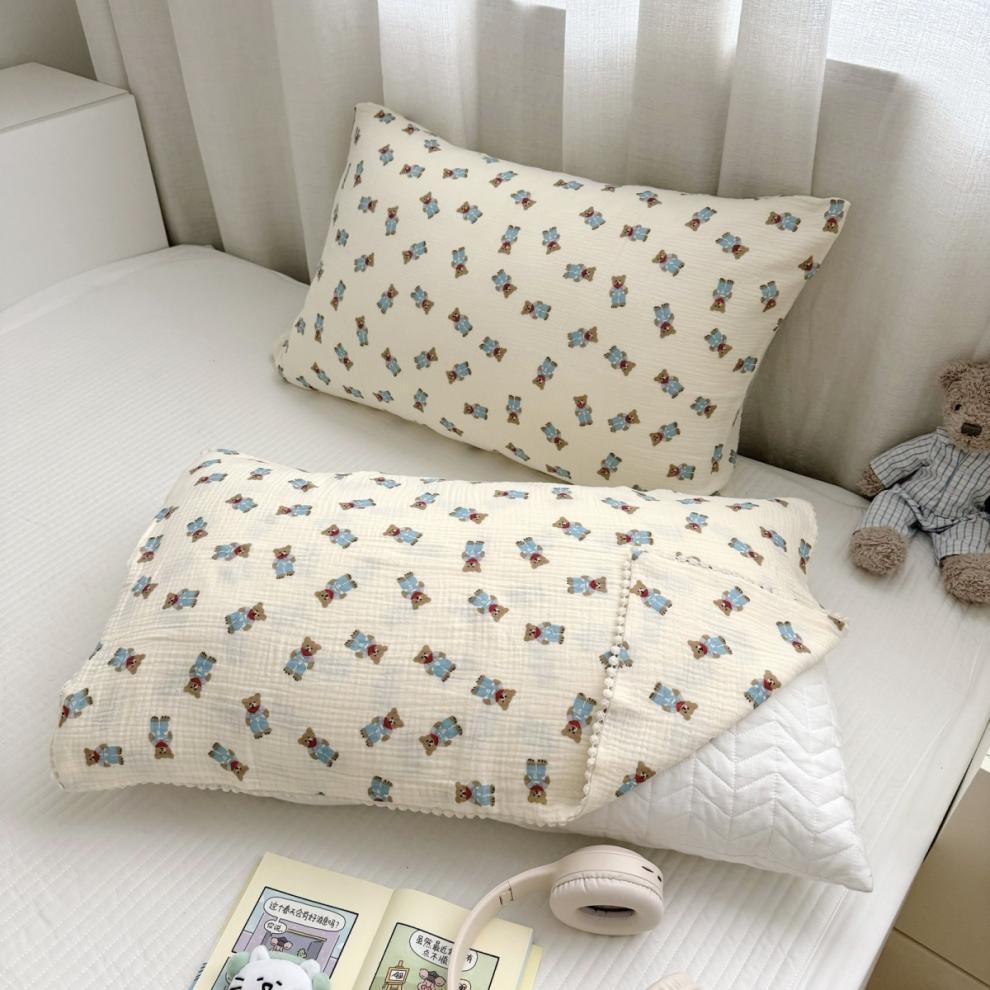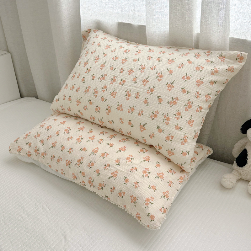 다양한 모양의 면 2겹 주름진 원사 엄마와 아기 A급 베개 커버 어린이 성장 2겹 원사 베개 커버 작은 꽃