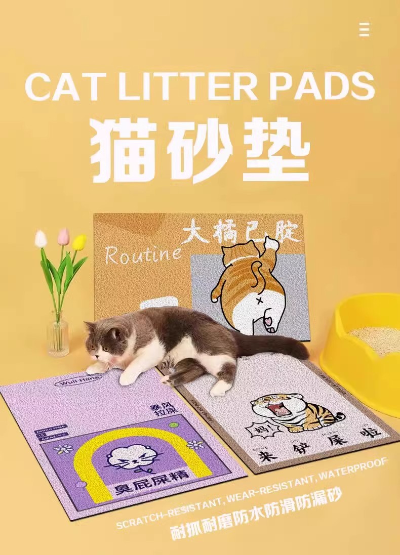 애완 동물 고양이 쓰레기 매트 누출 방지 스플래시 고양이 쓰레기 분지 매트 잡아 방지 미끄럼 방지 실크 링 Ins 재미있는 애완 동물 위생 매트