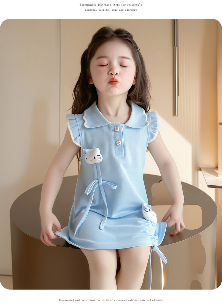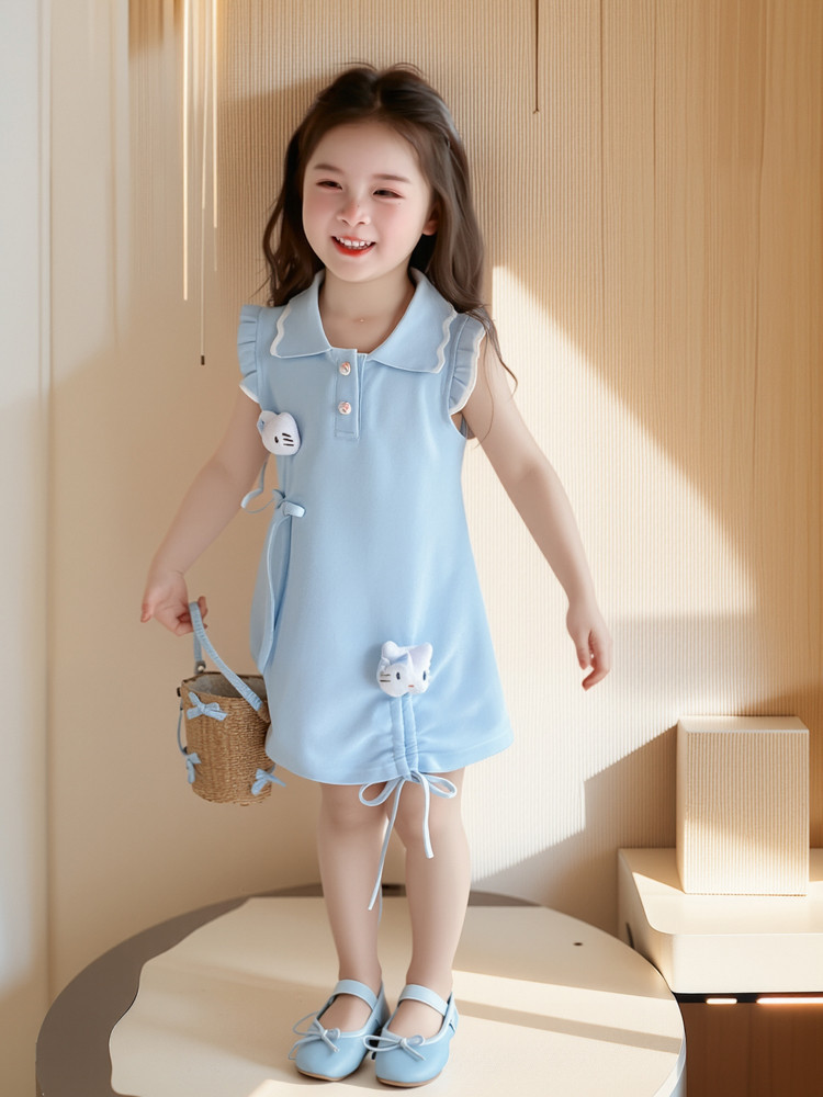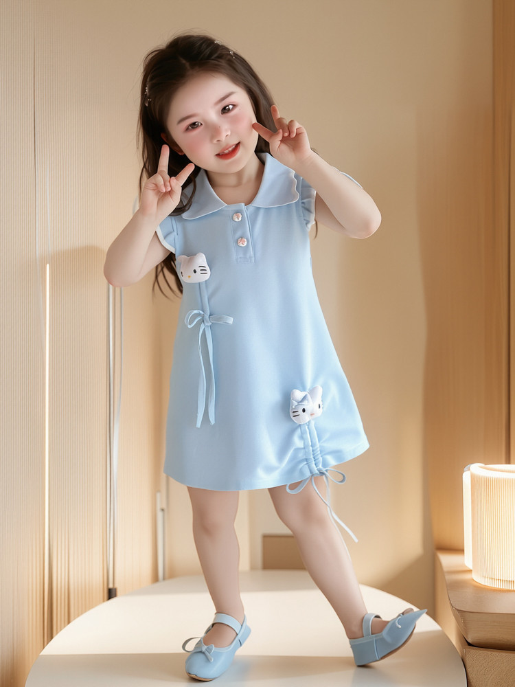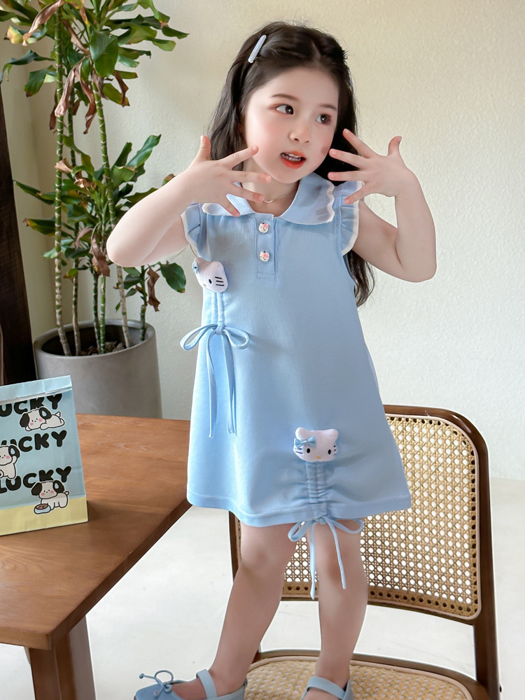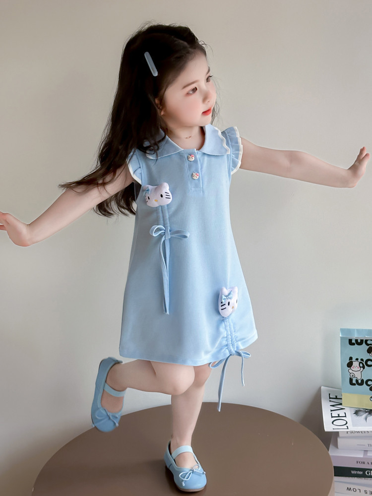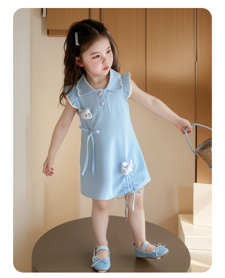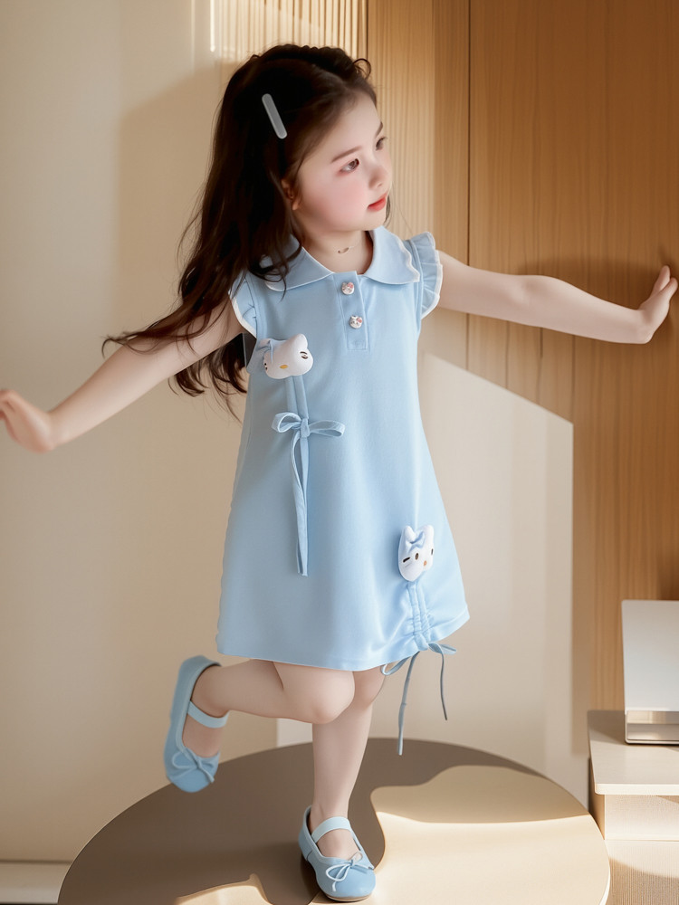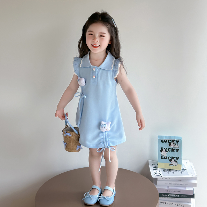 여자 여름 원피스 2025 새로운 어린이 비행 소매 공주 원피스 유행 세련된 폴로 원피스 아기 소녀 원피스