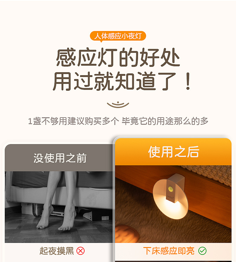야간 자동 인체 센서 램프는 사람들이 오면 켜집니다. 스마트 홈 복도 통로 계단 충전 야간 조명스토어 가기