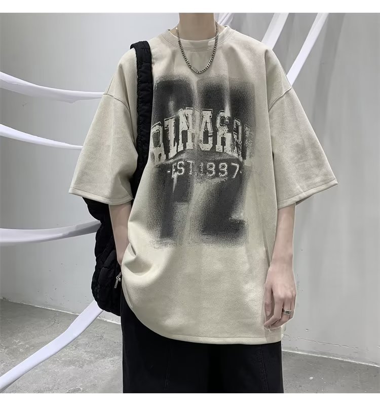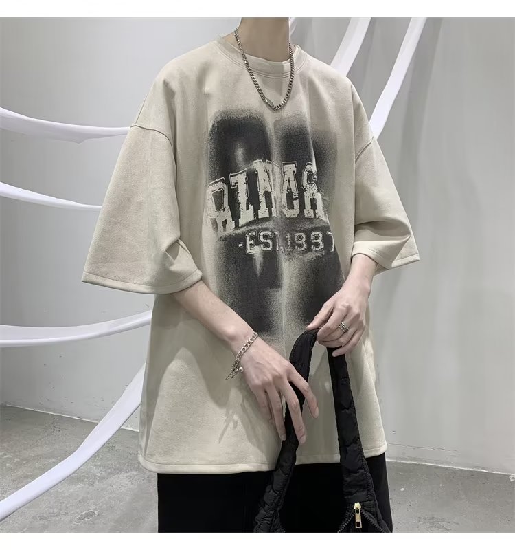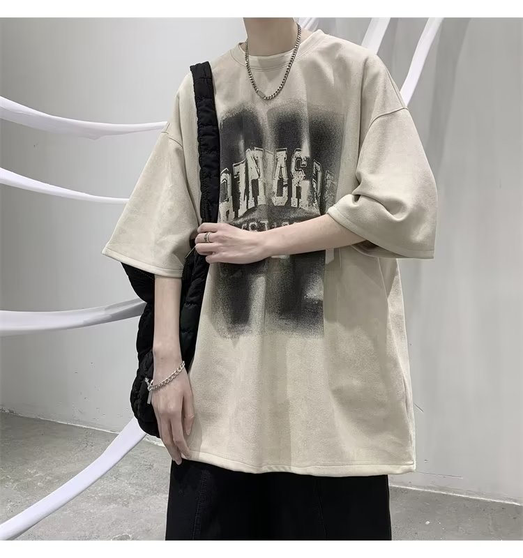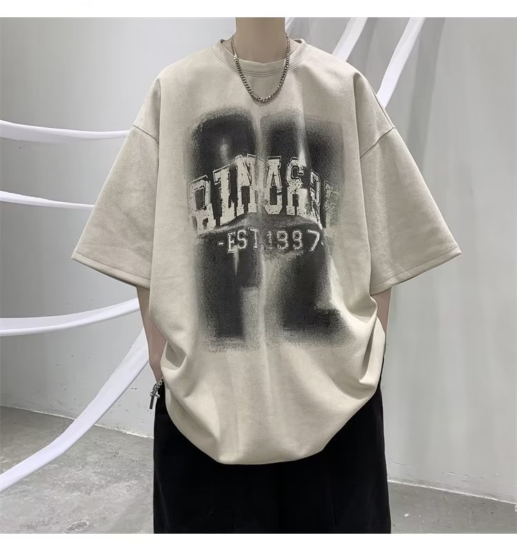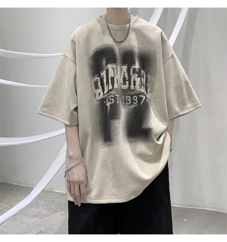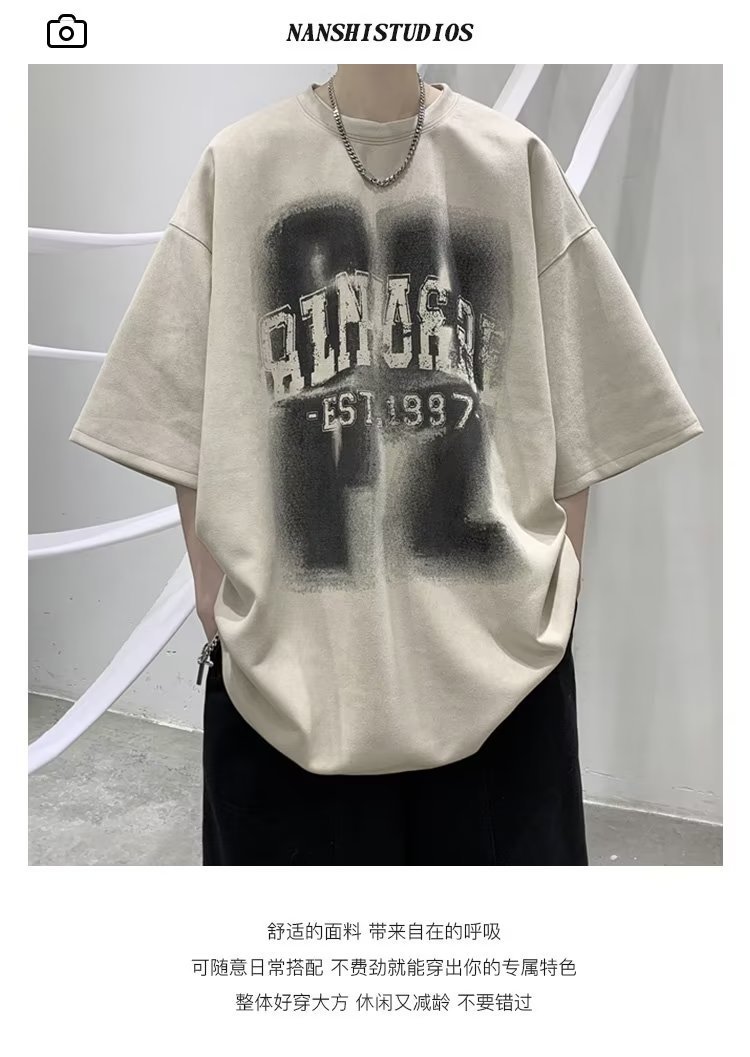 여름 새로운 일본 스타일 트렌디 브랜드 반팔 티셔츠 남자 홍콩 스타일 인스 타 그램 스타일 트렌디 올매치 느슨한 플러스 사이즈 라운드 넥 올 매치 캐주얼스토어 가기