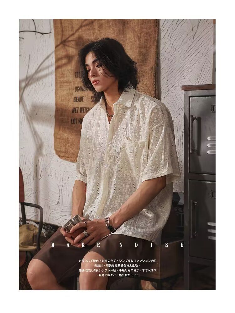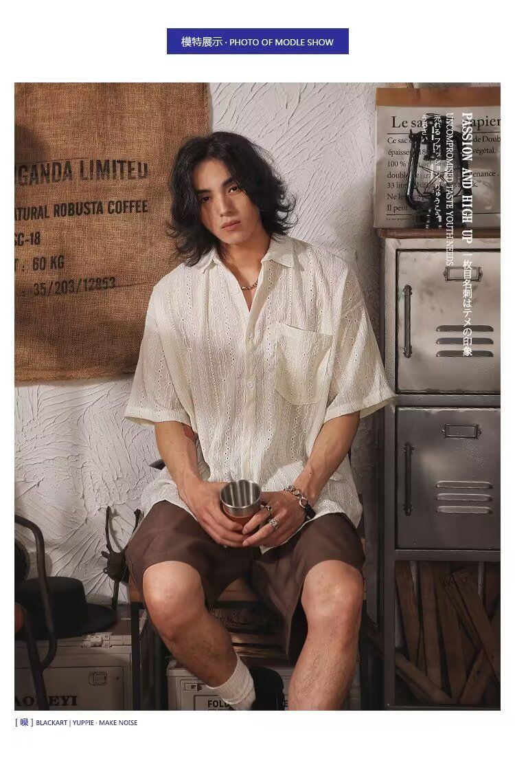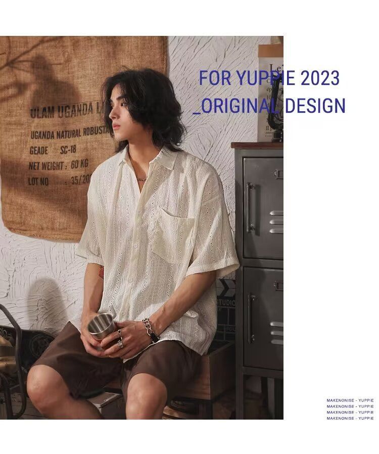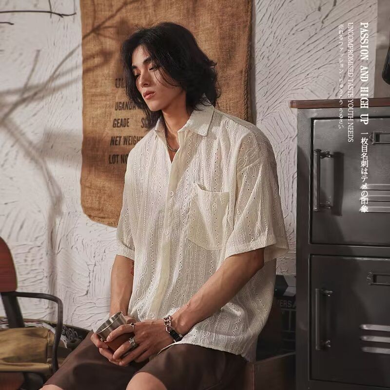 빈티지 틈새 반팔 디자인 셔츠 쓰레기 여름 캐주얼 느슨한 민족 셔츠 남자 일본 스타일 반소매 재킷