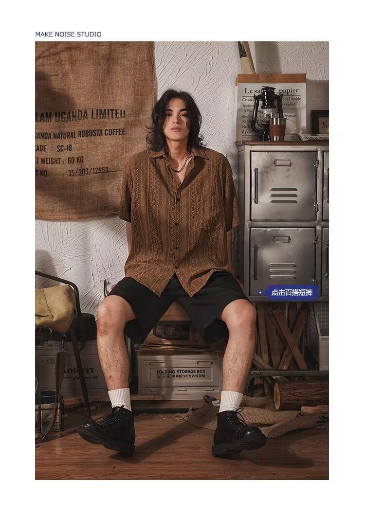빈티지 틈새 반팔 디자인 셔츠 쓰레기 여름 캐주얼 느슨한 민족 셔츠 남자 일본 스타일 반소매 재킷스토어 가기