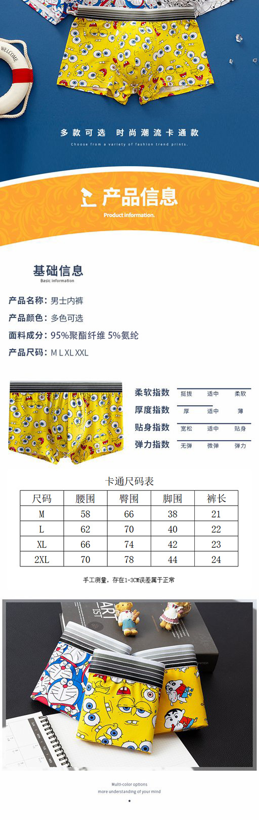 남성 속옷, 남성 청소년, 맞춤형 소년, 중간 허리, 귀여운 소년 학생 만화 복서 팬티, 복서 반바지스토어 가기