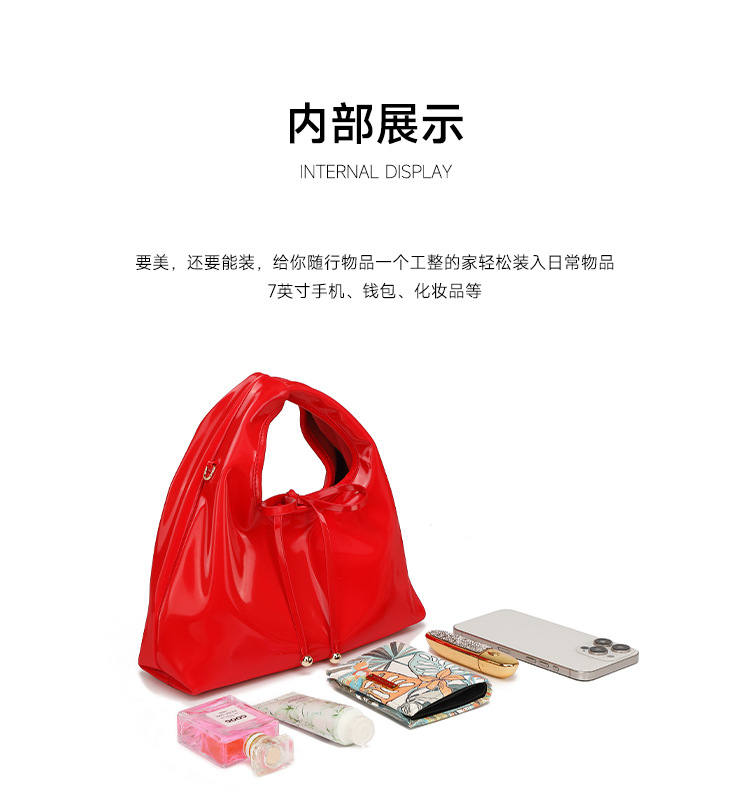 2025 아이스 실크 레드 백 새로운 스타일 부드럽고 달콤한 스트랩 보우 한국 스타일 심플 캐주얼 다용도 핸드백스토어 가기