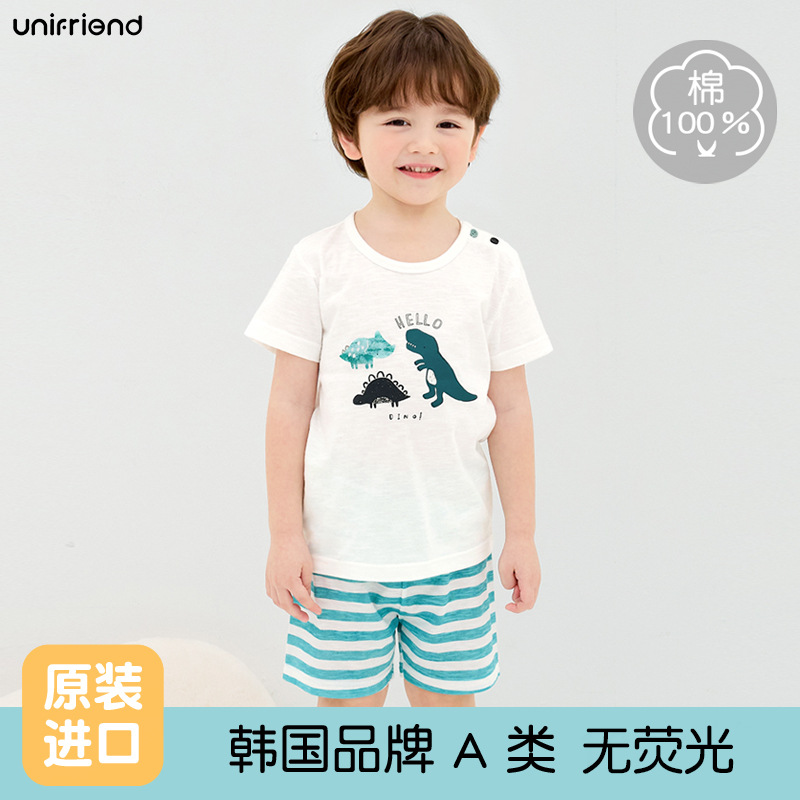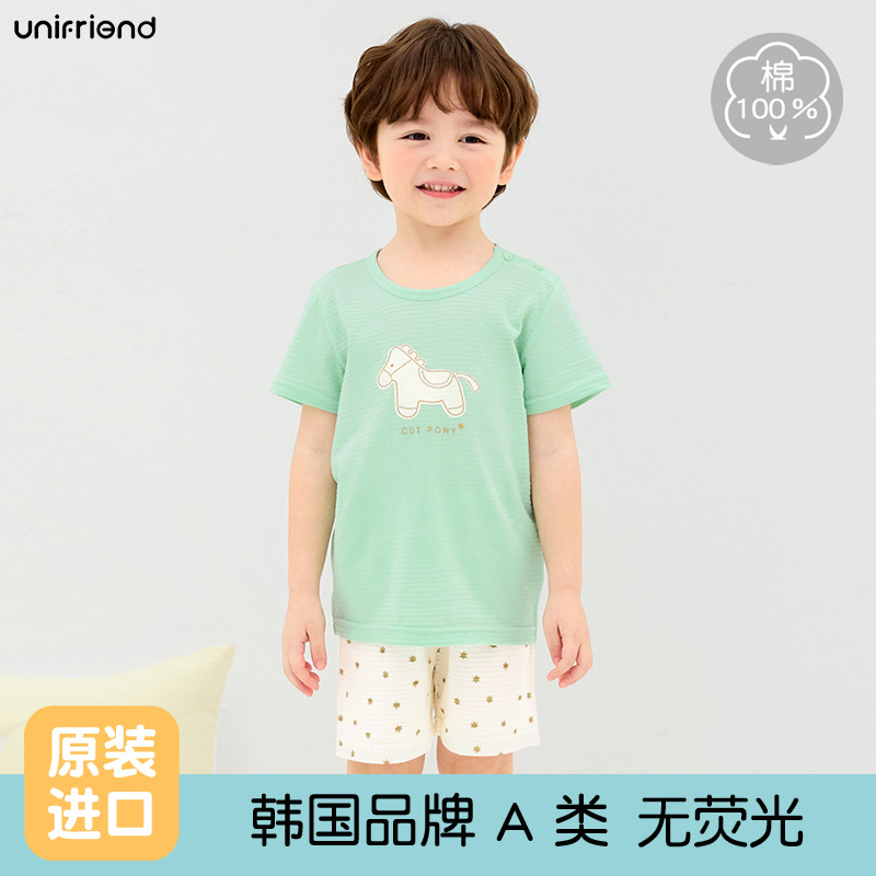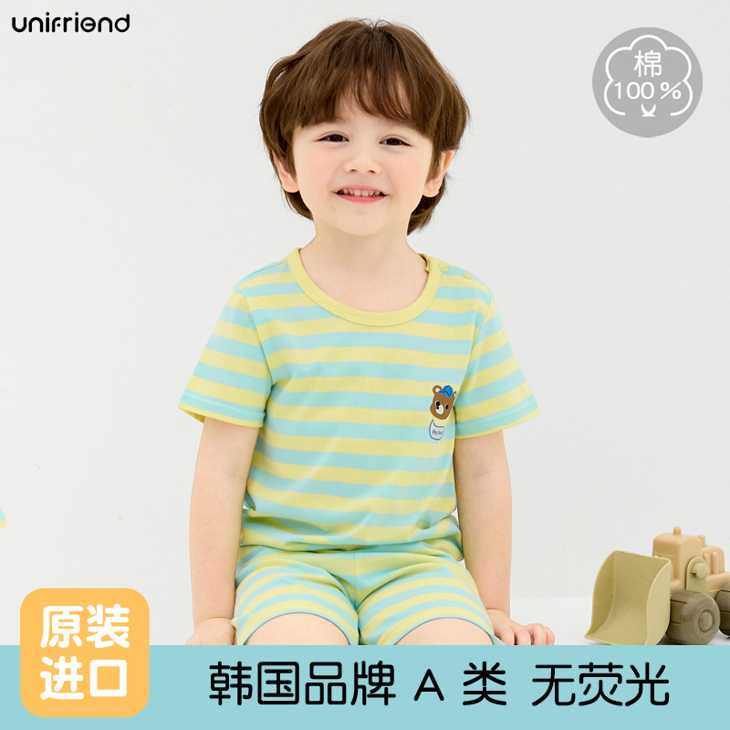 Unifriend 여름 얇은 소년 잠옷 순수 코튼 어린이 새로운 에어컨 옷 큰 어린이와 소녀를위한 가정 옷