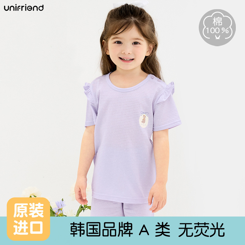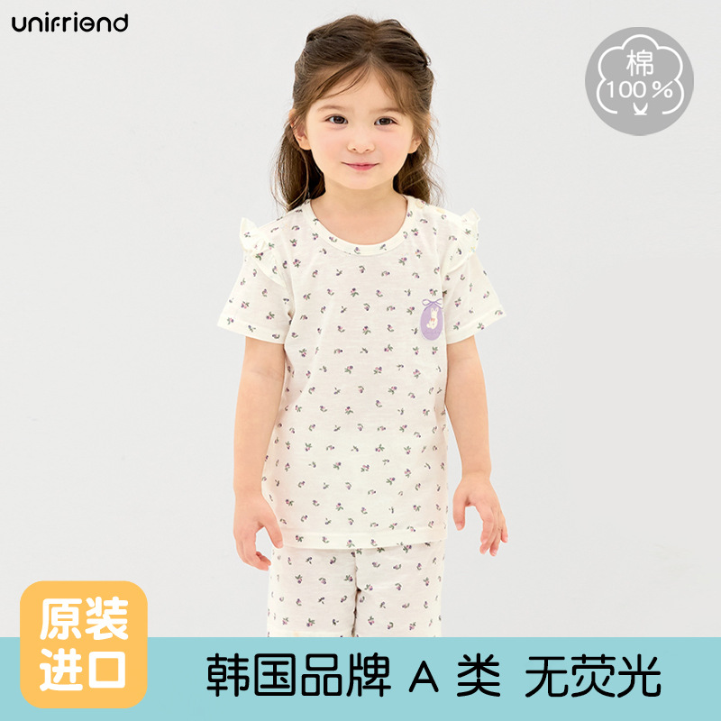 Unifriend 여름 얇은 소년 잠옷 순수 코튼 어린이 새로운 에어컨 옷 큰 어린이와 소녀를위한 가정 옷스토어 가기