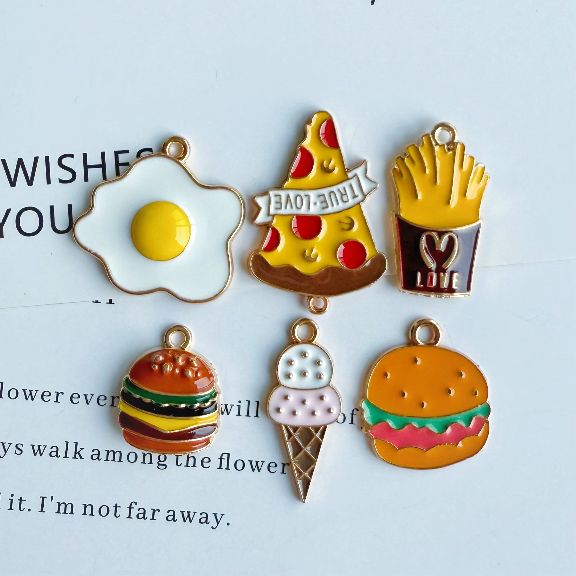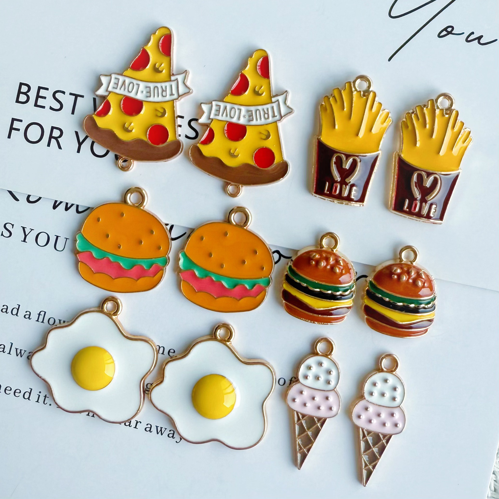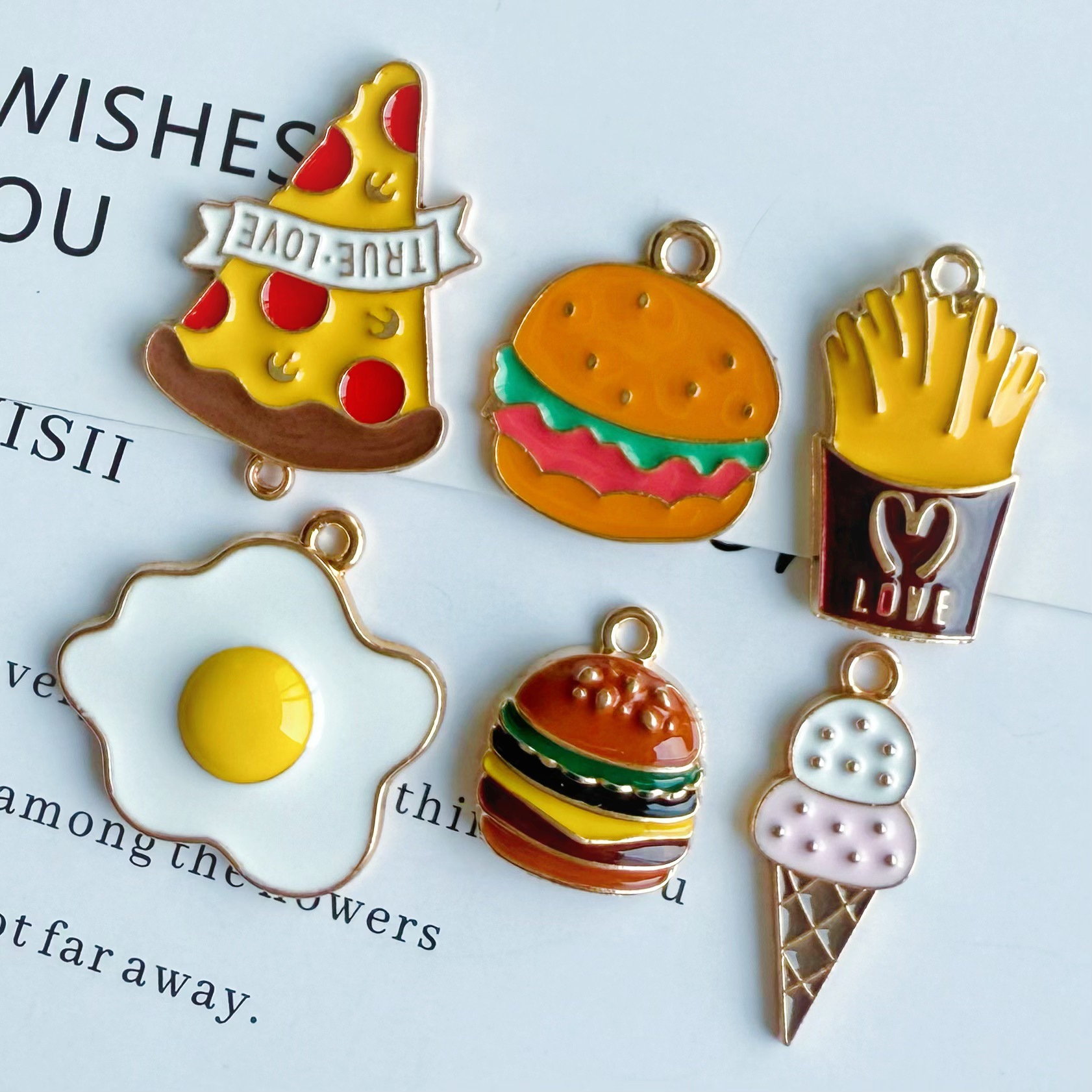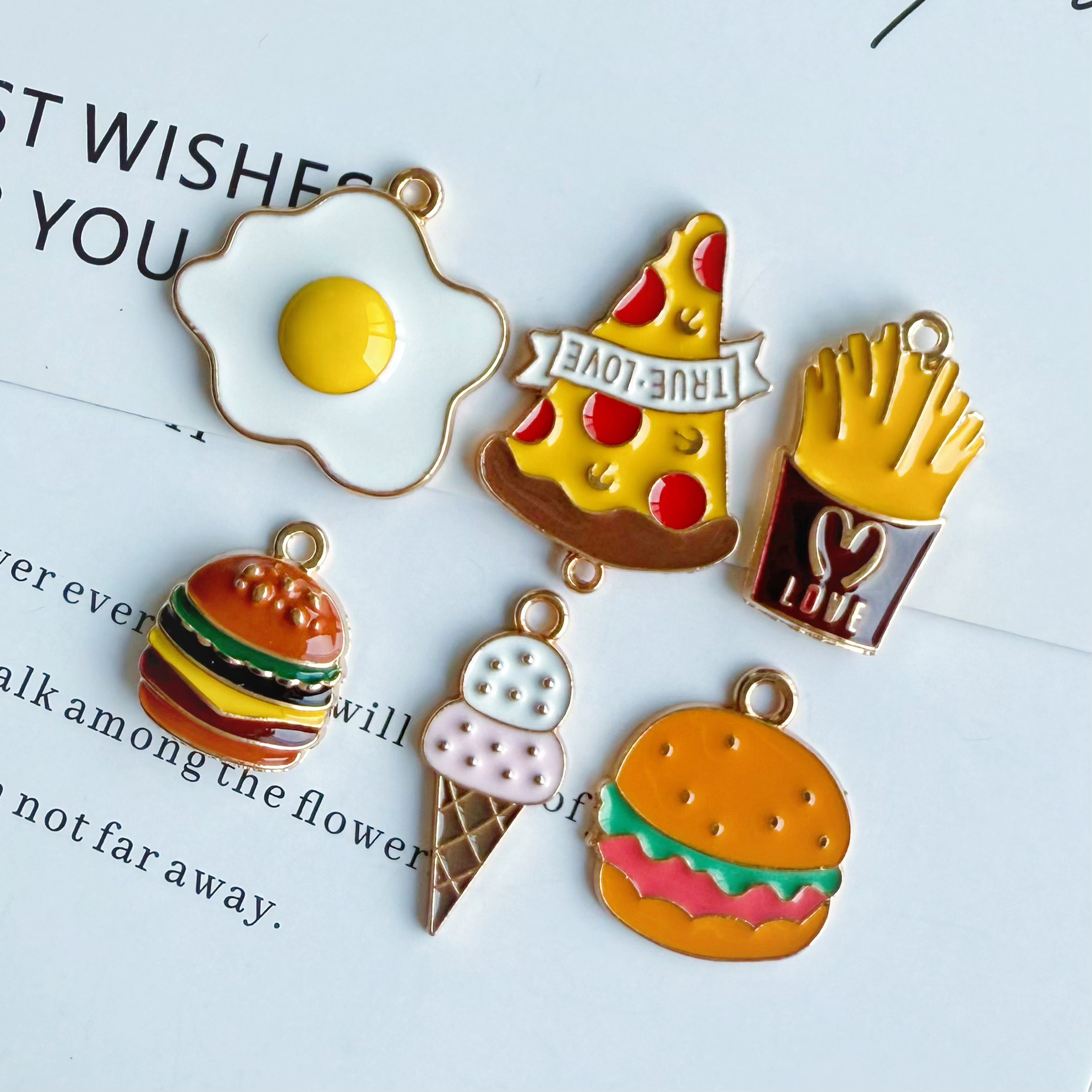 햄버거 프라이 피자 푸드 플레이 드롭 오일 합금 펜던트 수제 DIY 키 체인 매력 팔찌 쥬얼리 액세서리 배치