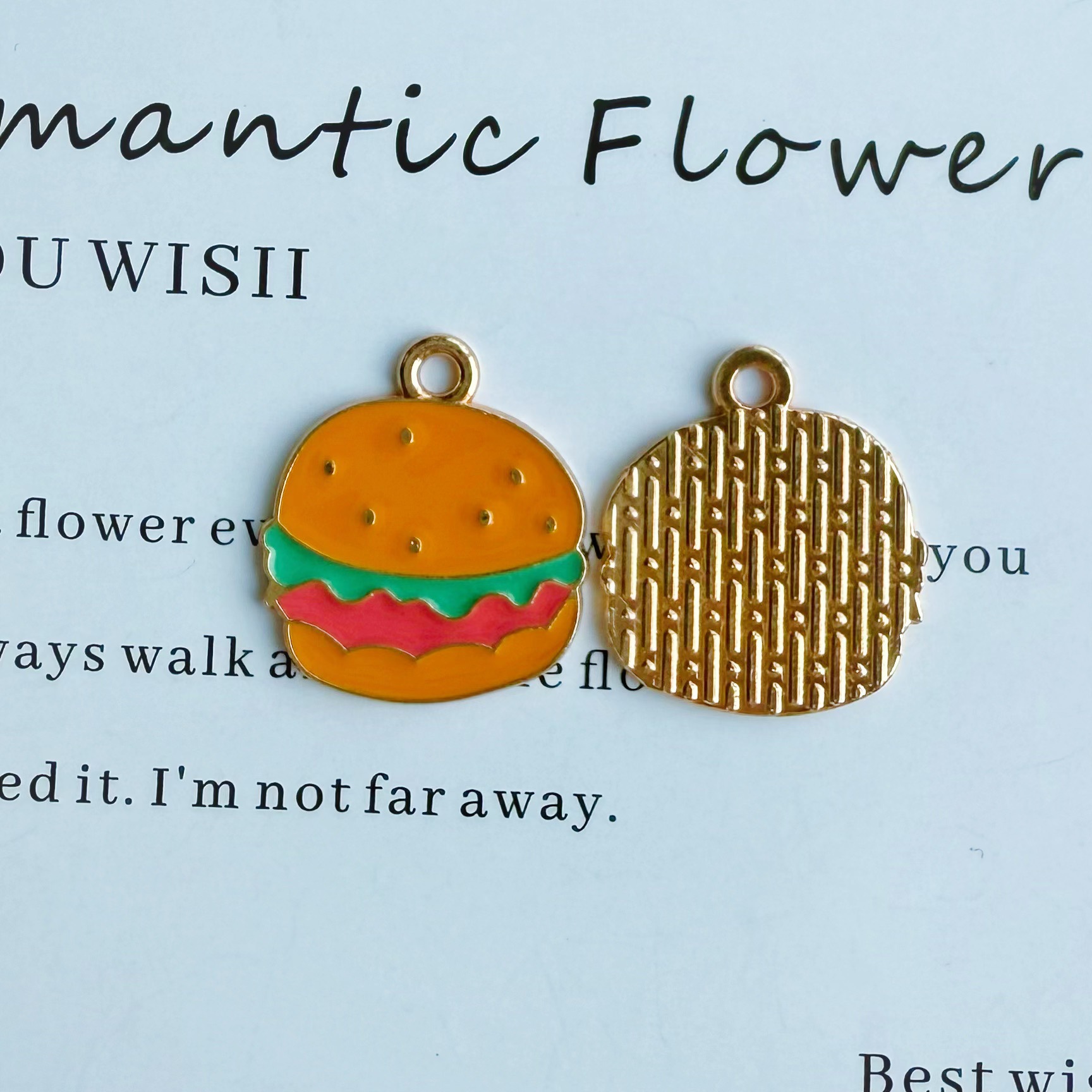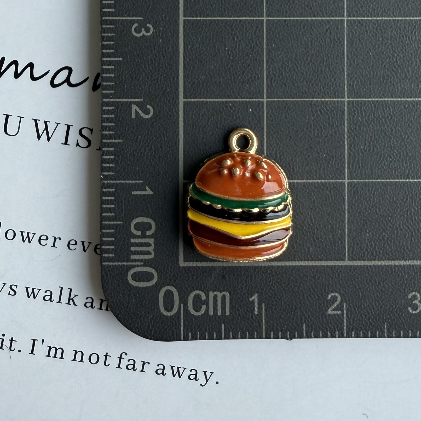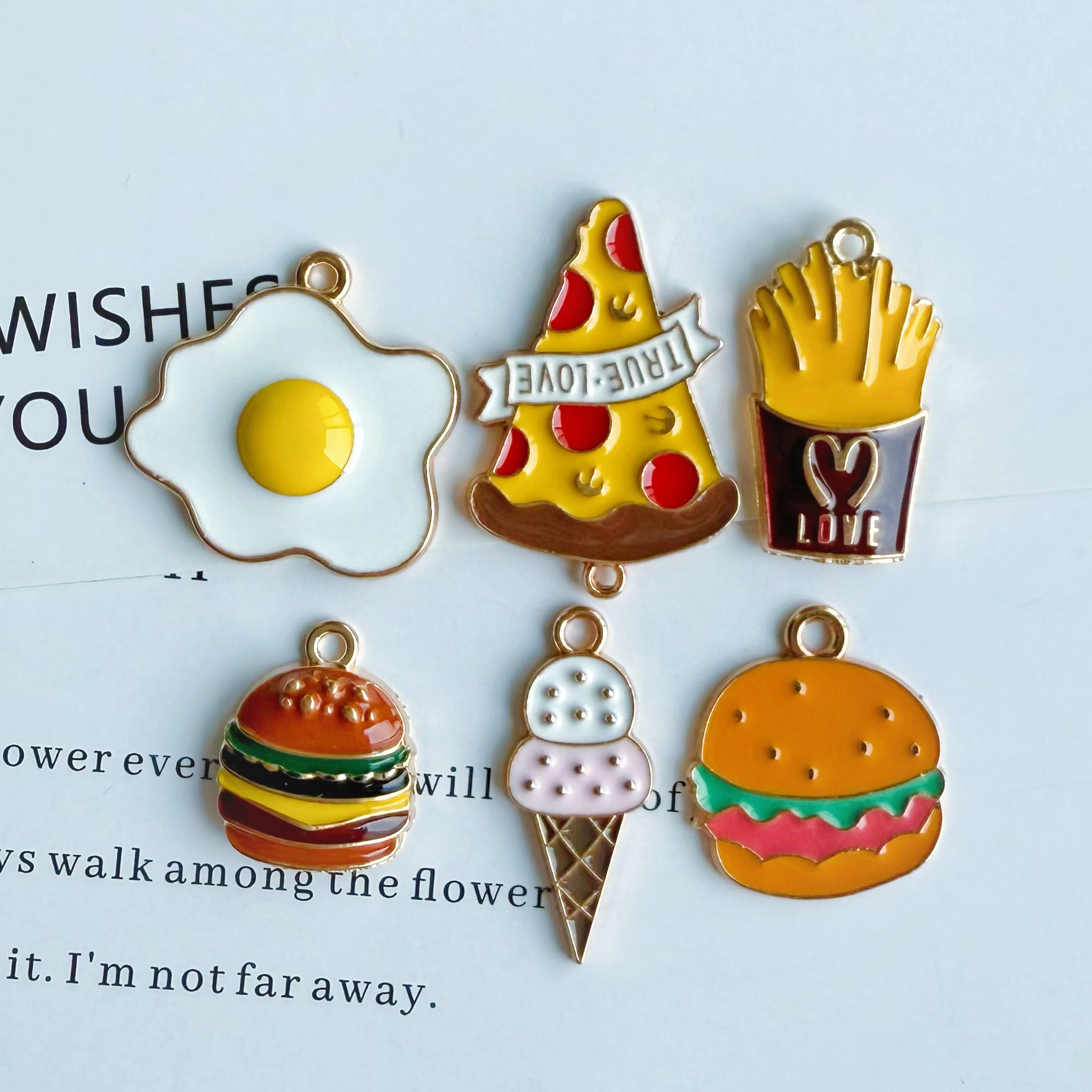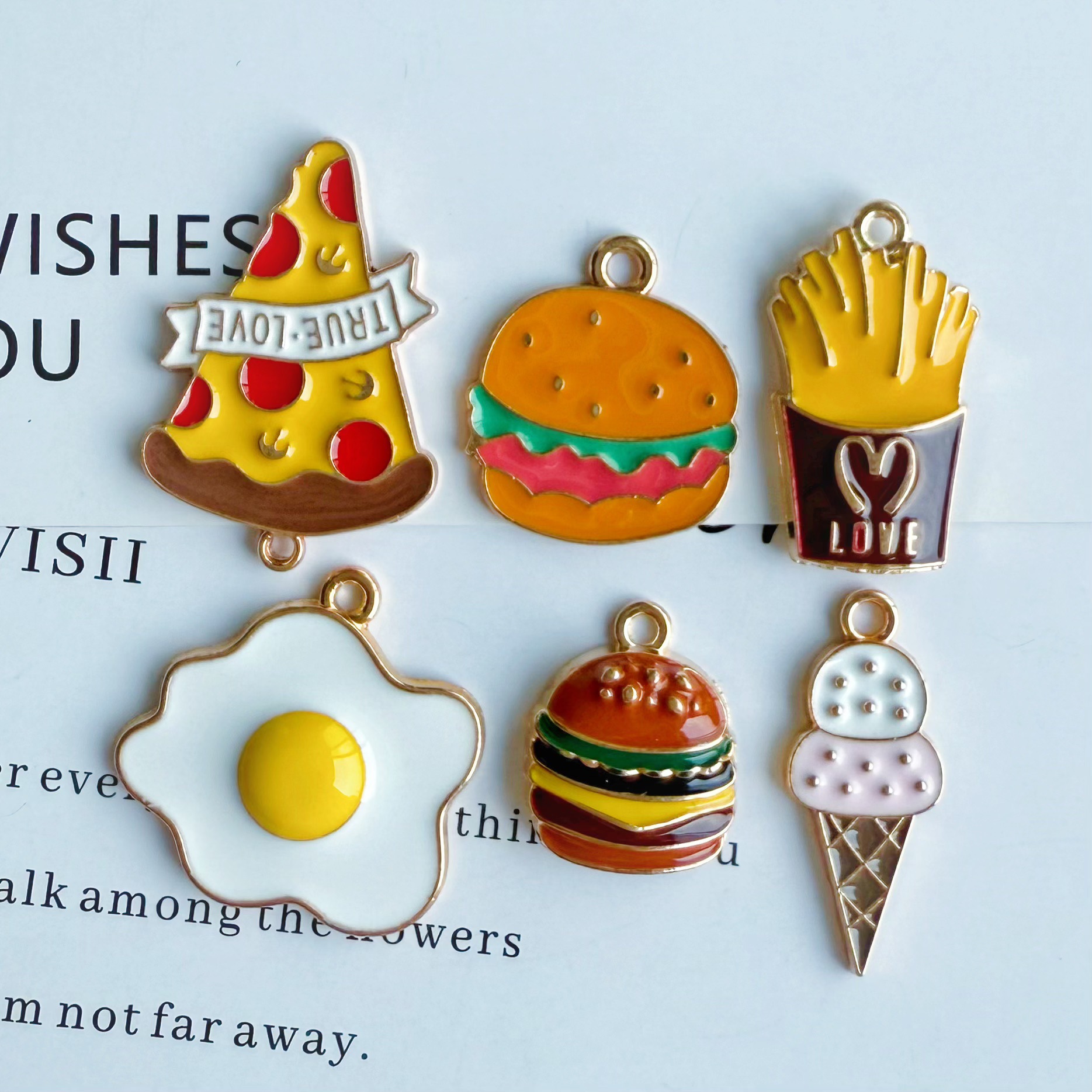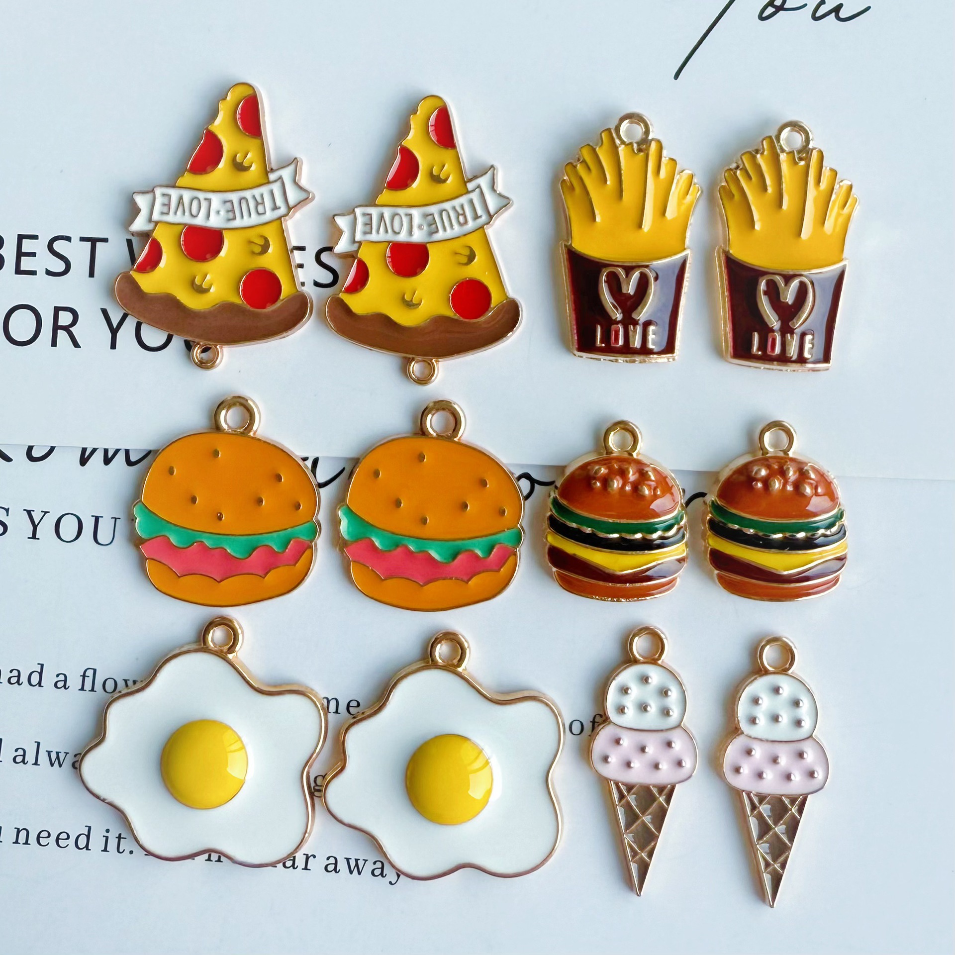 햄버거 프라이 피자 푸드 플레이 드롭 오일 합금 펜던트 수제 DIY 키 체인 매력 팔찌 쥬얼리 액세서리 배치