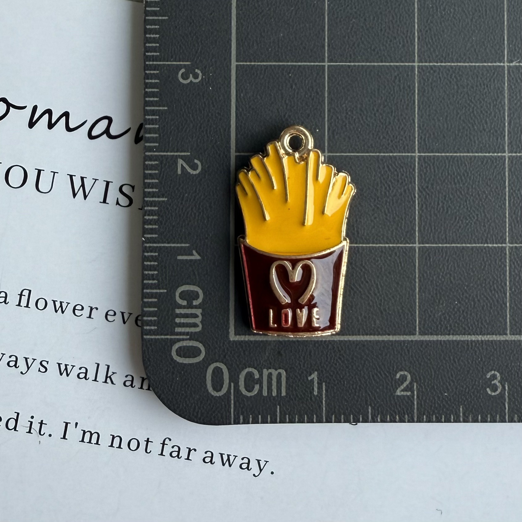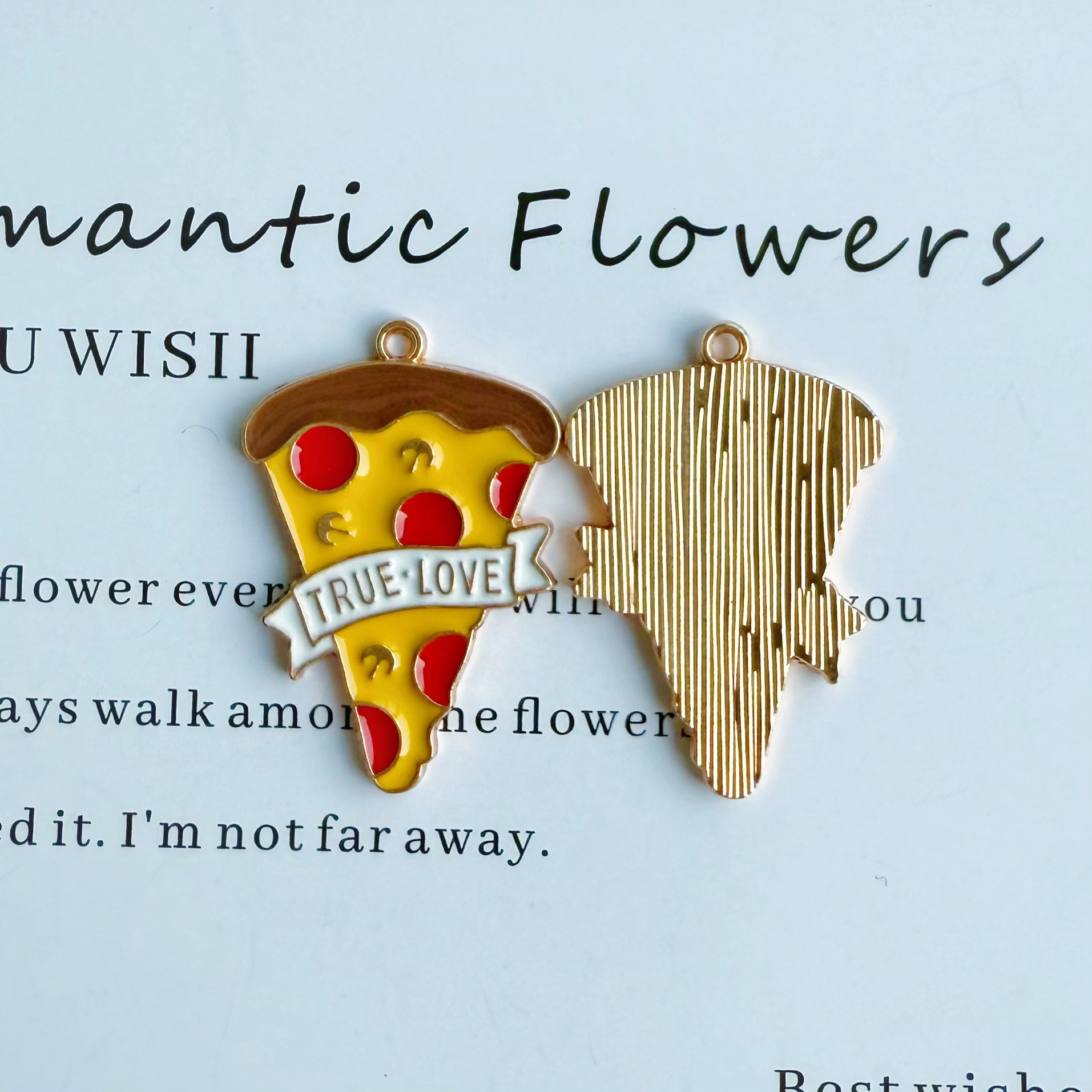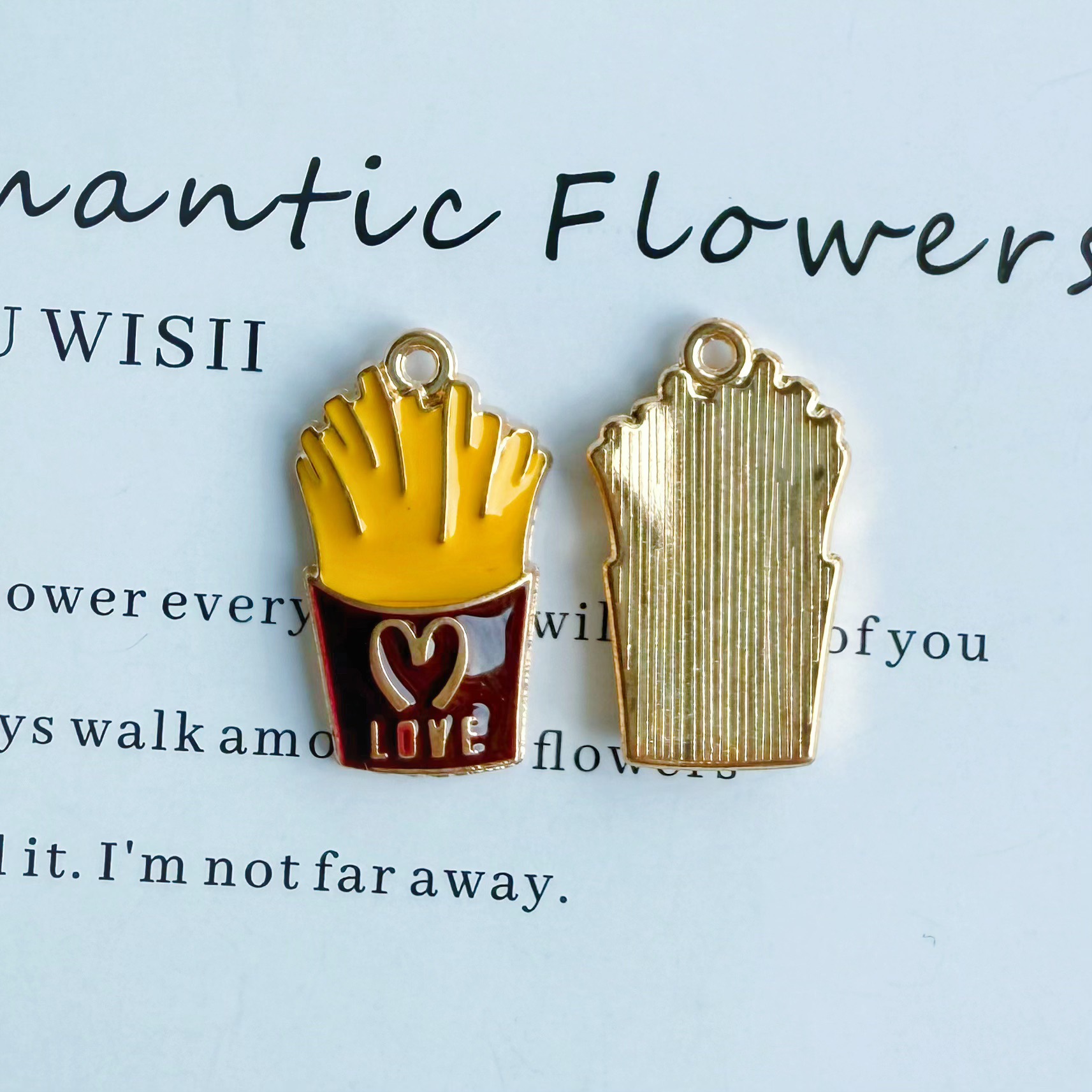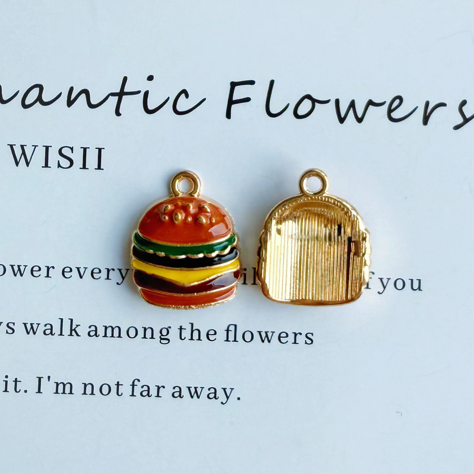 햄버거 프라이 피자 푸드 플레이 드롭 오일 합금 펜던트 수제 DIY 키 체인 매력 팔찌 쥬얼리 액세서리 배치