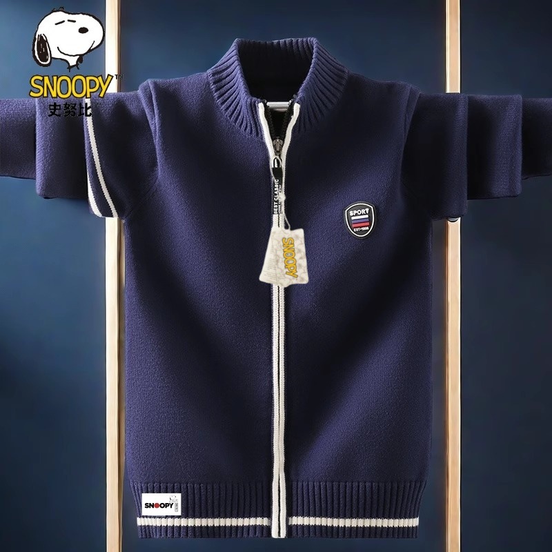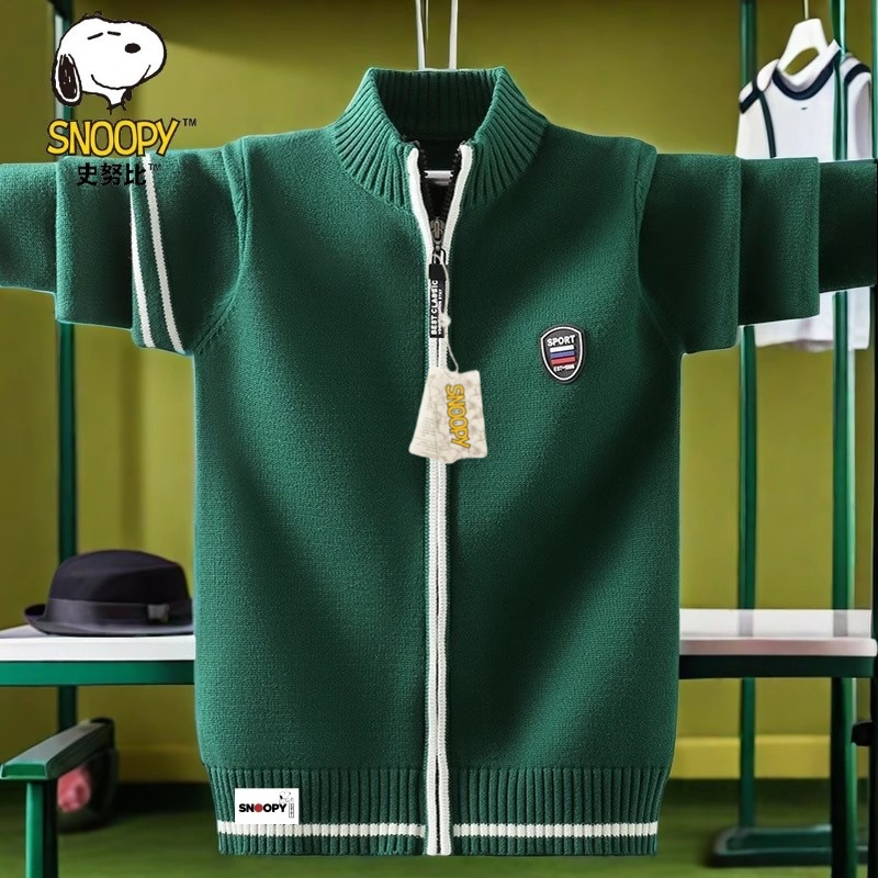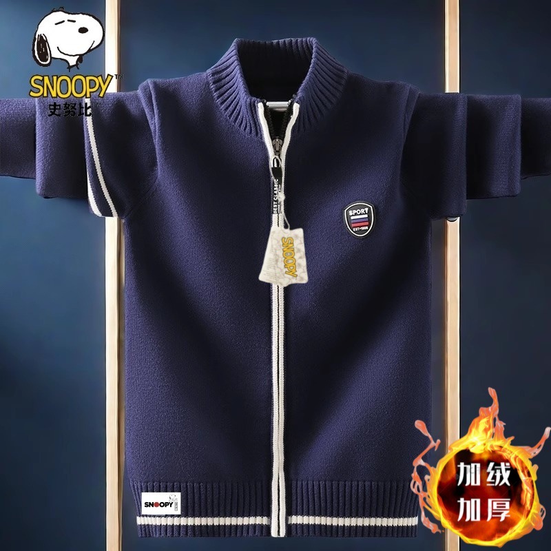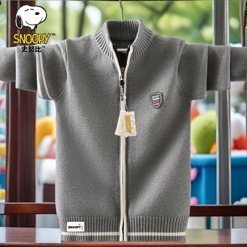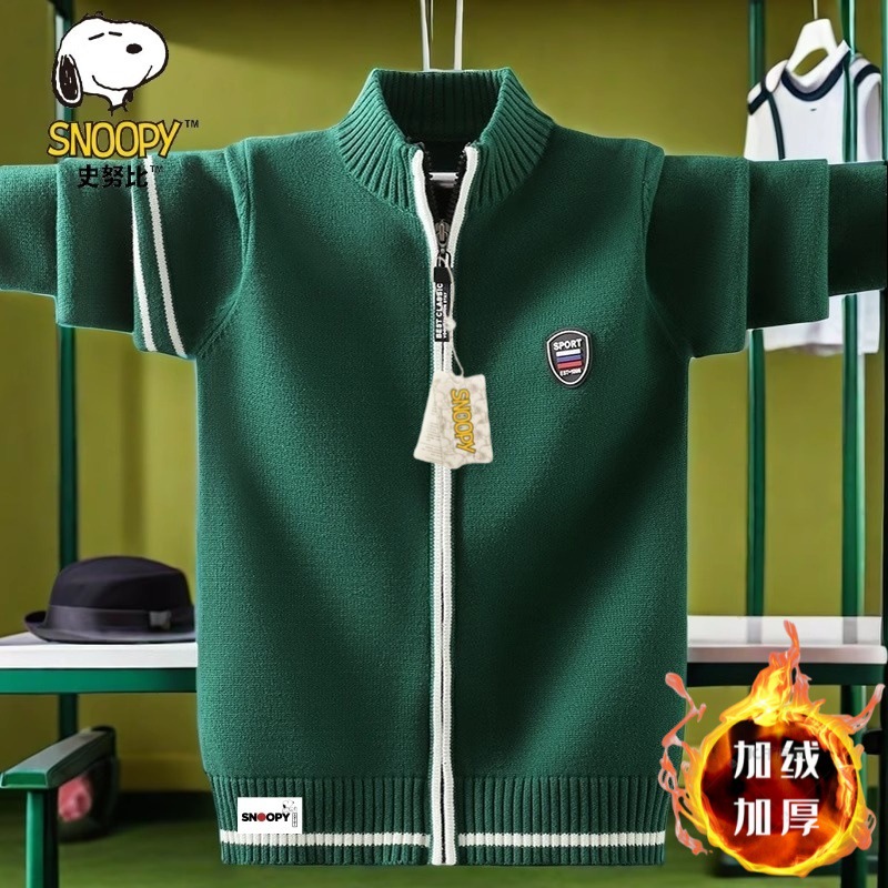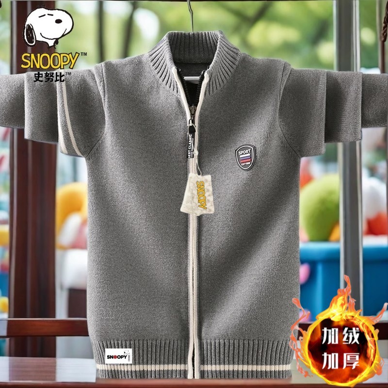 스누피 소년 순면 카디건 봄, 가을 중대형 소년 지퍼 셔츠 재킷 겨울 벨벳 아동용상의스토어 가기