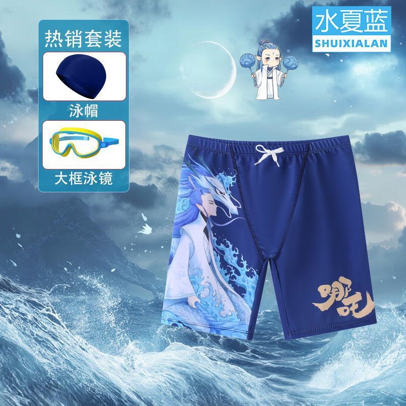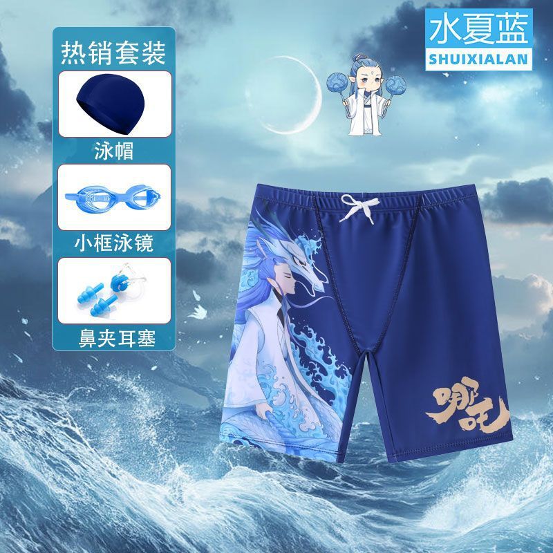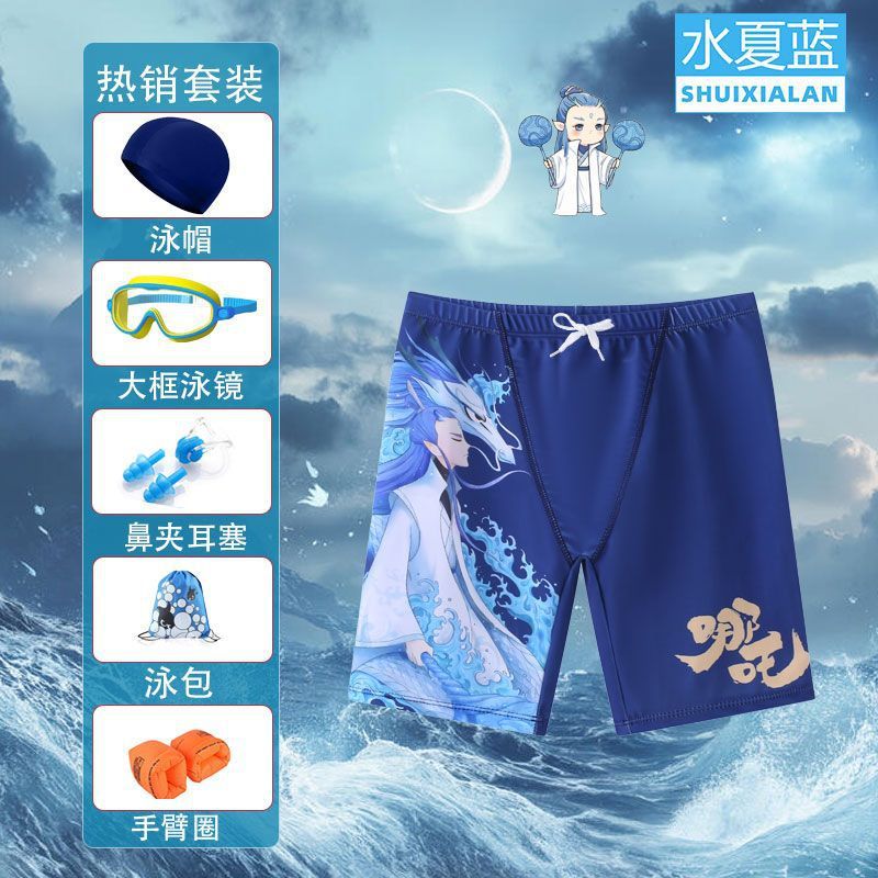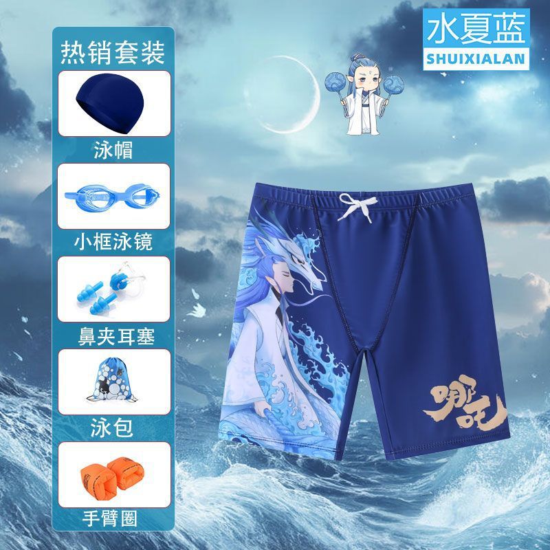 새로운 Nezha 어린이 수영 트렁크 소년 태양 보호 5 점 수영 트렁크 전문 수영 장비 세트 소년 수영 트렁크스토어 가기