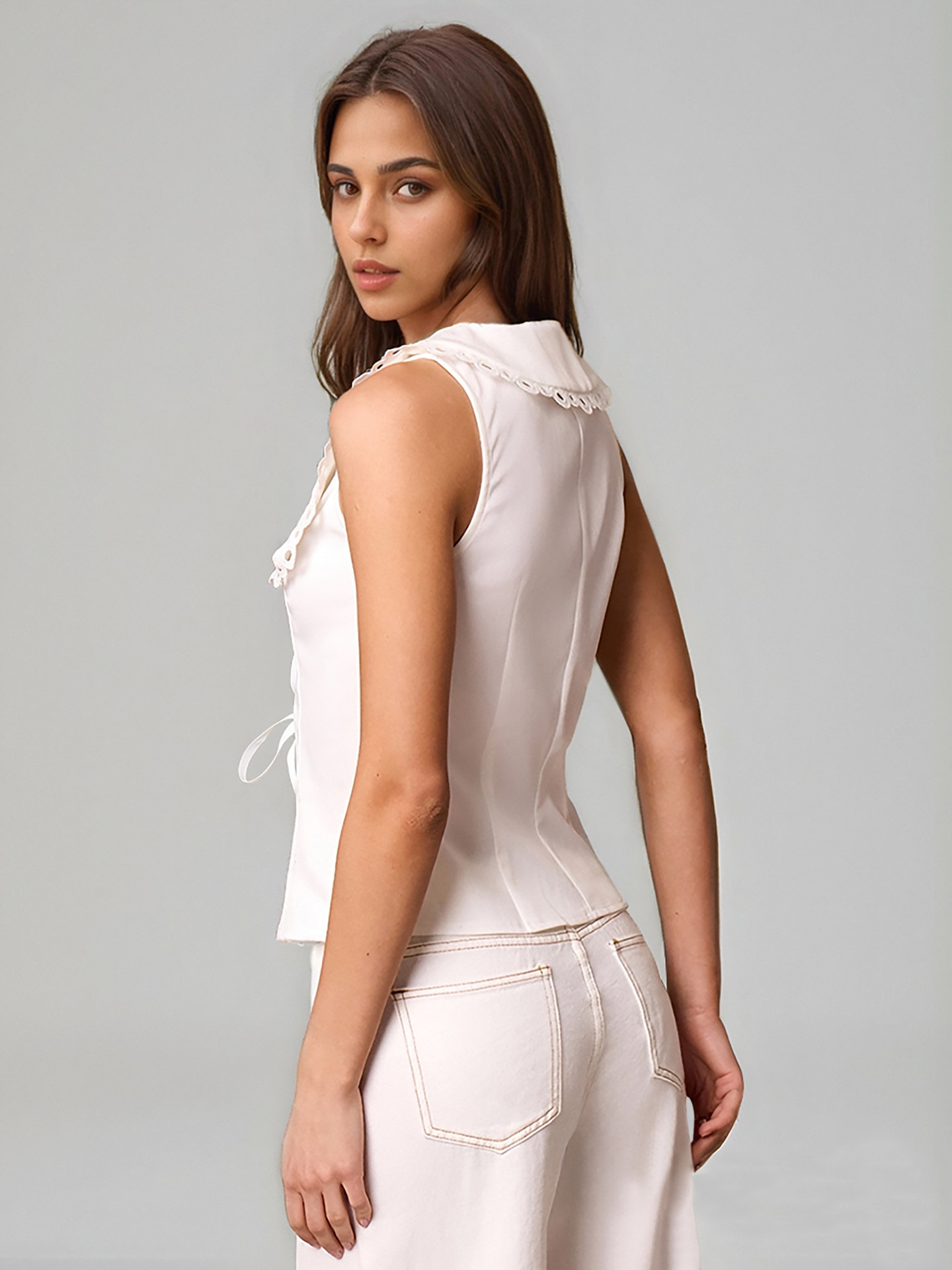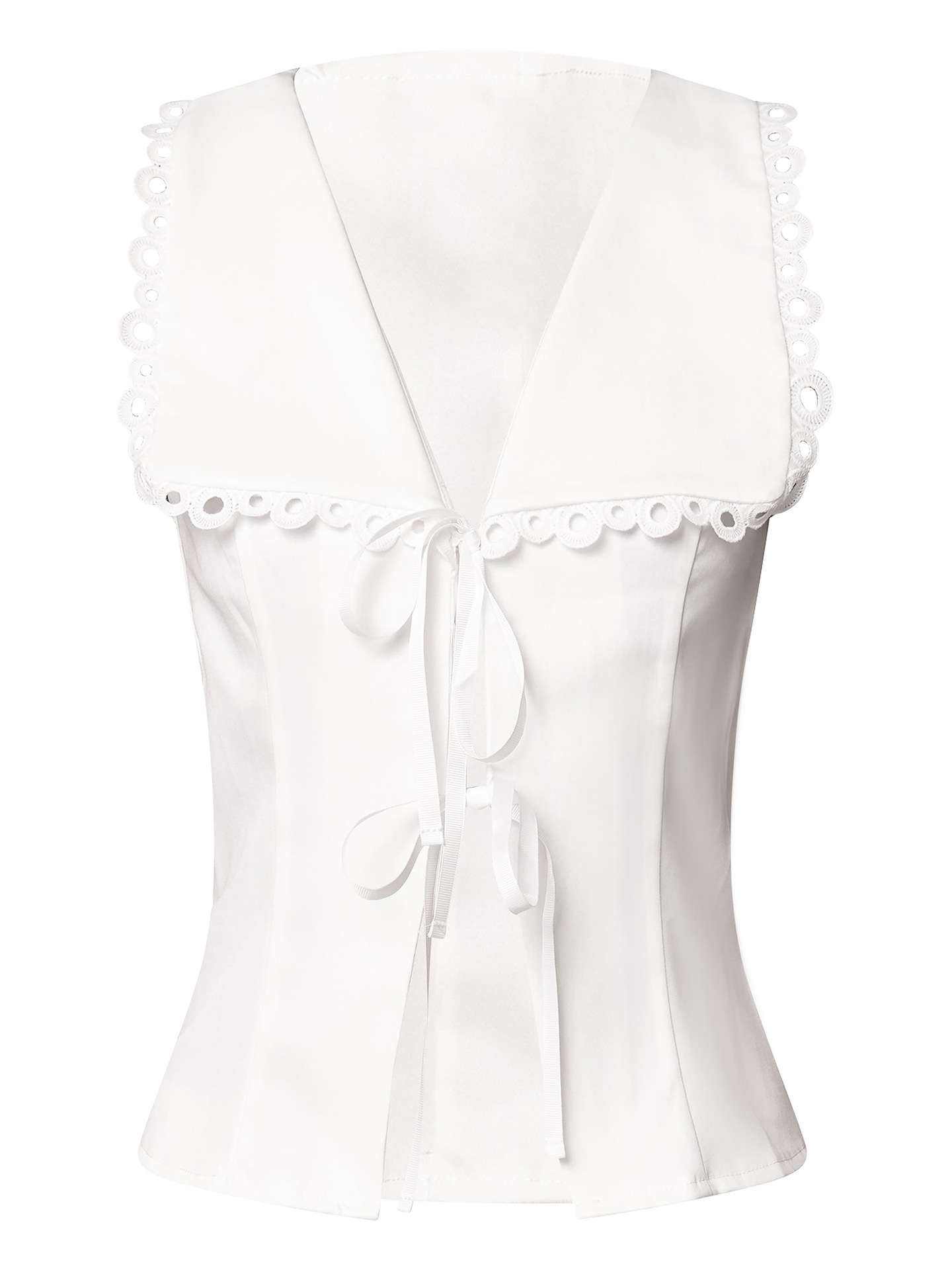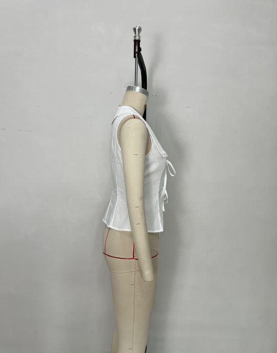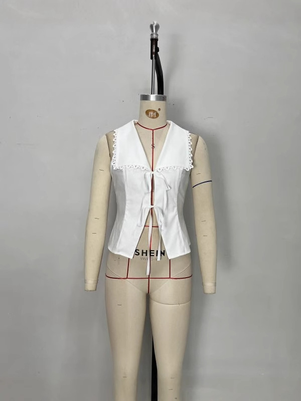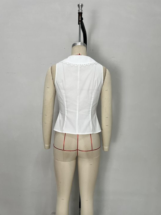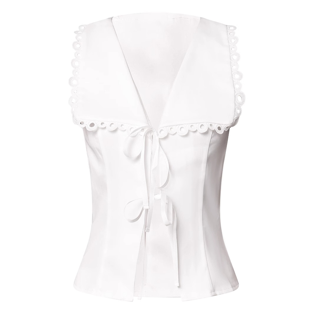 유럽과 미국의 여성 의류 크로스 보더 화이트 레이스 트림 레이스 업 셔츠 지적 조끼 우아한 여성 슬림 민소매 탑스토어 가기