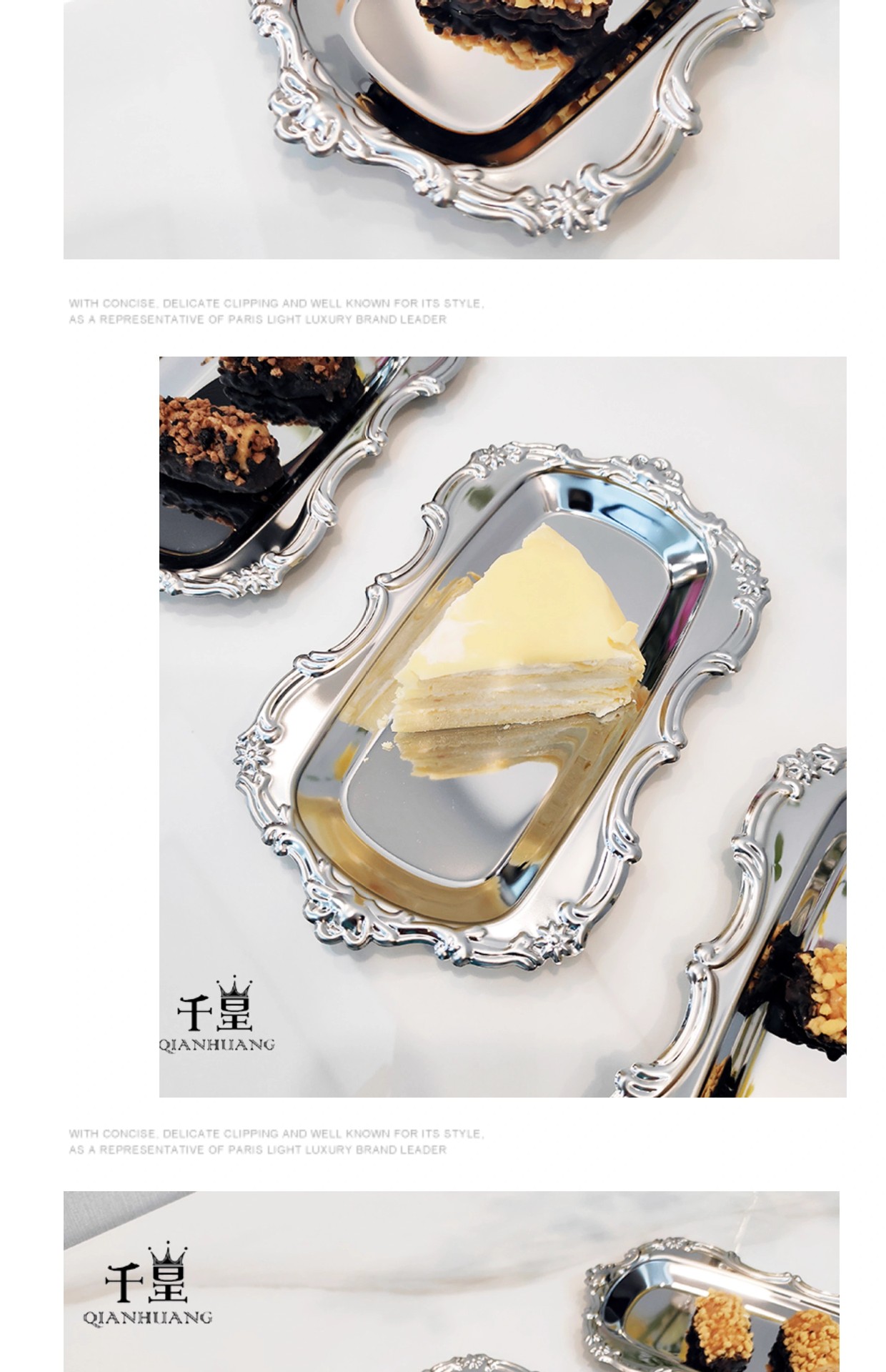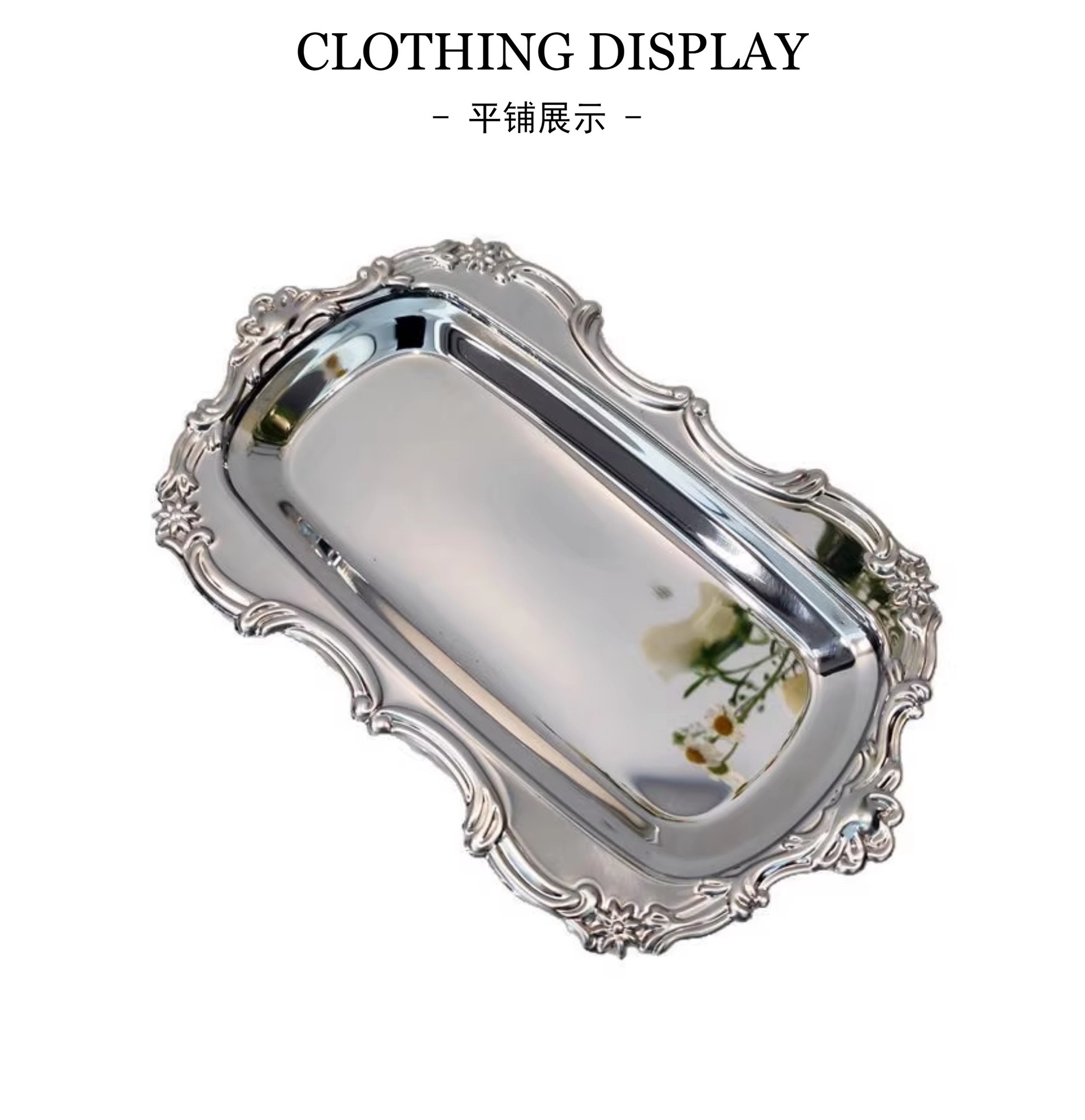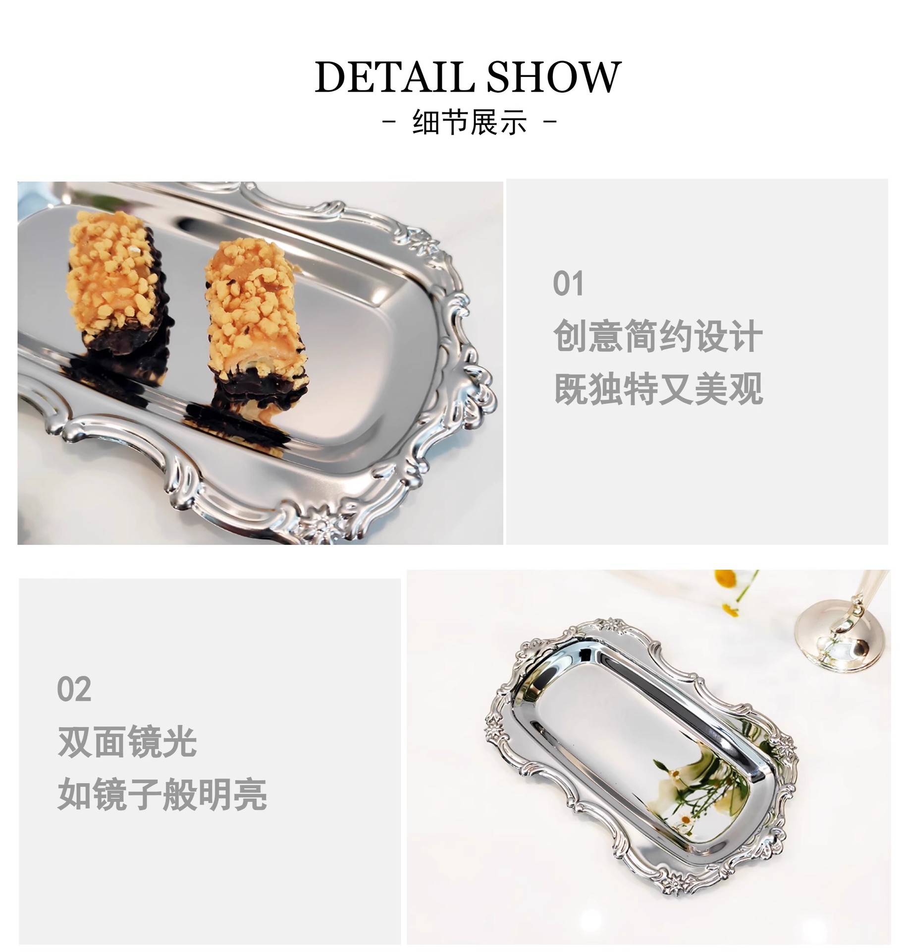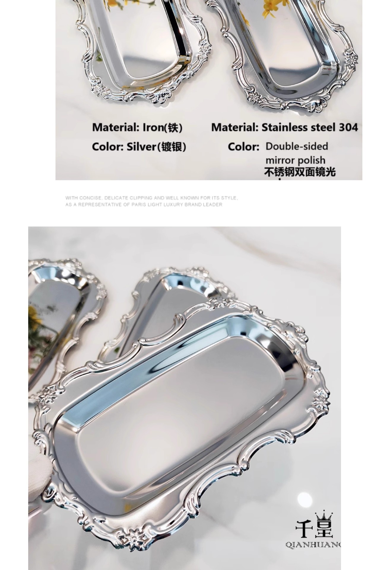 유럽 스타일의 가벼운 럭셔리 Ins 스테인레스 스틸 미러 애프터눈 티 케이크 접시 사진 소품 보석 트레이 타월 접시
