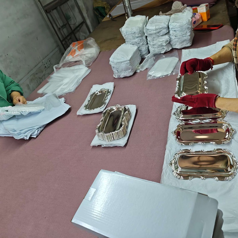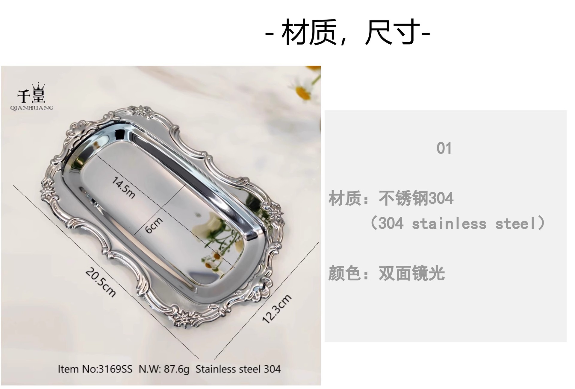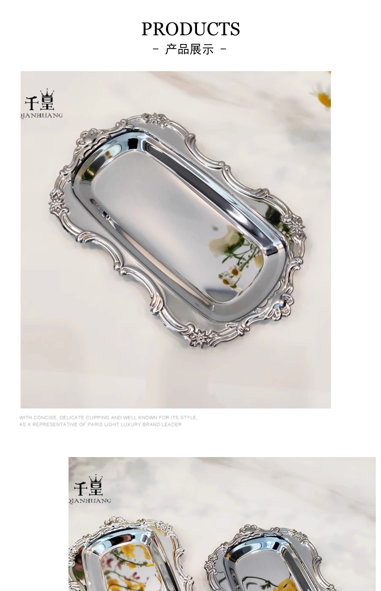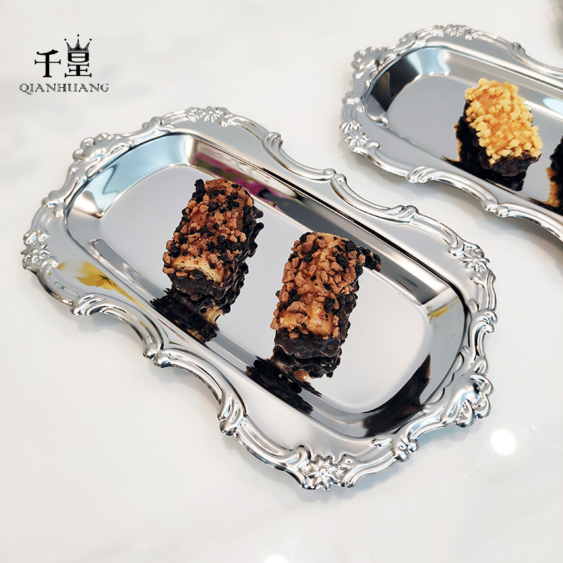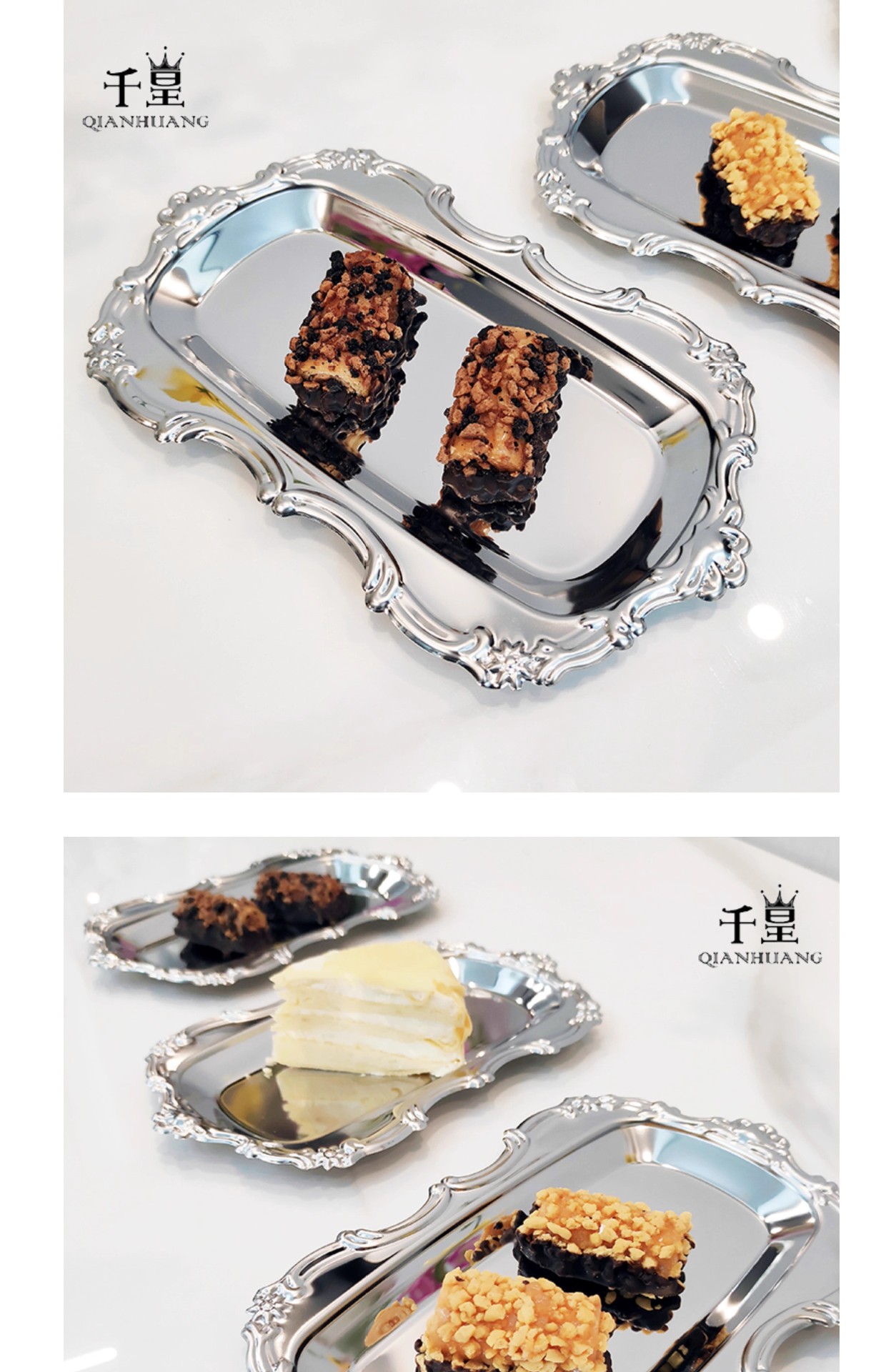 유럽 스타일의 가벼운 럭셔리 Ins 스테인레스 스틸 미러 애프터눈 티 케이크 접시 사진 소품 보석 트레이 타월 접시