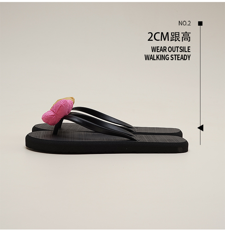 꽃무늬 플립플롭, 투톤 비치 슈즈, 소녀 감성, 미끄럼 방지, 장식, 신상, 두꺼운 밑창, 2025, 달콤한 여성 여름 스타일
